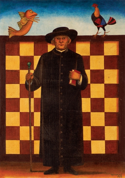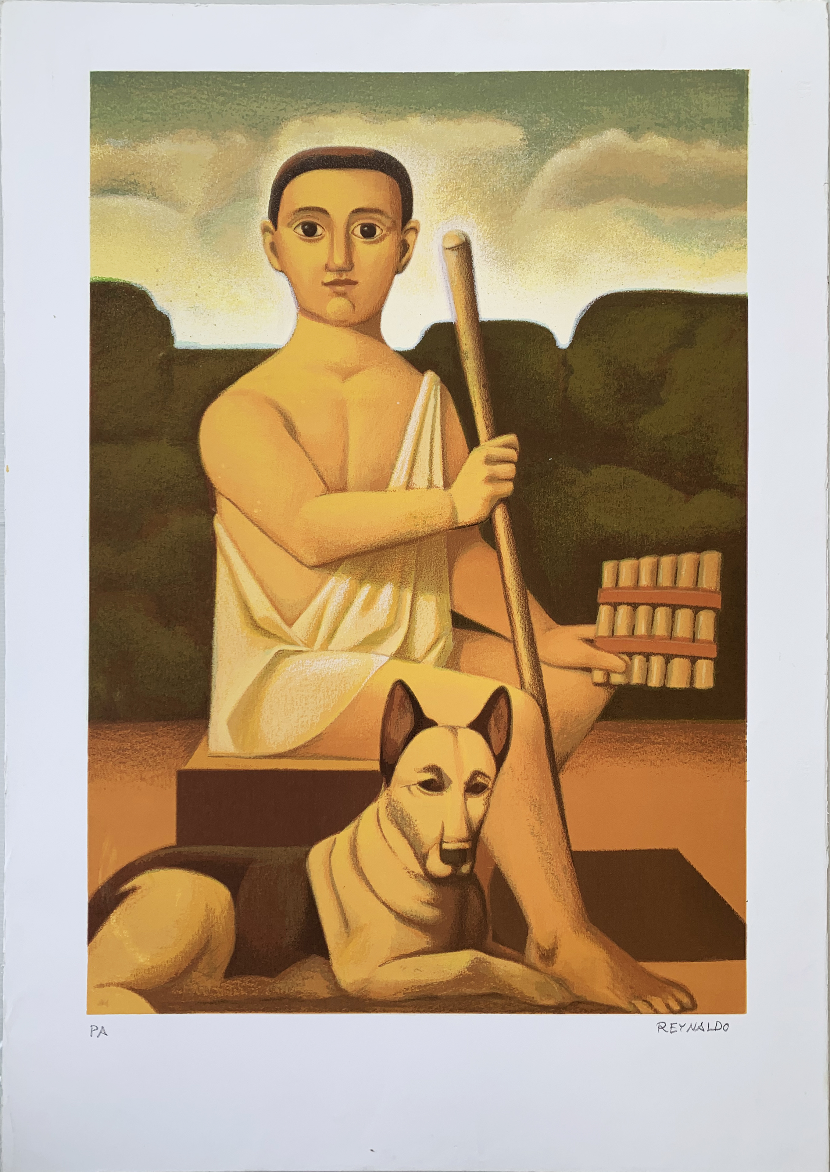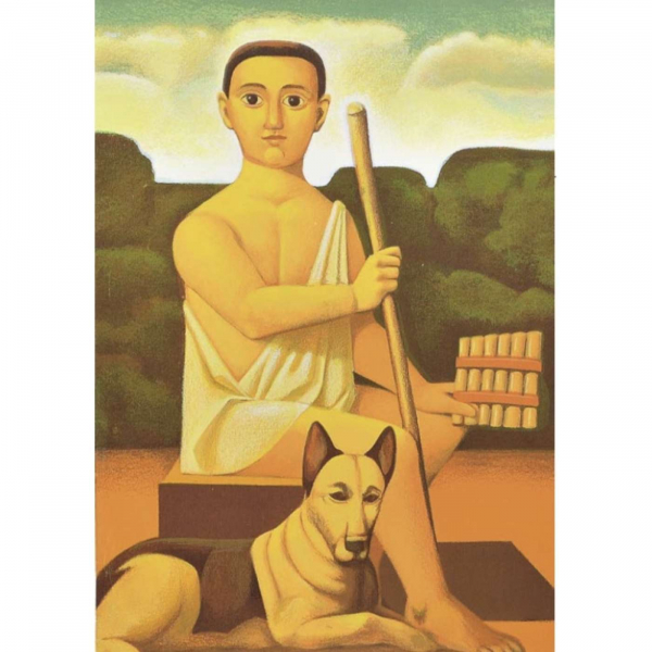 REYNALDO FONSECA (Recife, PE 1925-2019) MULHER TOCANDO FLAUTA 1986 MEDIDAS: 69 X 87 CM S MOLDURA E 97 X 80 CM C MOLDURA