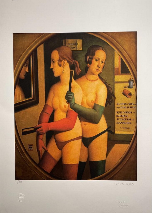 Reynaldo de Aquino Fonseca freqüenta como ouvinte a Escola de Belas Artes de Pernambuco, no Recife, em 1936, onde é aluno de Lula Cardoso Ayres (1910 - 1987), e faz curso de magistério em desenho. Em 1944, reside no Rio de Janeiro, e estuda com Candido Portinari (1903 - 1962) por seis meses. É um dos fundadores da Sociedade de Arte Moderna do Recife - SAMR, associação que propõe a ruptura com o sistema acadêmico de ensino. Realiza viagem de estudos à Europa, em 1948. Estuda gravura em metal com Henrique Oswald (1918 - 1965) no Liceu de Artes e Ofícios do Rio de Janeiro, entre 1949 e 1951. Além da gravura, utiliza a aquarela e, predominantemente, a técnica de óleo sobre tela, apresentando uma produção figurativa. Em meados de 1952, torna-se professor catedrático de desenho artístico na Escola de Belas Artes da Universidade Federal do Pernambuco - UFPE. Freqüenta o Ateliê Coletivo, fundado por Abelardo da Hora (1924), e realiza cursos de desenho. Realiza mural para o Banco do Brasil, no Recife, em 1964. Volta a residir no Rio de Janeiro em 1969, e retorna ao Recife no início da década de 1980. Ilustra, entre outros, o livro Pintura e Poesia Brasileiras, com poemas de João Cabral de Melo Neto (1920 - 1999), publicado em 1980. Entre 1993 e 1994 o Centro Cultural Banco do Brasil - CCBB promove mostra retrospectiva de sua produção no Rio de Janeiro e em São Paulo.