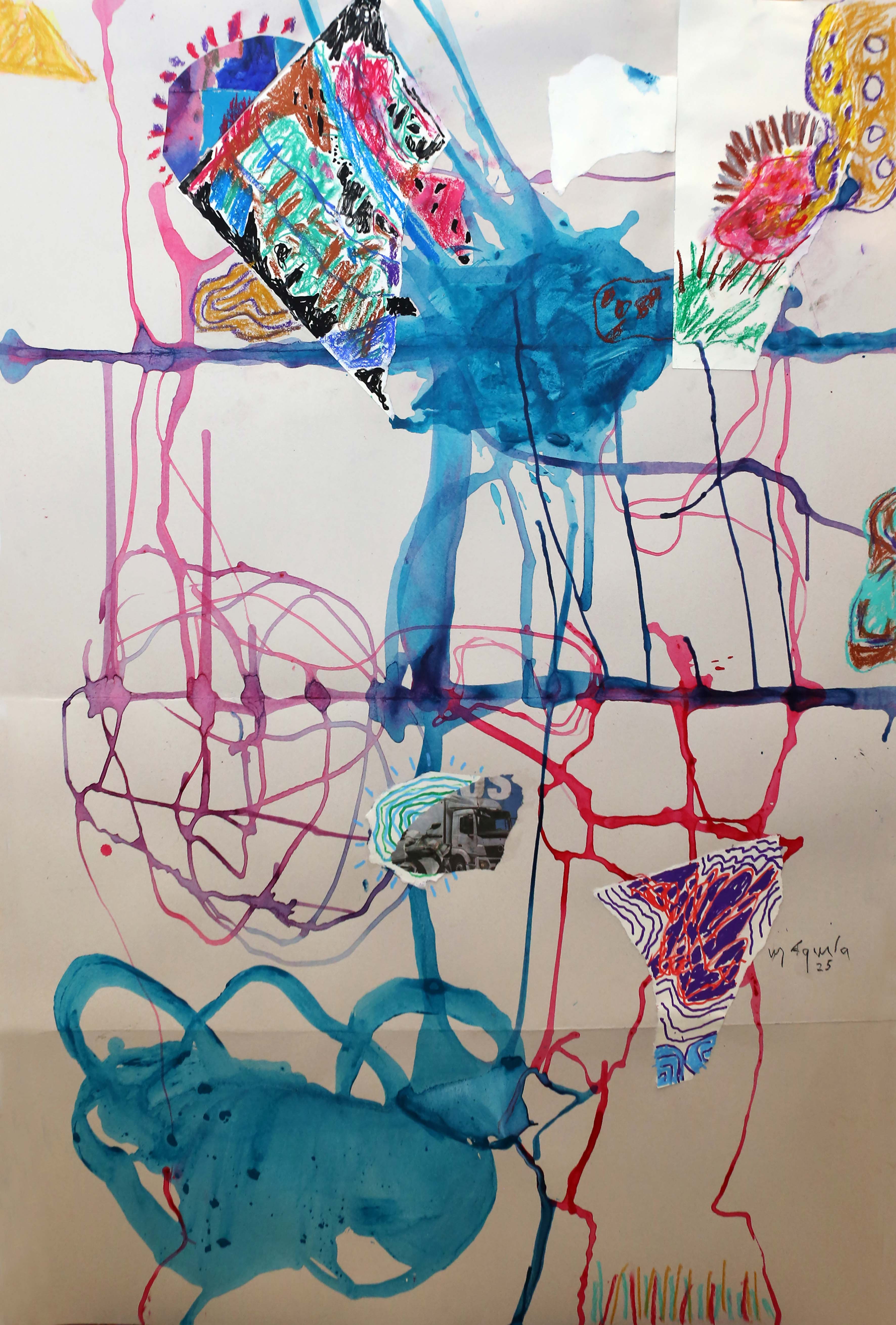 Convertendo memória e território em linguagem visual, o artista Luiz Aquila ressignifica a experiência vivida na viagem de 15 dias que fez ao México, em outubro do ano passado, na série inédita “Impregnação e sensação”. Reinterpretados como construções sensíveis entre memória, formas e cores, Aquila produziu sobre cartão, usando pastel, tinta guache e bastão de óleo, os seis novos trabalhos que integrarão a coletiva " Constelações - 40 Anos do Paço Imperial", celebrando os 40 anos do Paço Imperial como centro cultural.