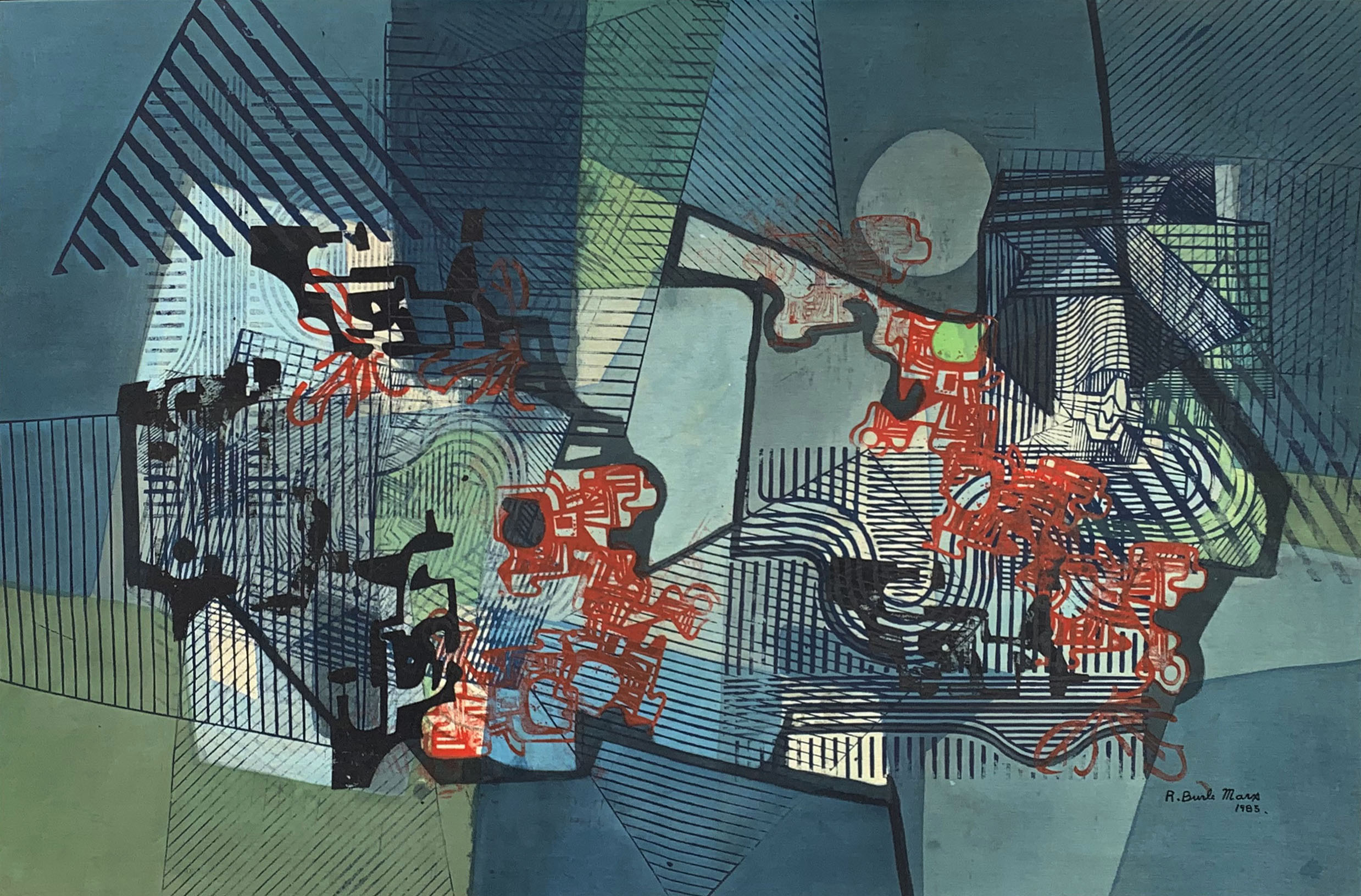 Roberto Burle Marx - Permuta II - Litografia assinada e datada 1984 - Edição PA 3/10 - Medidas 58 x 87 - Medidas da impressão 40 x 67 cm