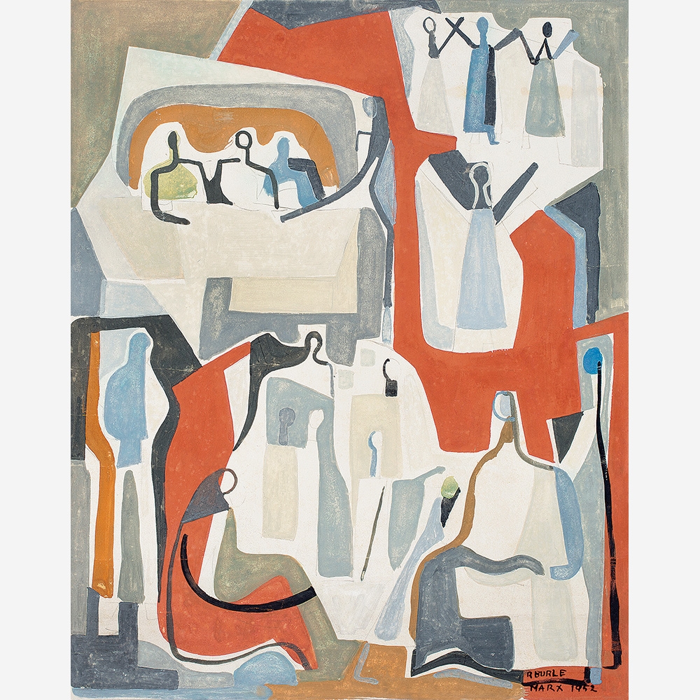 Paisagista, arquiteto, desenhista, pintor, gravador, litógrafo, escultor,tapeceiro, ceramista, designer de jóias, decorador. Durante a infância vive no Rio de Janeiro. Vai com a família para a Alemanha, em 1928. Em Berlim, estuda canto e se integra à vida cultural da cidade, freqüenta teatros, óperas, museus e galerias de arte. Entra em contato com as obras de Vincent van Gogh (1853-1890), Pablo Picasso (1881-1973) e Paul Klee (1879-1940). Em 1929, freqüenta o ateliê de pintura de Degner Klemn. Nos jardins e museus botânicos de Dahlen, em Berlim, entusiasma-se ao encontrar exemplares da flora brasileira. De volta ao Brasil, faz curso de pintura e arquitetura na Escola Nacional de Belas Artes (Enba), Rio de Janeiro, entre 1930 e 1934, onde é aluno de Leo Putz (1869-1940), Augusto Bracet (1881-1960) e Celso Antônio (1896-1984). Em 1932, realiza seu primeiro projeto de jardim para a residência da família Schwartz, no Rio de Janeiro, a convite do arquitetoLucio Costa (1902-1998), que realiza o projeto de arquitetura com Gregori Warchavchik (1896-1972). Entre 1934 e 1937, ocupa o cargo de diretor de parques e jardins do Recife, Pernambuco, onde passa a residir. Nesse período, vai com freqüência ao Rio de Janeiro e tem aulas com Candido Portinari (1903-1962) e com o escritor Mário de Andrade (1893-1945), no Instituto de Arte da Universidade do Distrito Federal. Em 1937, retorna ao Rio de Janeiro e trabalha como assistente de Candido Portinari. O final da década de 1930 arca a integração de sua obra paisagística à arquitetura moderna, época em que o artista experimenta formas orgânicas e sinuosas na elaboração de seus projetos. Sua paixão por plantas remonta à juventude, quando se interessa por botânica e jardinagem, mas é em 1949 que Roberto Burle Marx organiza uma grande coleção, quando adquire um sítio de 800.000 m², em Campo Grande, Rio de Janeiro. Em companhia de botânicos, realiza inúmeras viagens por diversas regiões do país, para coletar e catalogar exemplares de plantas, reproduzindo em sua obra a diversidade fitogeográfica brasileira.