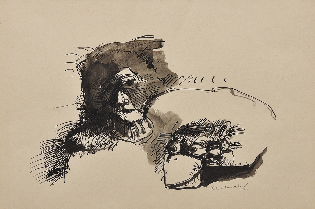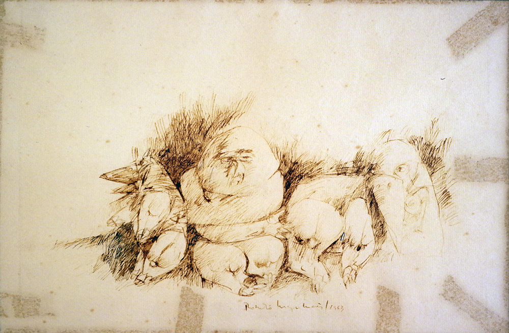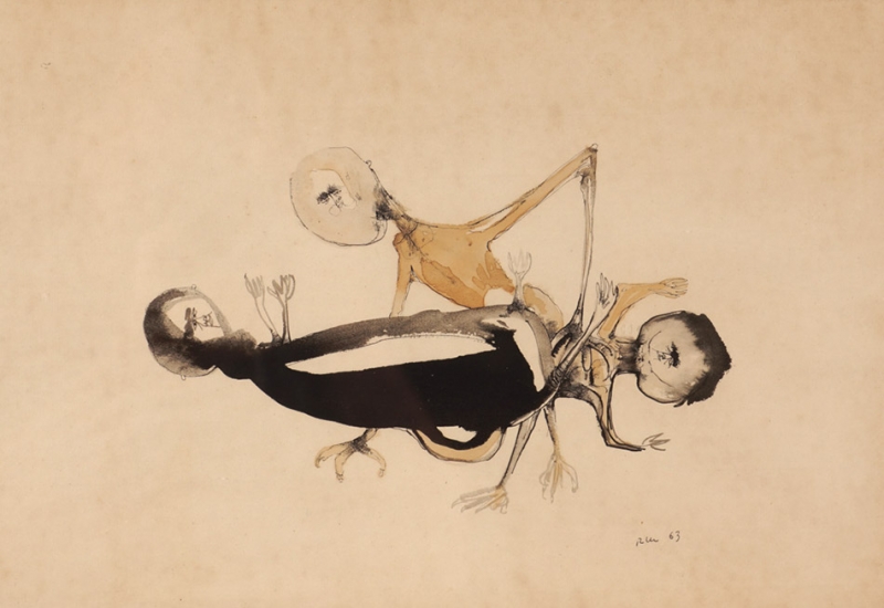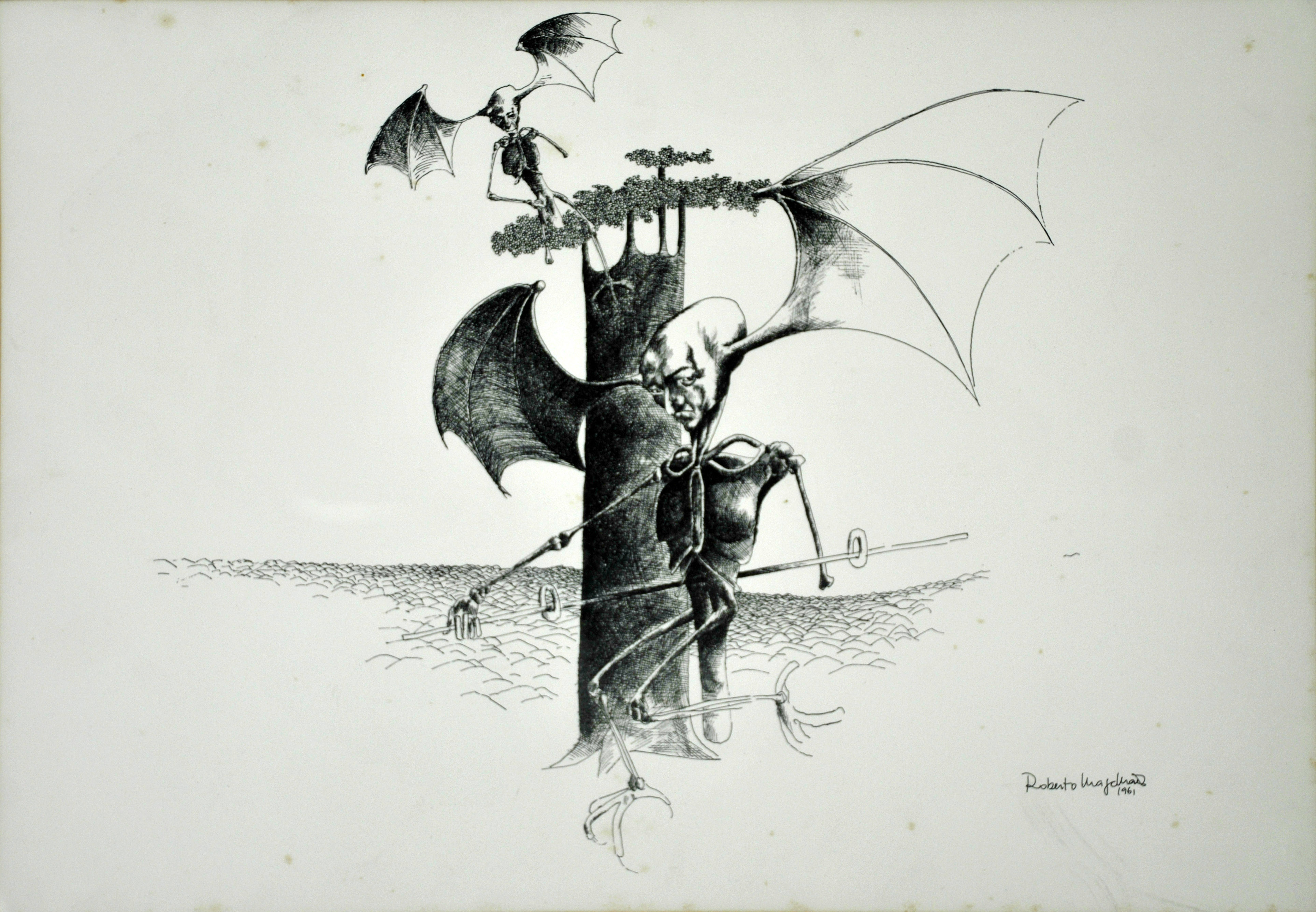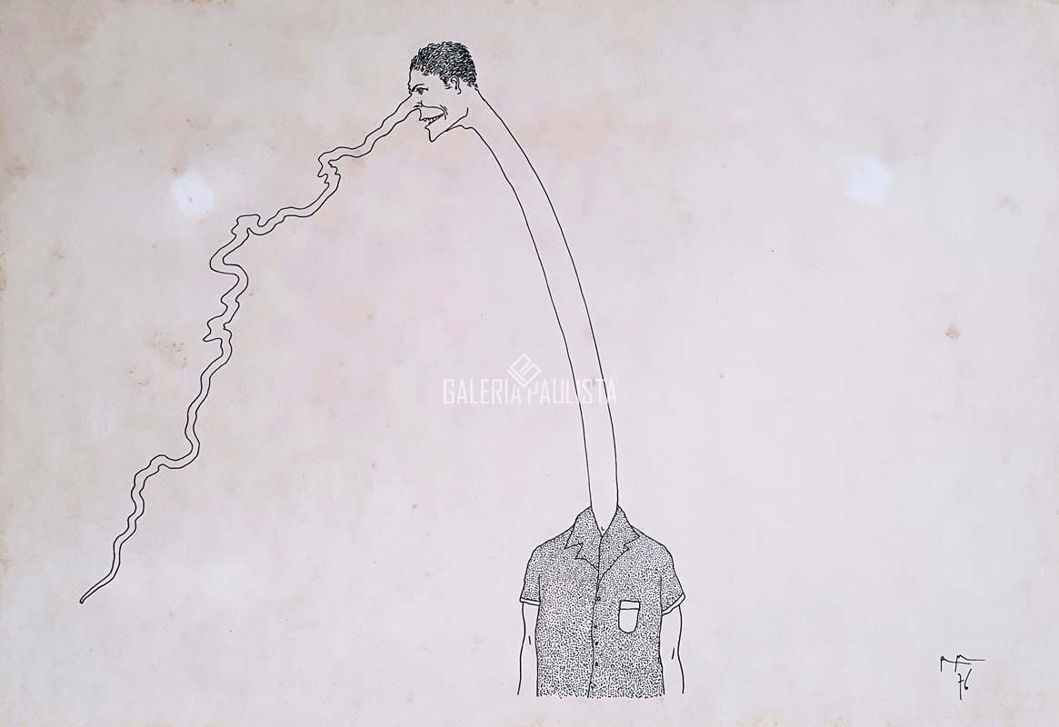 Roberto Magalhães - Flores. Nanquim e guache sobre papel, 35x25 cm, 2000, A.C.I.D. Com moldura