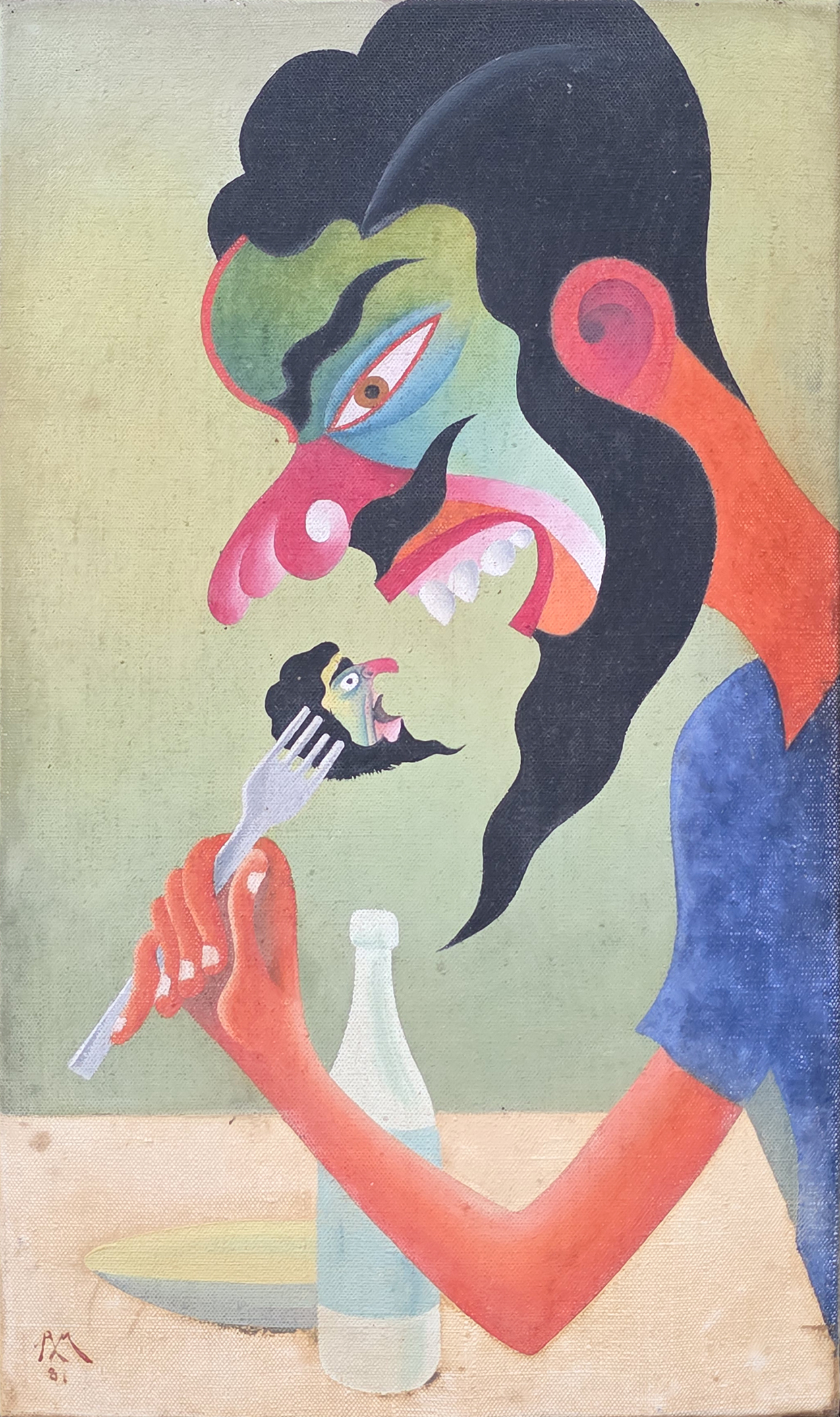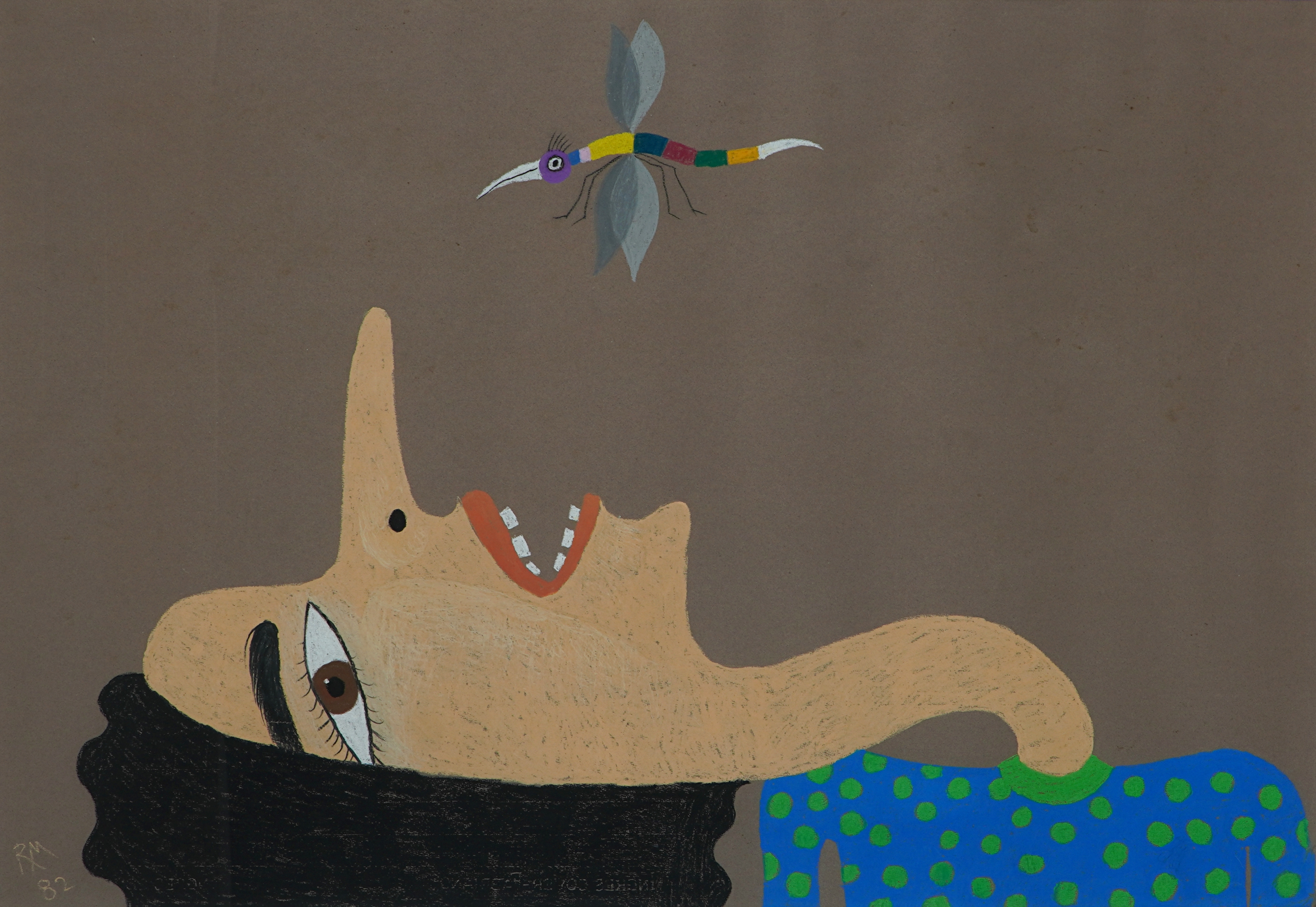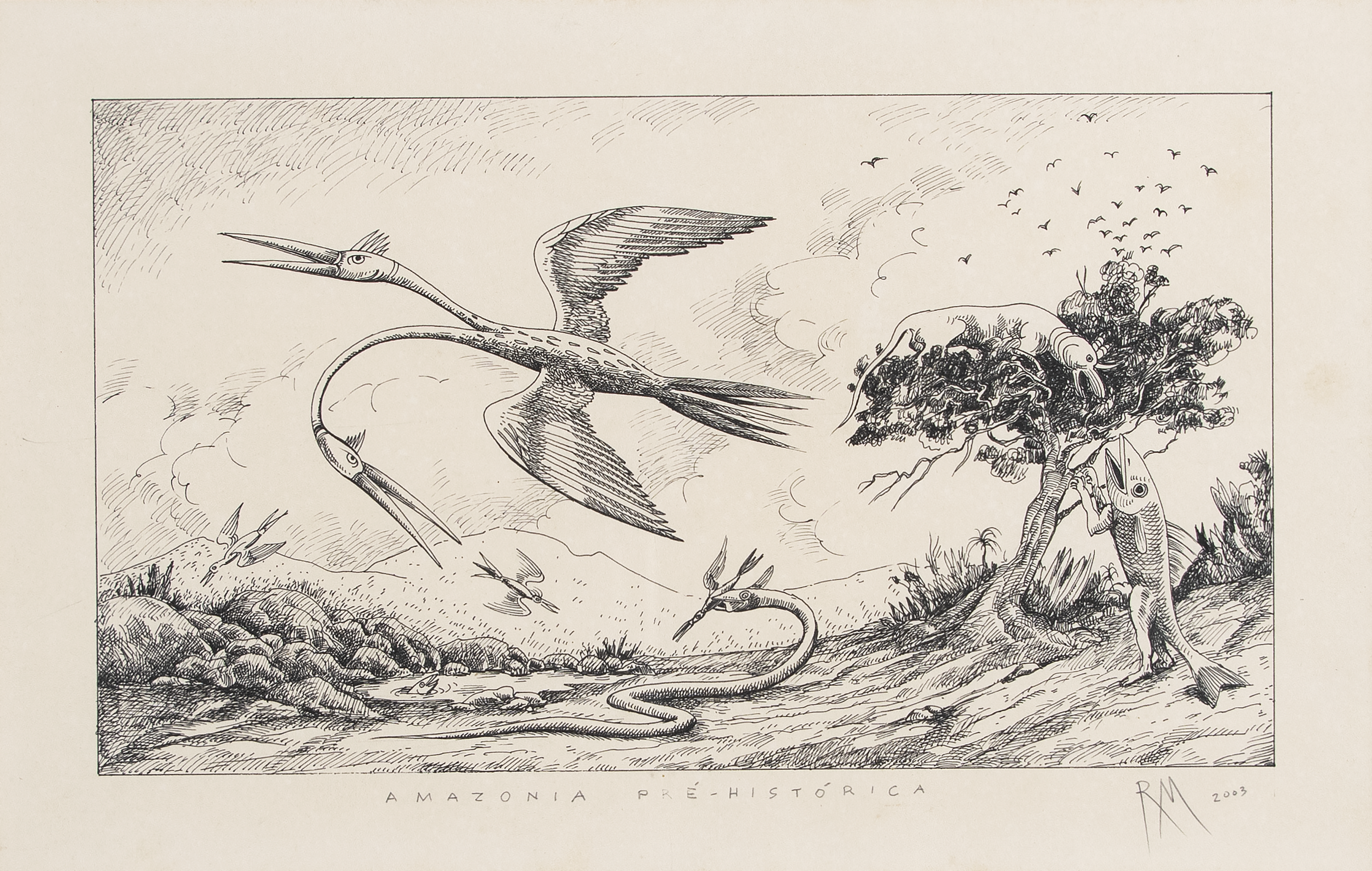 Roberto Magalhães - Relato do astronauta que desembarcou nu em Urano - 1989 - Óleo sobre tela - Assinado canto inferior direito - 63 x 79 cm.