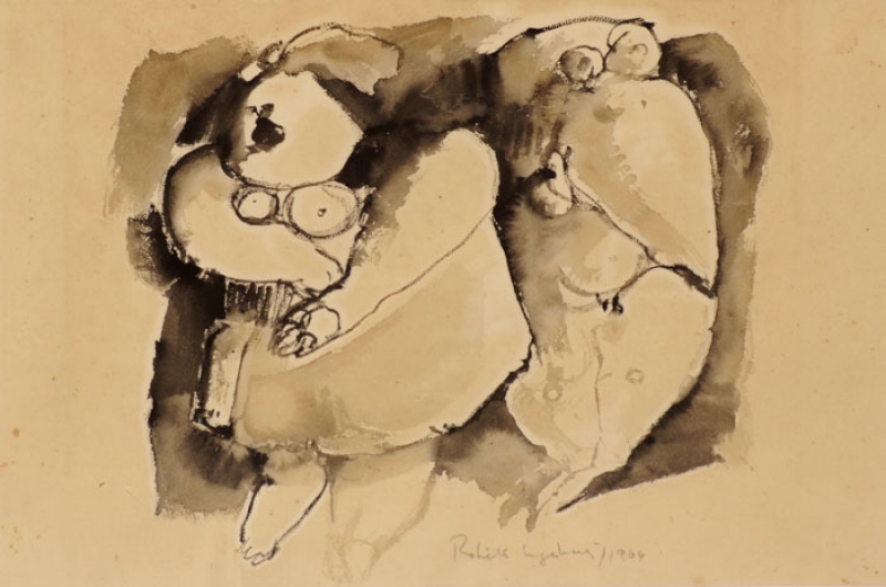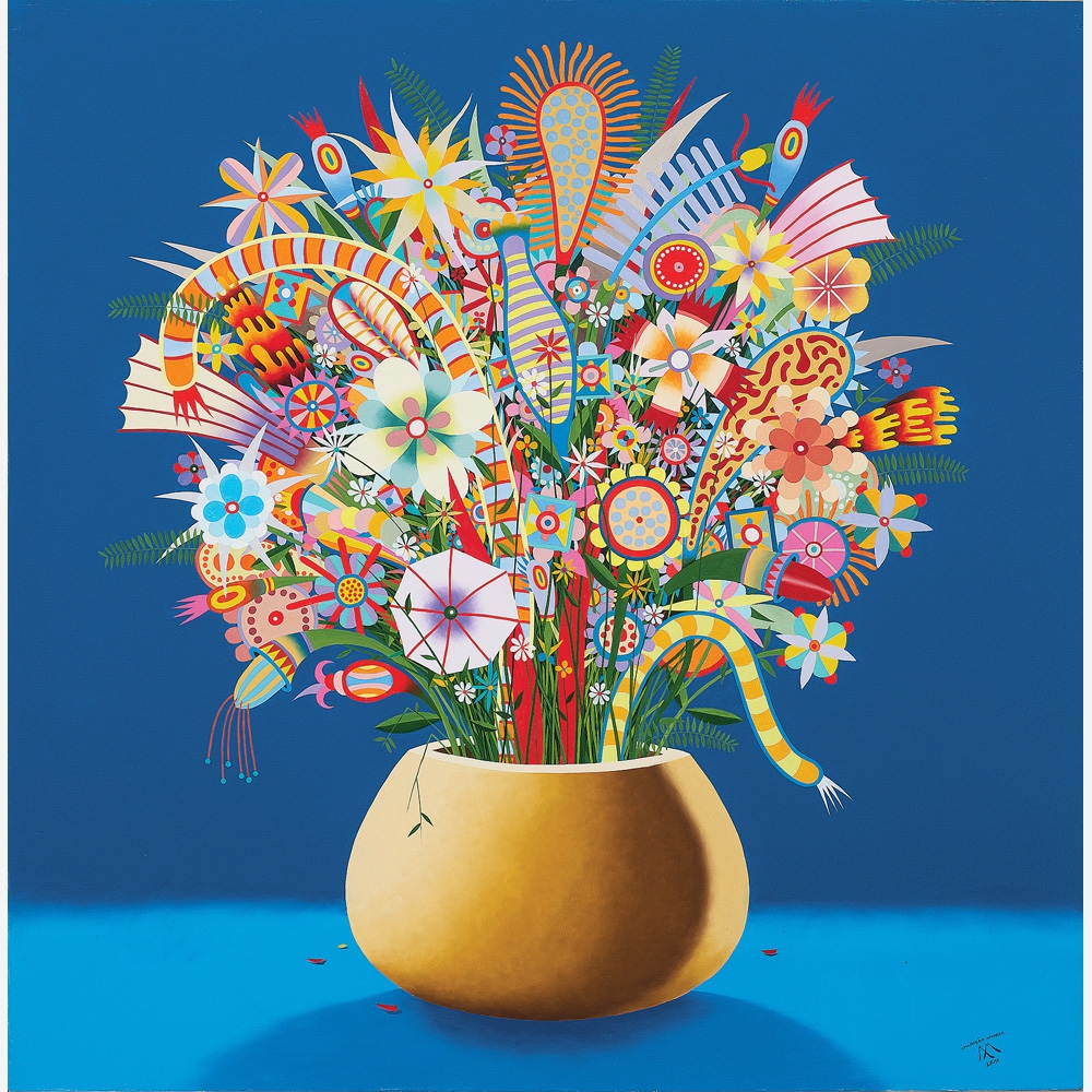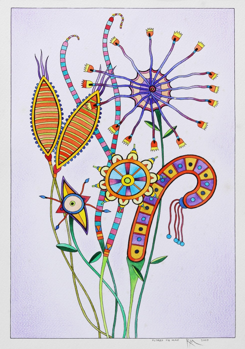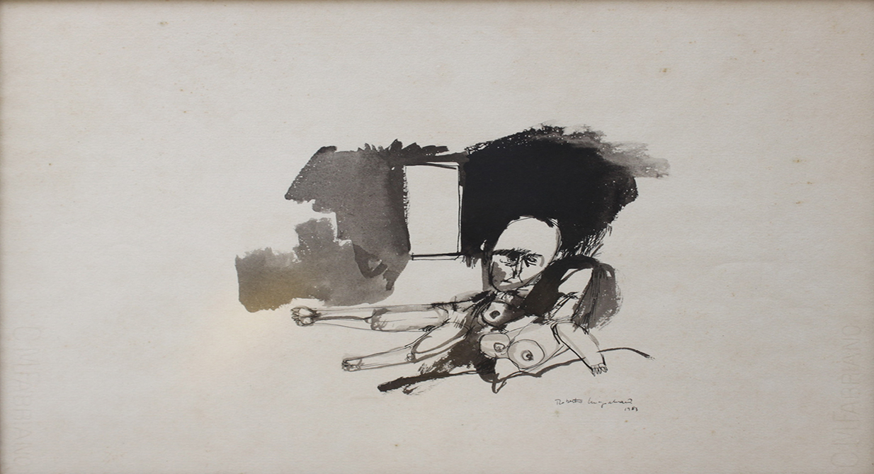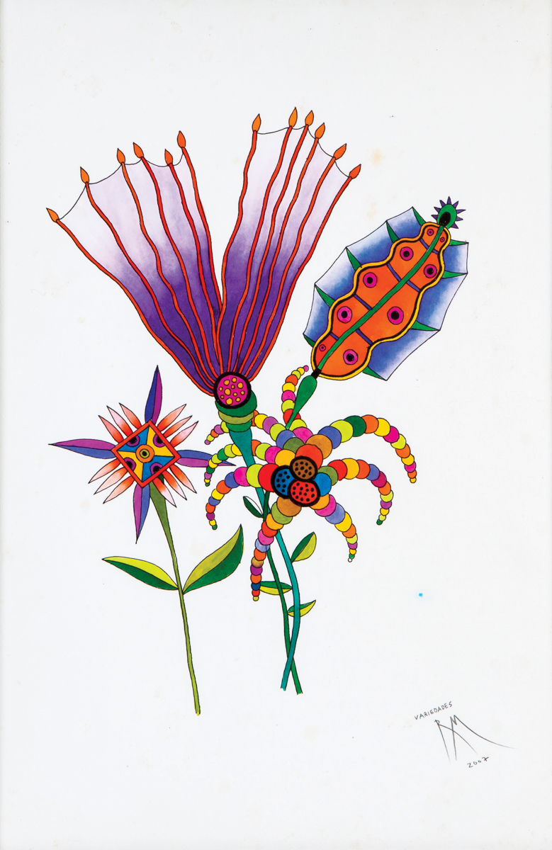 Roberto Magalhães - Flores. Nanquim e guache sobre papel, 35x25 cm, 2000, A.C.I.D. Com moldura