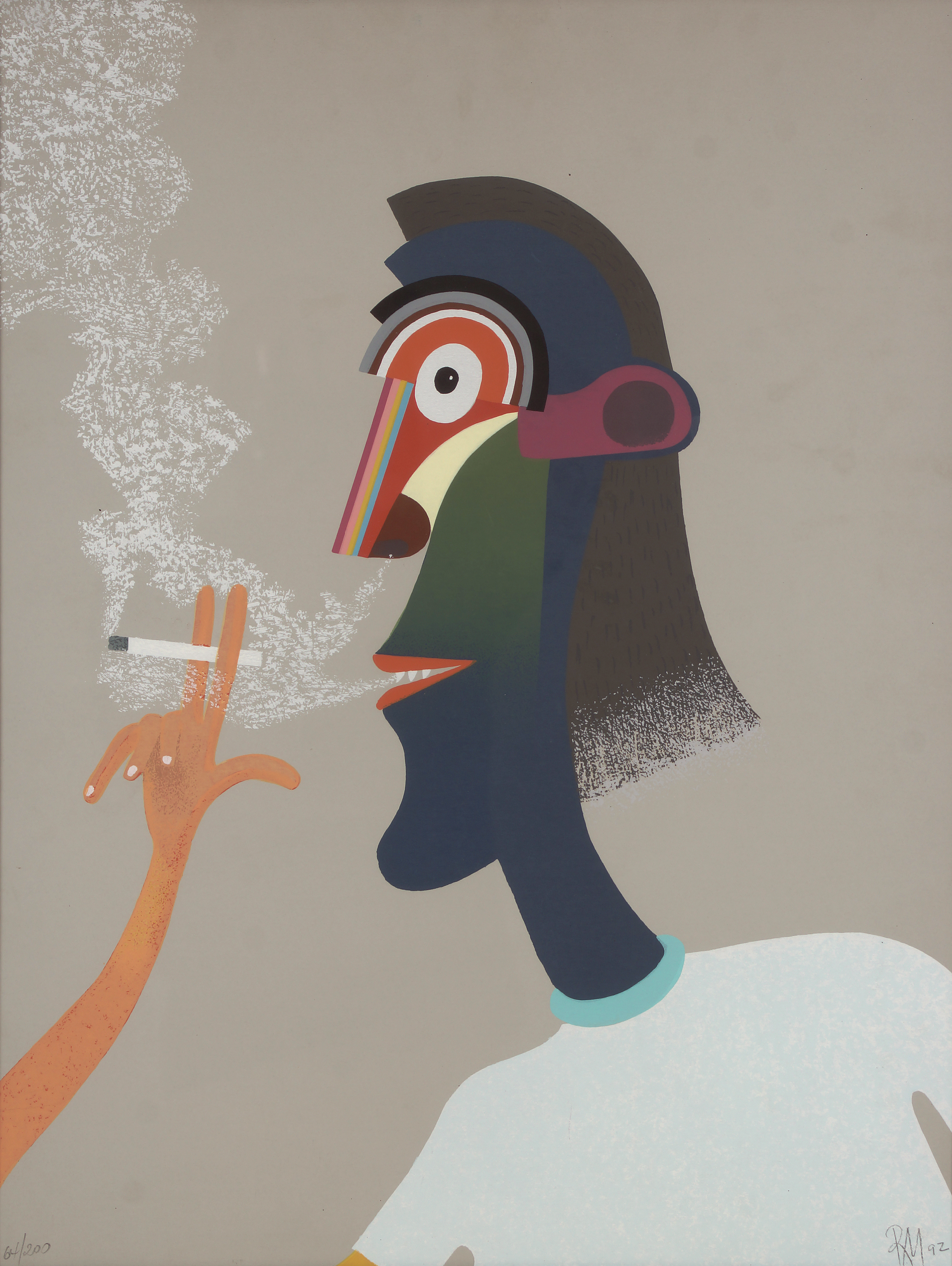 Roberto Magalhães Fumante serigrafia manual 70x50 ass 1992 100/200