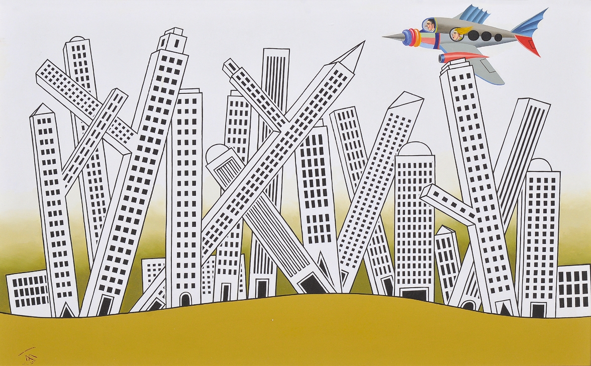 Roberto Magalhães - Relato do astronauta que desembarcou nu em Urano - 1989 - Óleo sobre tela - Assinado canto inferior direito - 63 x 79 cm.