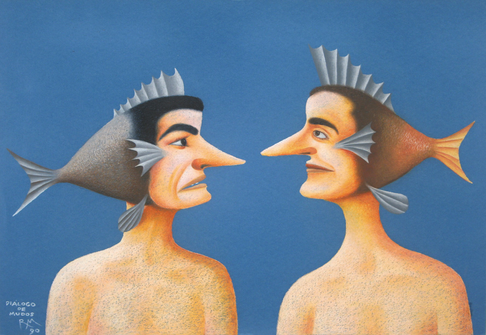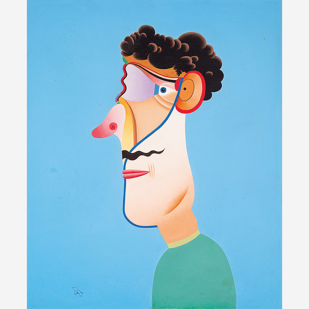 Roberto Magalhães - Relato do astronauta que desembarcou nu em Urano - 1989 - Óleo sobre tela - Assinado canto inferior direito - 63 x 79 cm.