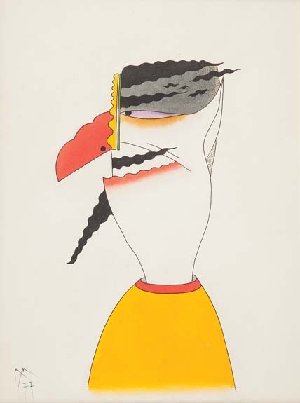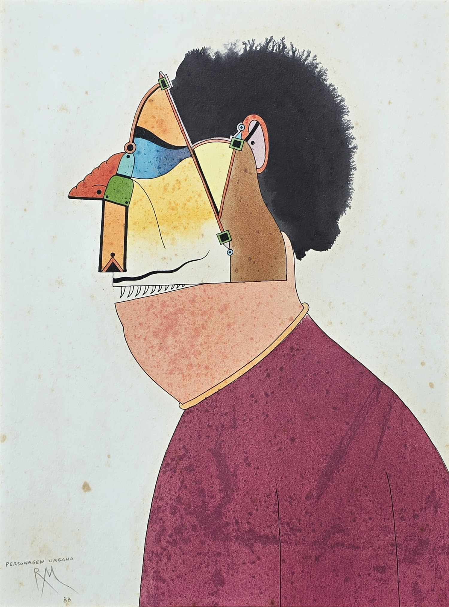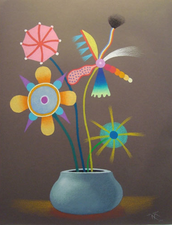 Roberto Magalhães - Flores. Nanquim e guache sobre papel, 35x25 cm, 2000, A.C.I.D. Com moldura