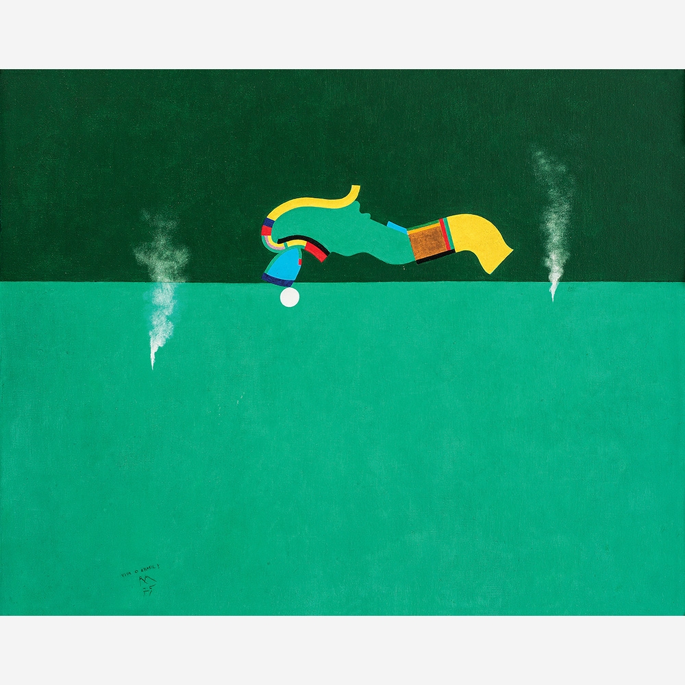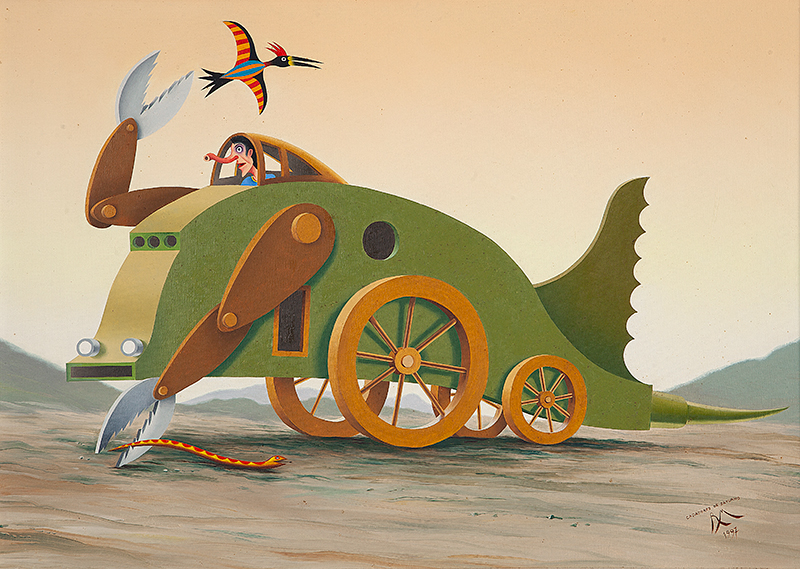 Roberto Magalhães - Relato do astronauta que desembarcou nu em Urano - 1989 - Óleo sobre tela - Assinado canto inferior direito - 63 x 79 cm.