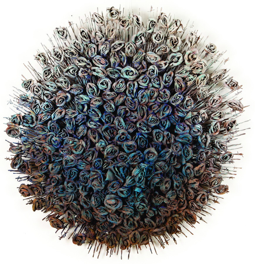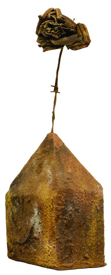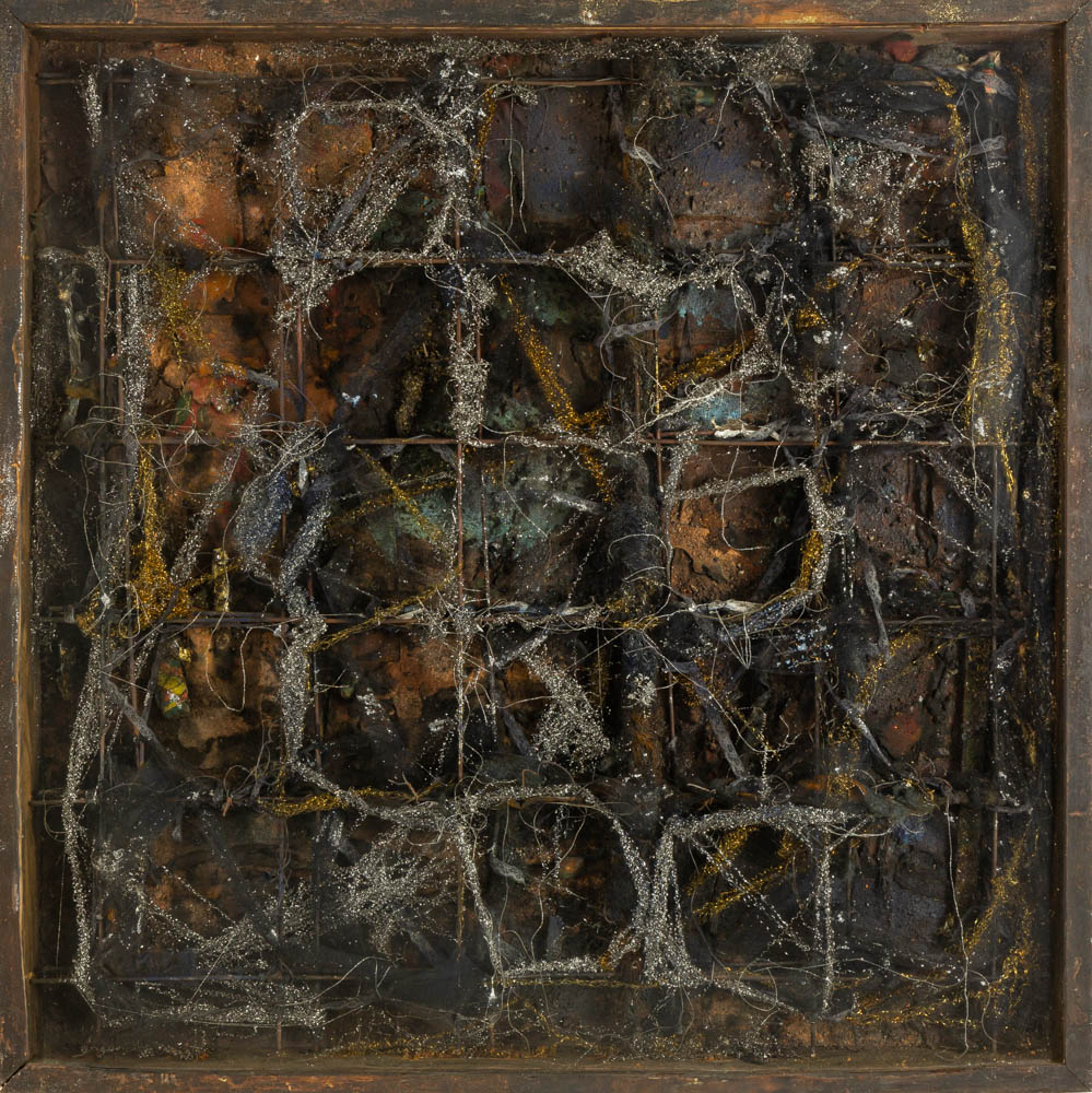 E o que se vê hoje em sua obra é uma reformulação, na inversão do espelho, do material que se (es)colhe para a discussão sobre arte. As obras que vem realizando, hoje, confirmam o desatino de sua radicalidade, o destino radial de suas invenções. Dentro da obra corre um discurso tenso, que ele introjetou a partir de uma discussão à luz de Barthes, e que revela uma preocupação maior com a vida do que com a obra de arte em si. A obsessiva coleta, agora, tem o foco nos detritos da indústria e dos resíduos da tecnologia de ponta, a serem justapostos, rearticulados, acoplados infinitamente. A esses objetos, dejetos abjetos do que restou de um momento iluminado de sofisticado uso, e que se deteriora muito mais rapidamente, ajuntam-se restos do consumo cotidiano, objetos perdidos que ganham novas dimensões quando pedem parte de sua identidade, ao serem literalmente cobertos com camadas de pigmentos de terra resinados. Chips, baterias, peças de computador, barbeadores, garrafas de plástico e uma infinidade de coisas descartáveis, pervertidas, rejeitadas ao final do uso, matérias tipicamente urbanas da chamada cultura vertical aderem-se a uma nova realidade proposta pela arte, antes domínio da natureza, do pensamento e da língua – a cultura horizontal. Querem a todo custo sobreviver ao assédio do tempo, saltando para o espaço próprio dos seres naturais.