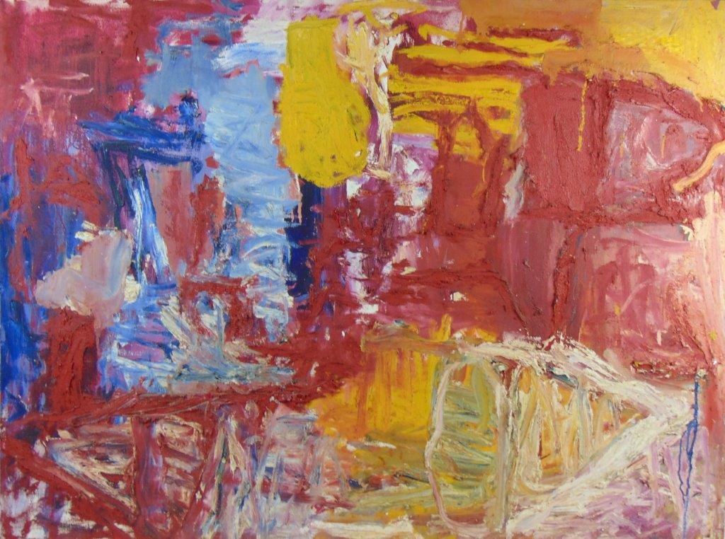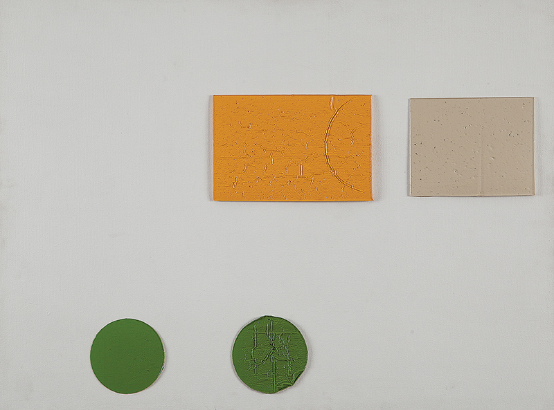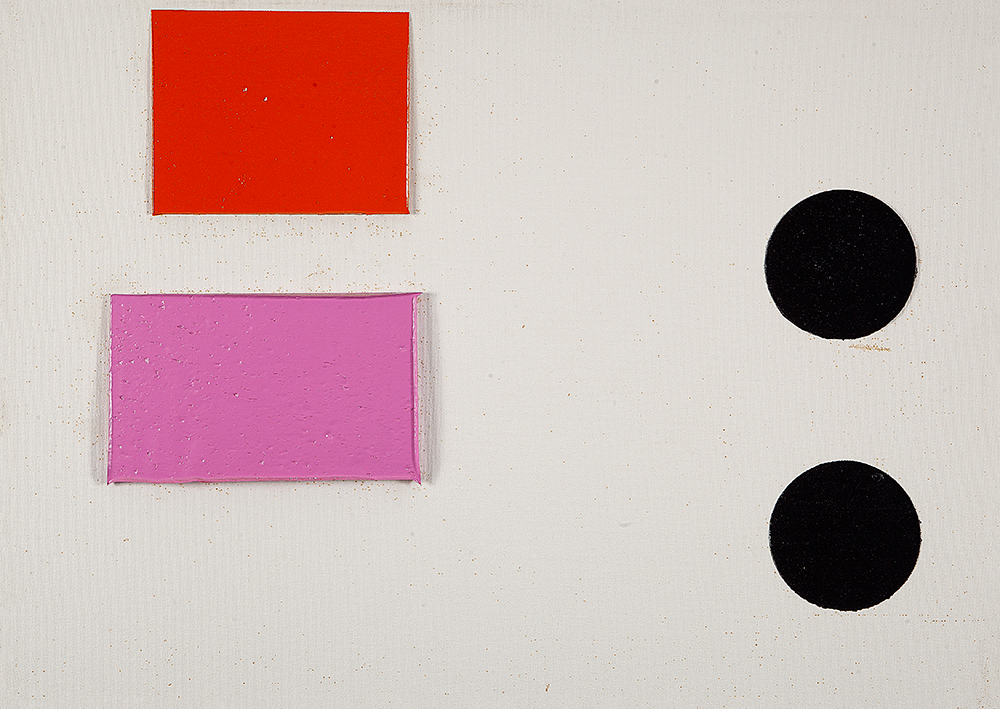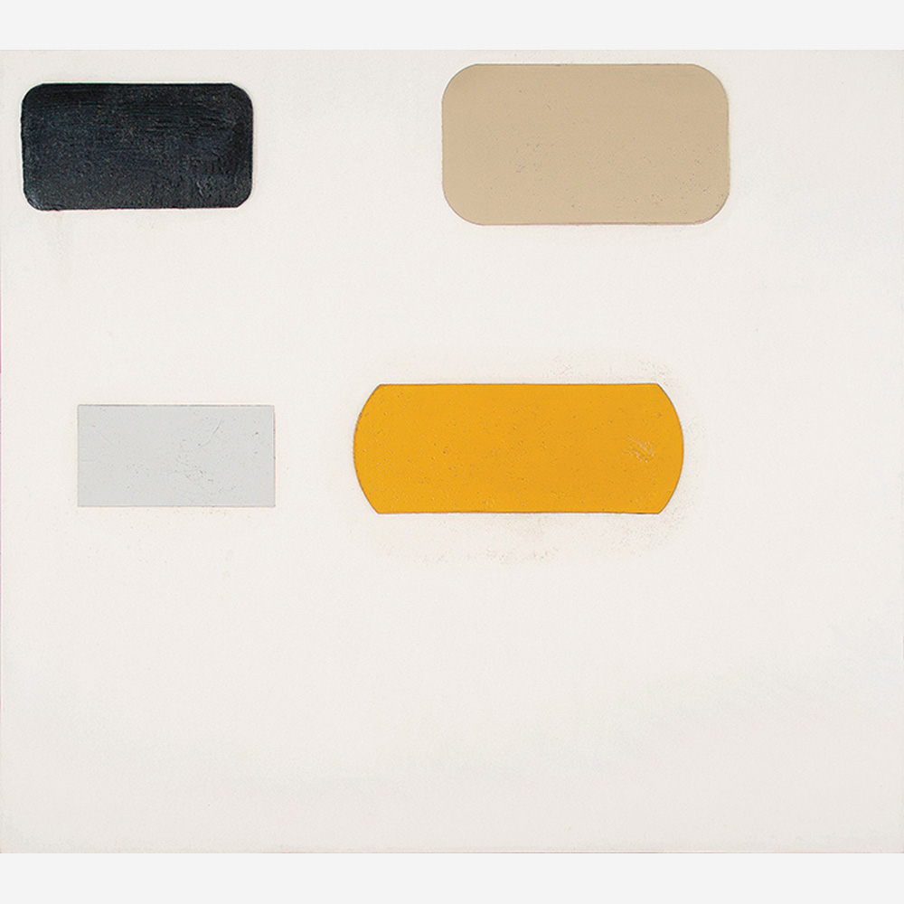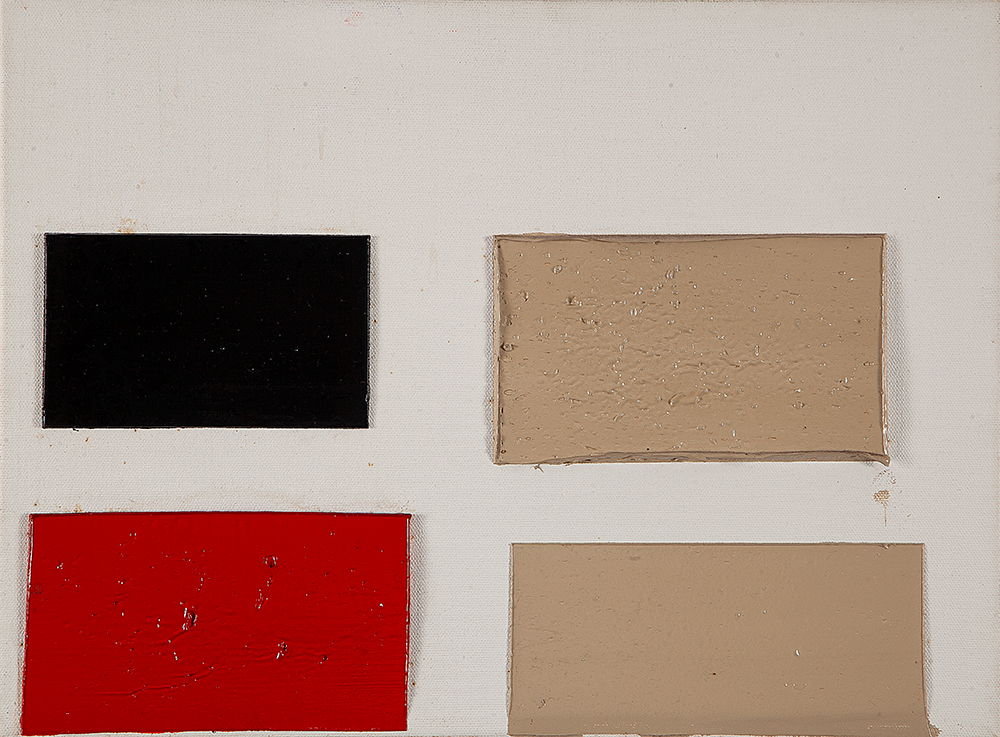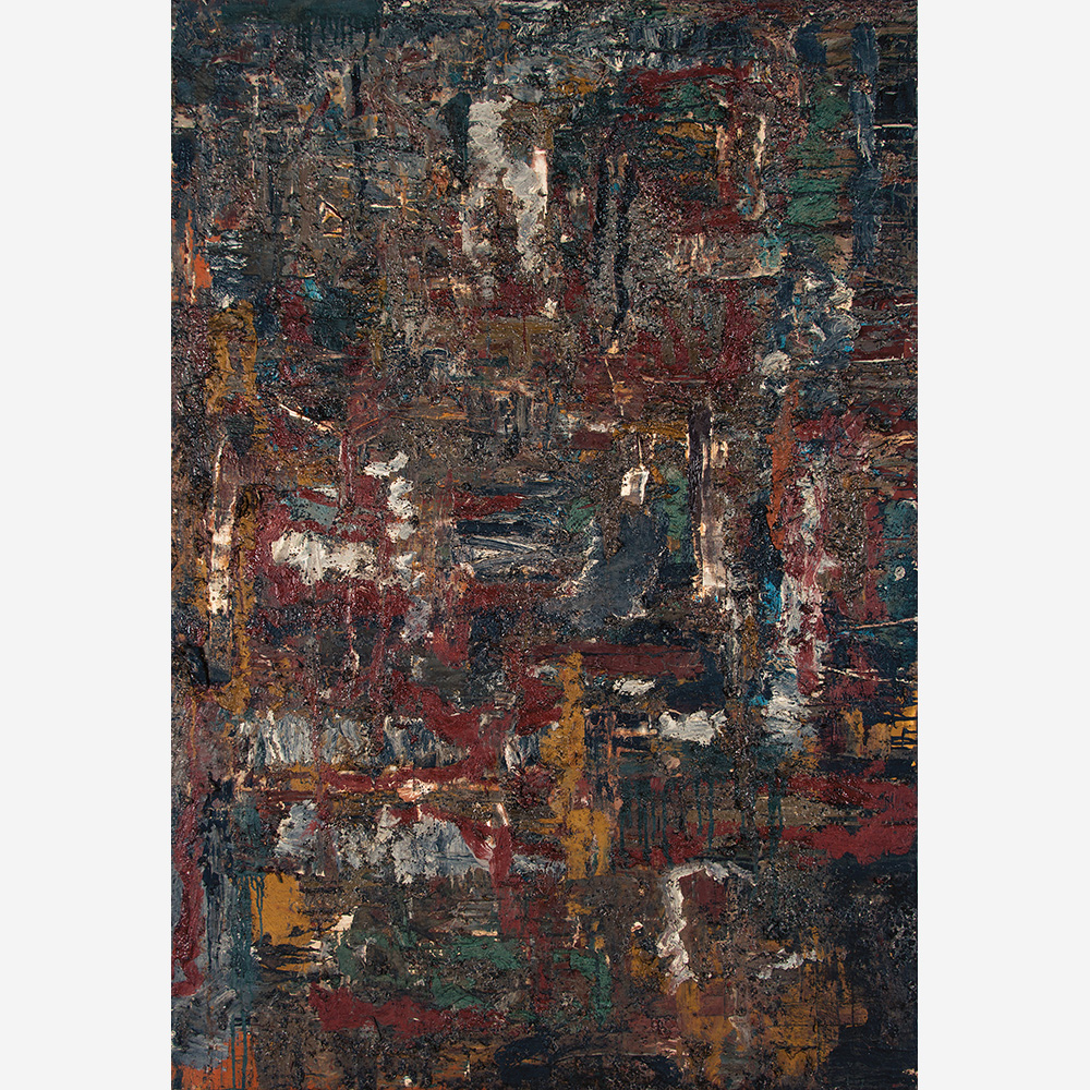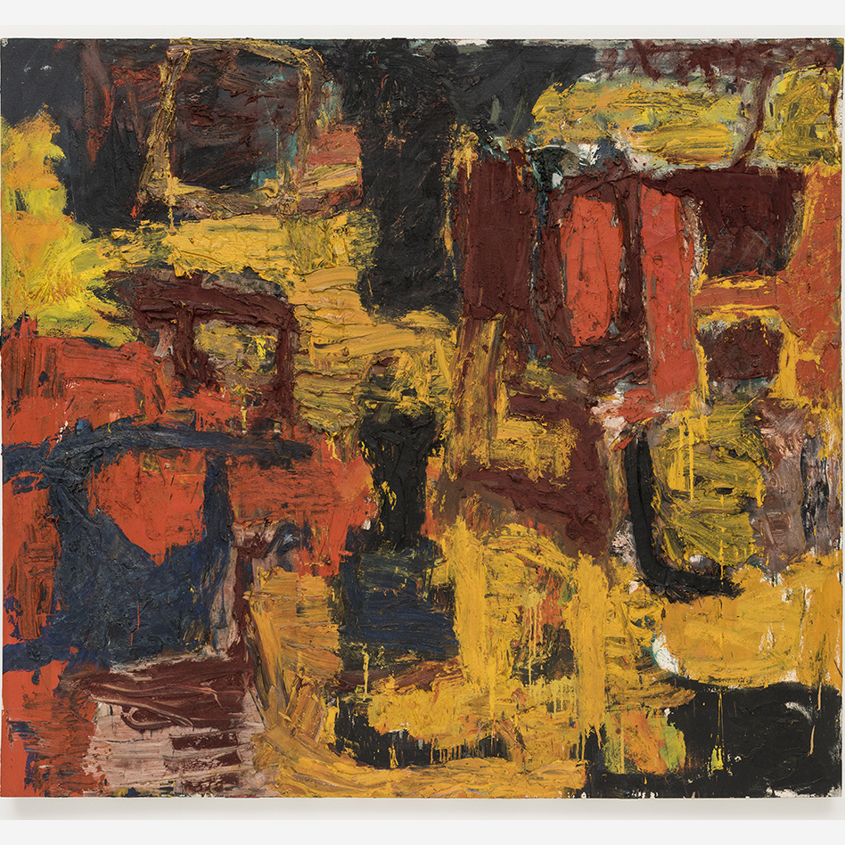 A materialidade da tinta e referências sobre a história da pintura permeiam o trabalho de Rodrigo Andrade. Sua gestualidade vibrante manifesta-se sobretudo na pintura, mas também transita por suportes como desenho, gravura e objeto. Nos anos 1980, o artista integrou o grupo Casa 7 e, sob a influência do neoexpressionismo alemão, sua obra é apresentada em grandes formatos, com pinceladas expressivas e cores fortes. Na década seguinte, alternou trabalhos figurativos e abstratos e, a partir de 1999, passou a criar obras em que espessas massas de tinta a óleo, em formas geométricas, são aplicadas sobre a tela. Ele instalou suas pinturas matéricas de cor e forma em espaços públicos de São Paulo, e em seu contato com esses entornos é que reside sua potência: há uma permeabilidade entre a concentração e a contenção dos elementos presentes nos trabalhos do artista e nos ambientes nos quais foram instalados.