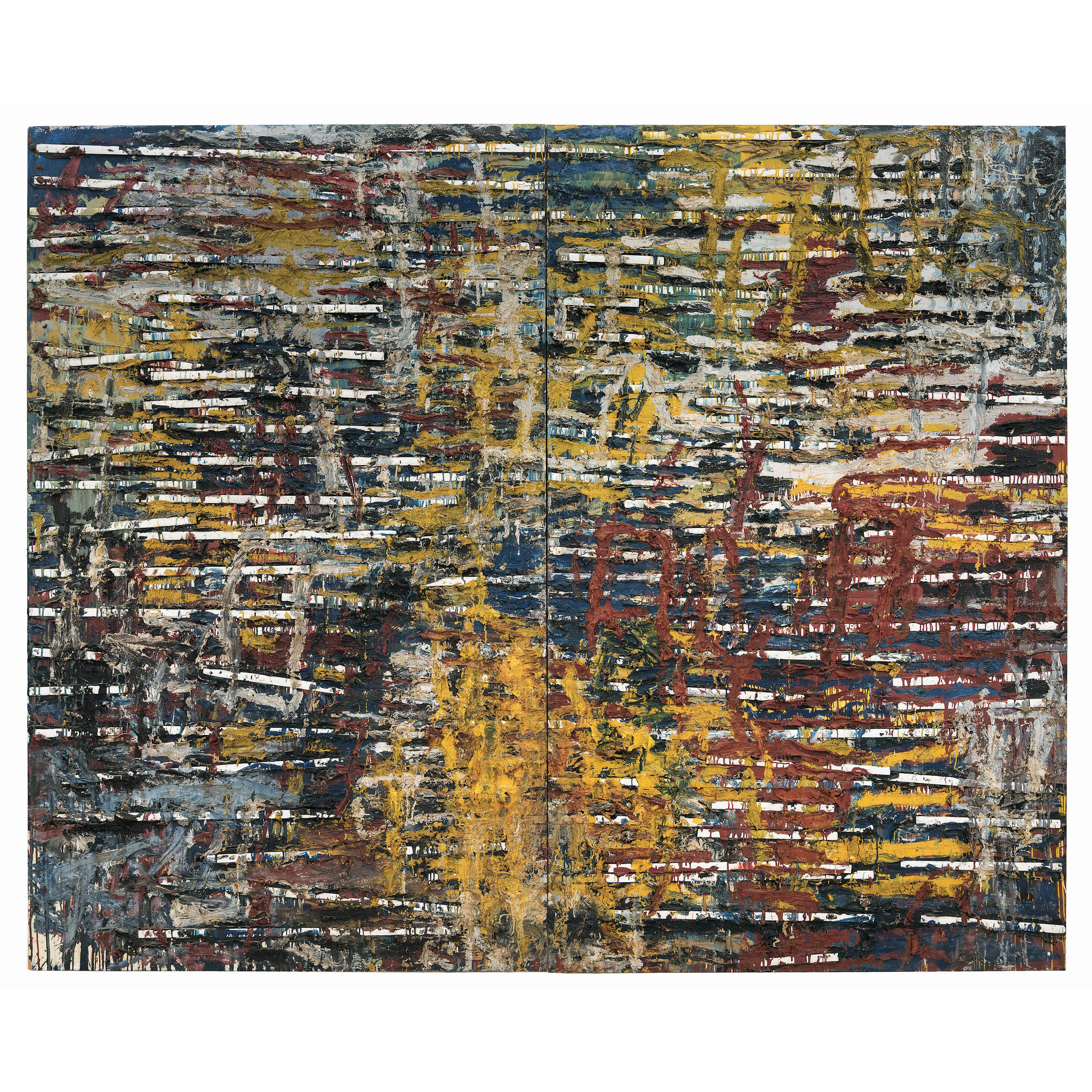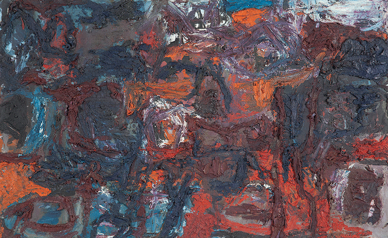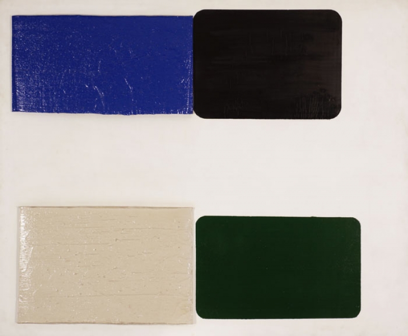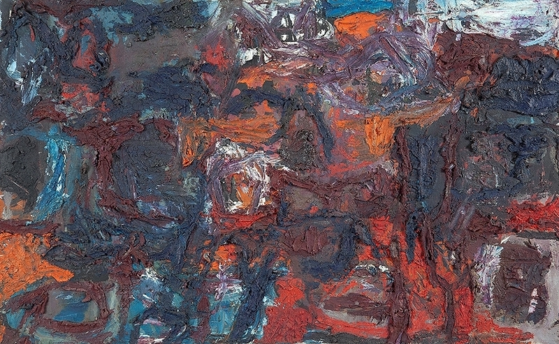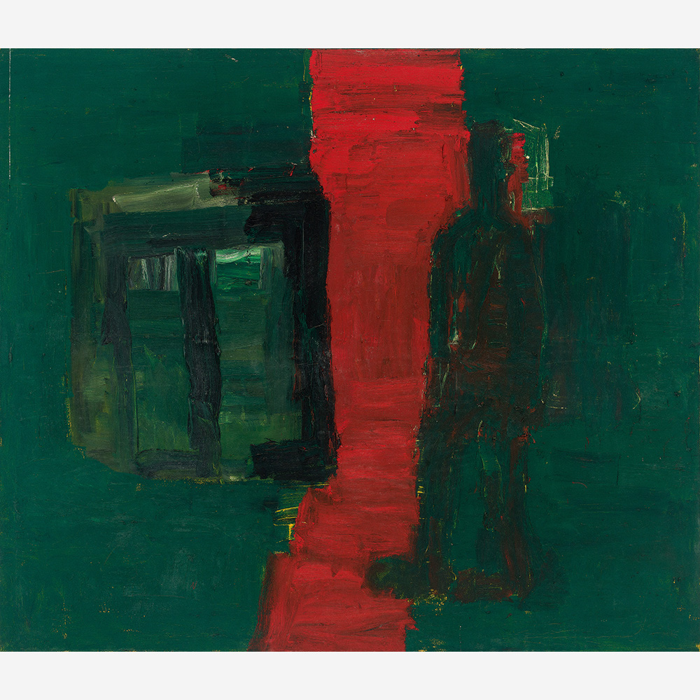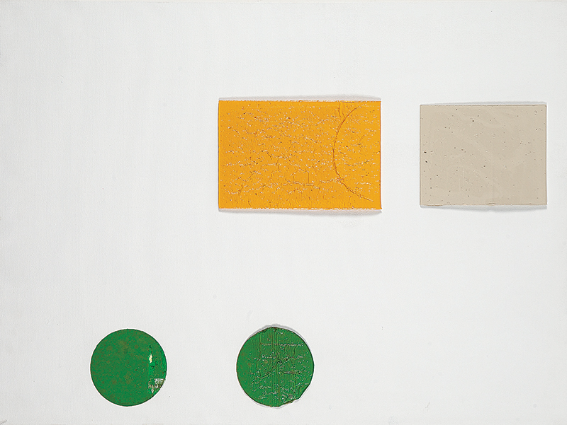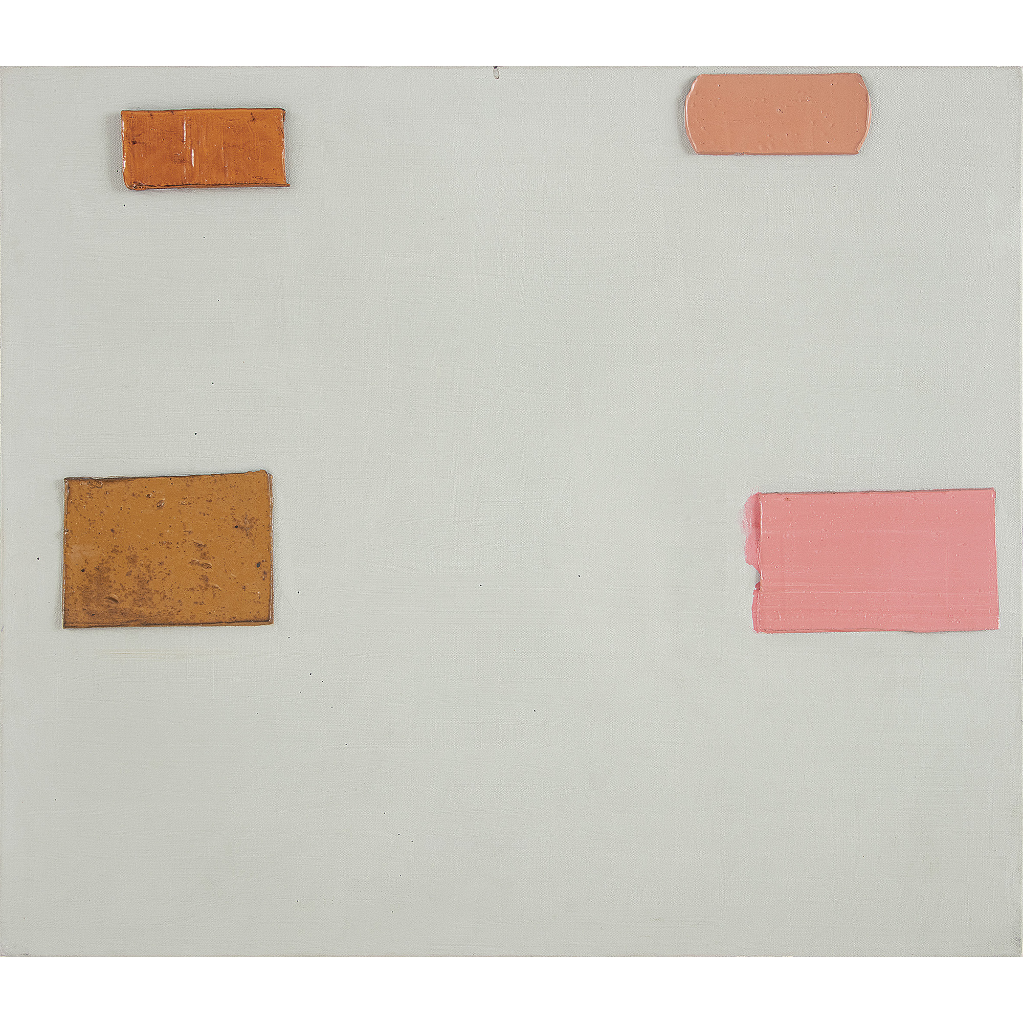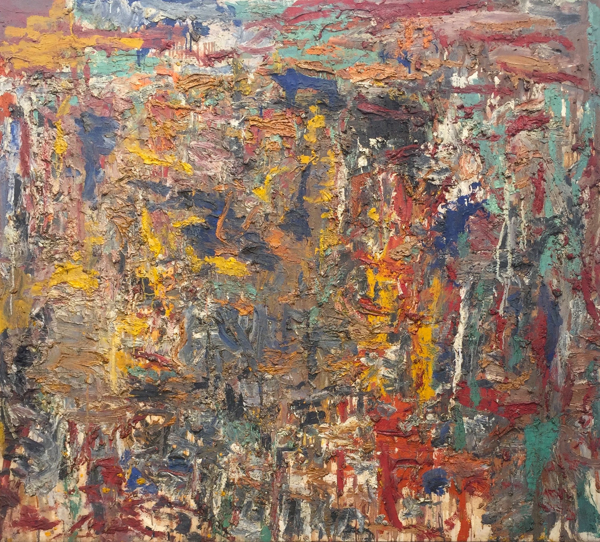 A materialidade da tinta e referências sobre a história da pintura permeiam o trabalho de Rodrigo Andrade. Sua gestualidade vibrante manifesta-se sobretudo na pintura, mas também transita por suportes como desenho, gravura e objeto. Nos anos 1980, o artista integrou o grupo Casa 7 e, sob a influência do neoexpressionismo alemão, sua obra é apresentada em grandes formatos, com pinceladas expressivas e cores fortes. Na década seguinte, alternou trabalhos figurativos e abstratos e, a partir de 1999, passou a criar obras em que espessas massas de tinta a óleo, em formas geométricas, são aplicadas sobre a tela. Ele instalou suas pinturas matéricas de cor e forma em espaços públicos de São Paulo, e em seu contato com esses entornos é que reside sua potência: há uma permeabilidade entre a concentração e a contenção dos elementos presentes nos trabalhos do artista e nos ambientes nos quais foram instalados.