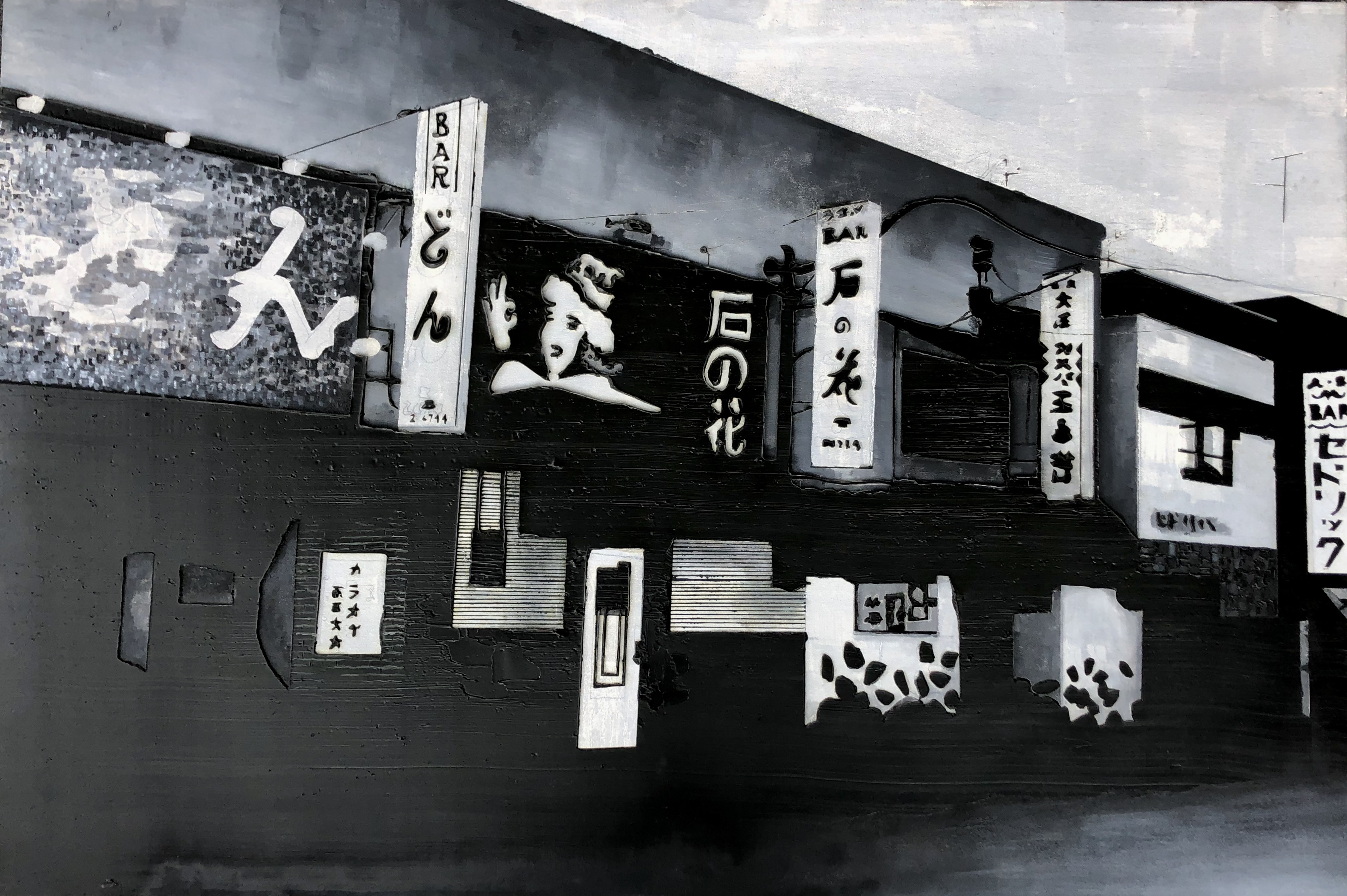 2001 - Site specific – óleo sobre parede, Lanches Alvorada, São Paulo, SP, Brasil