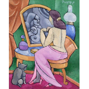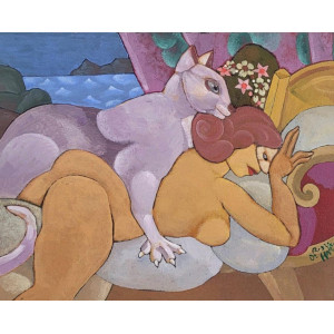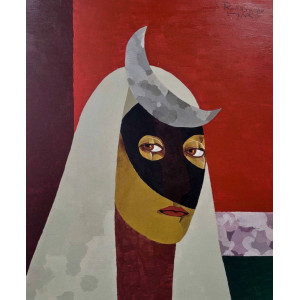 Rodrigo de Haro - Mulher com Máscara com Felino - Acrílica sobre Eucatex - Medidas: 50 x 40 cm - Assinado