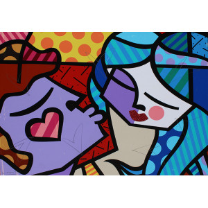 Romero Britto - Casal - Giglê sobre tela com colagem - 95 alt x 1,26 larg (cm) - acie - 38/60