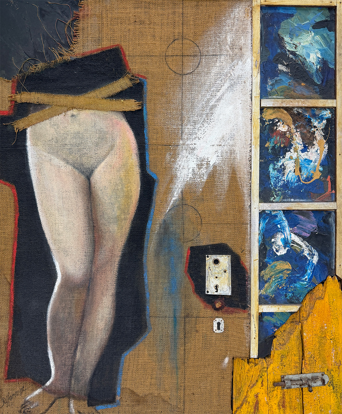 RONALDO NORONHA - "Sem titulo" - técnica mista sobre juta e madeira - 110 x 90 cm - a.c.i.e.