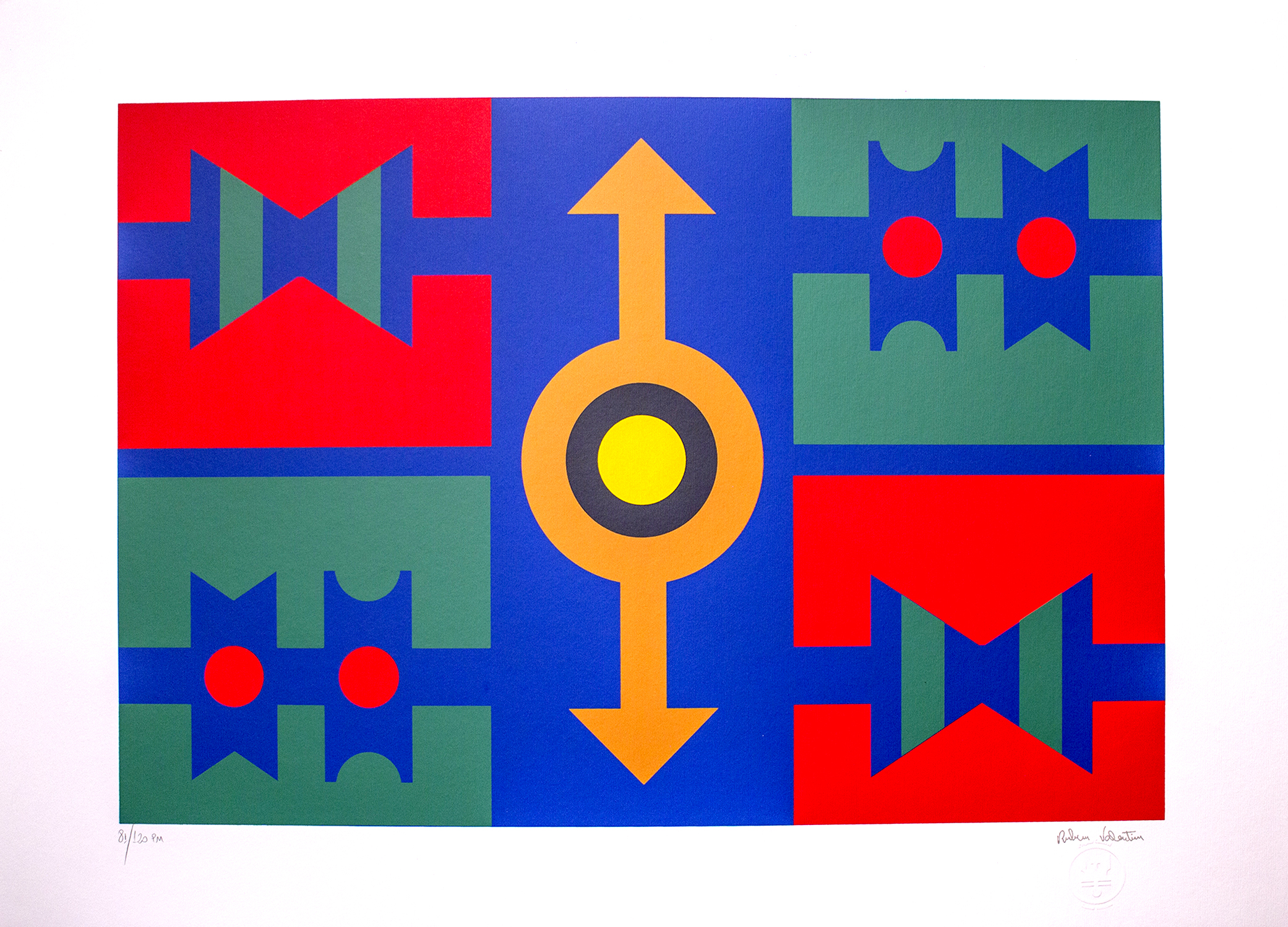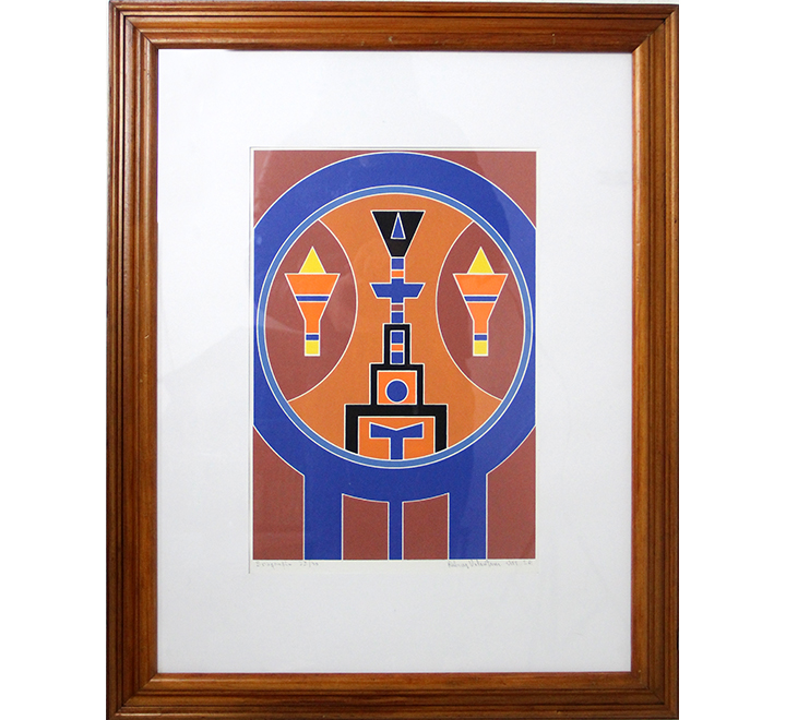 Rubem Valentim - Emblema - 60-150. Serigrafia, 52x34,5 cm, 1974, A.C.I.D. a lápis. Com moldura