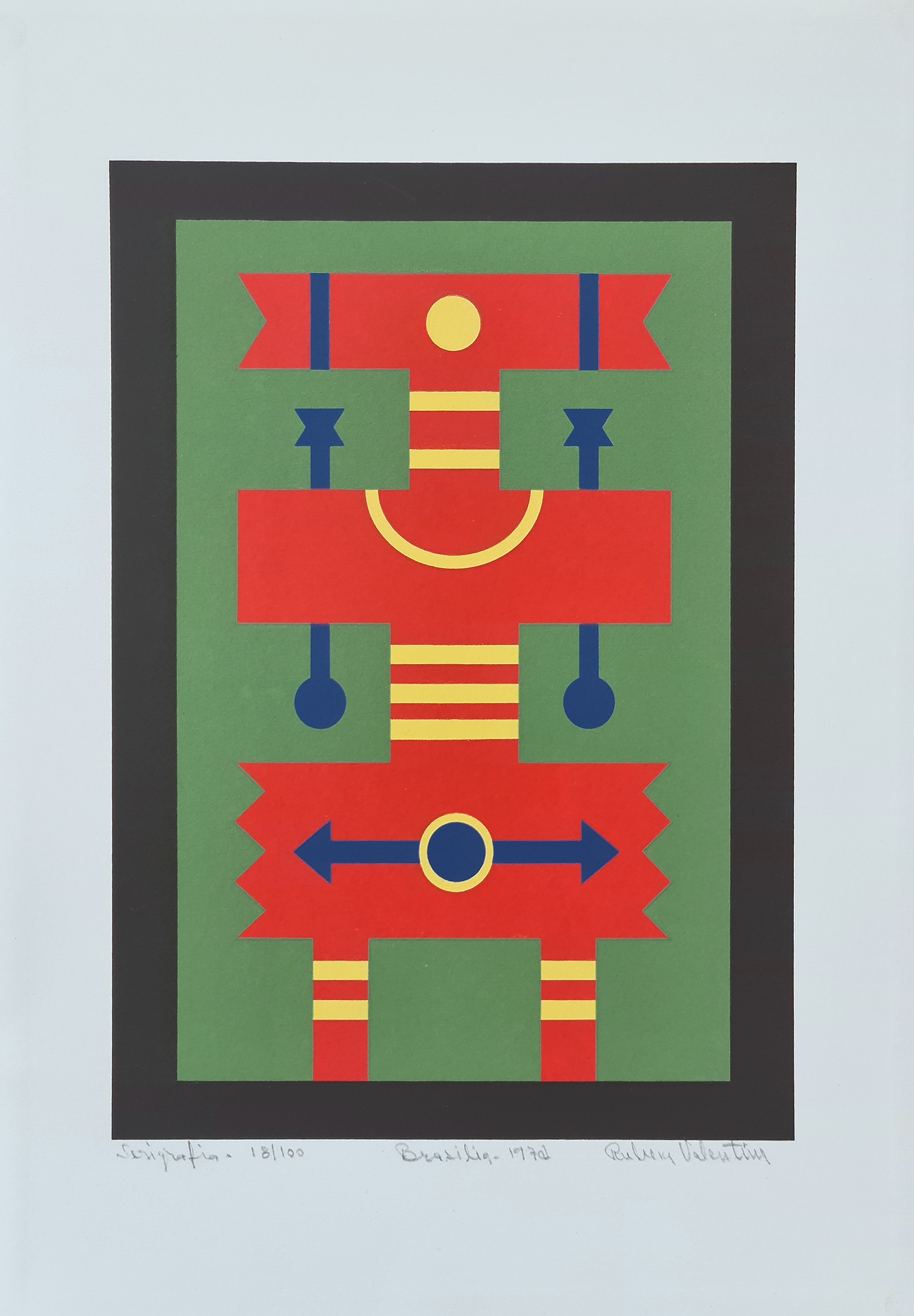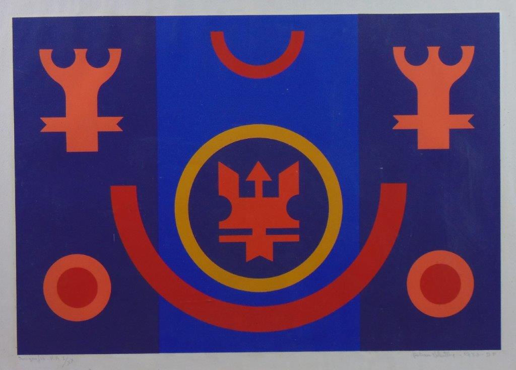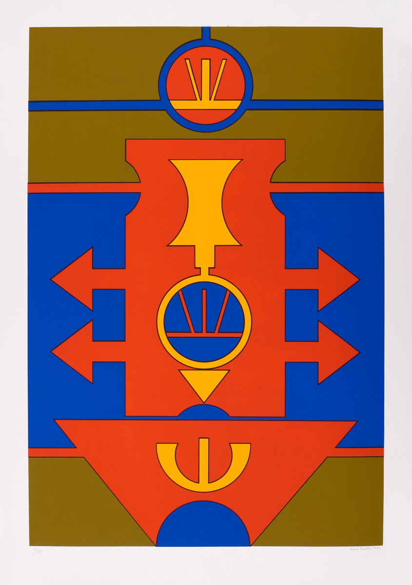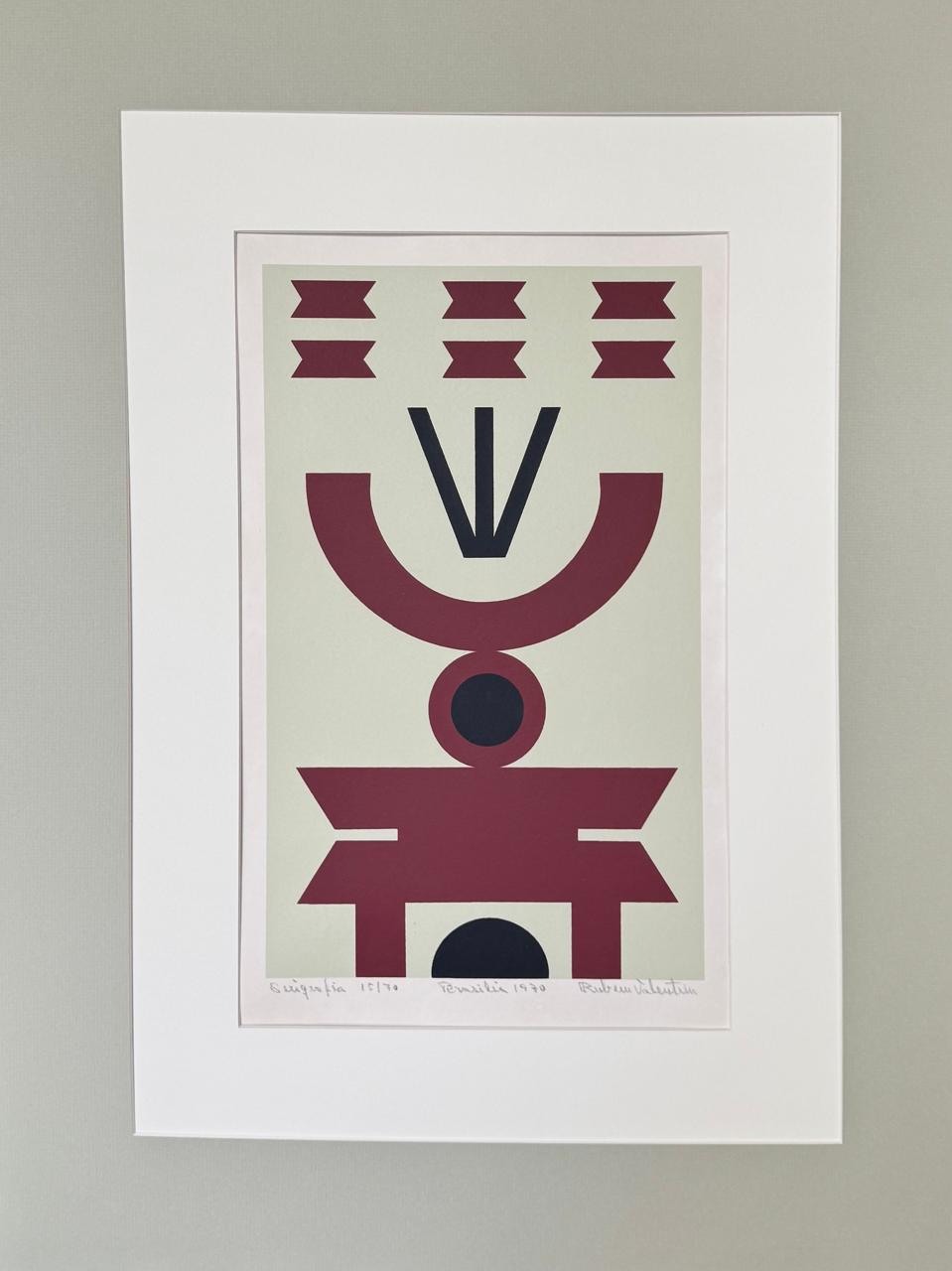 Rubem Valentim - Emblema - 60-150. Serigrafia, 52x34,5 cm, 1974, A.C.I.D. a lápis. Com moldura