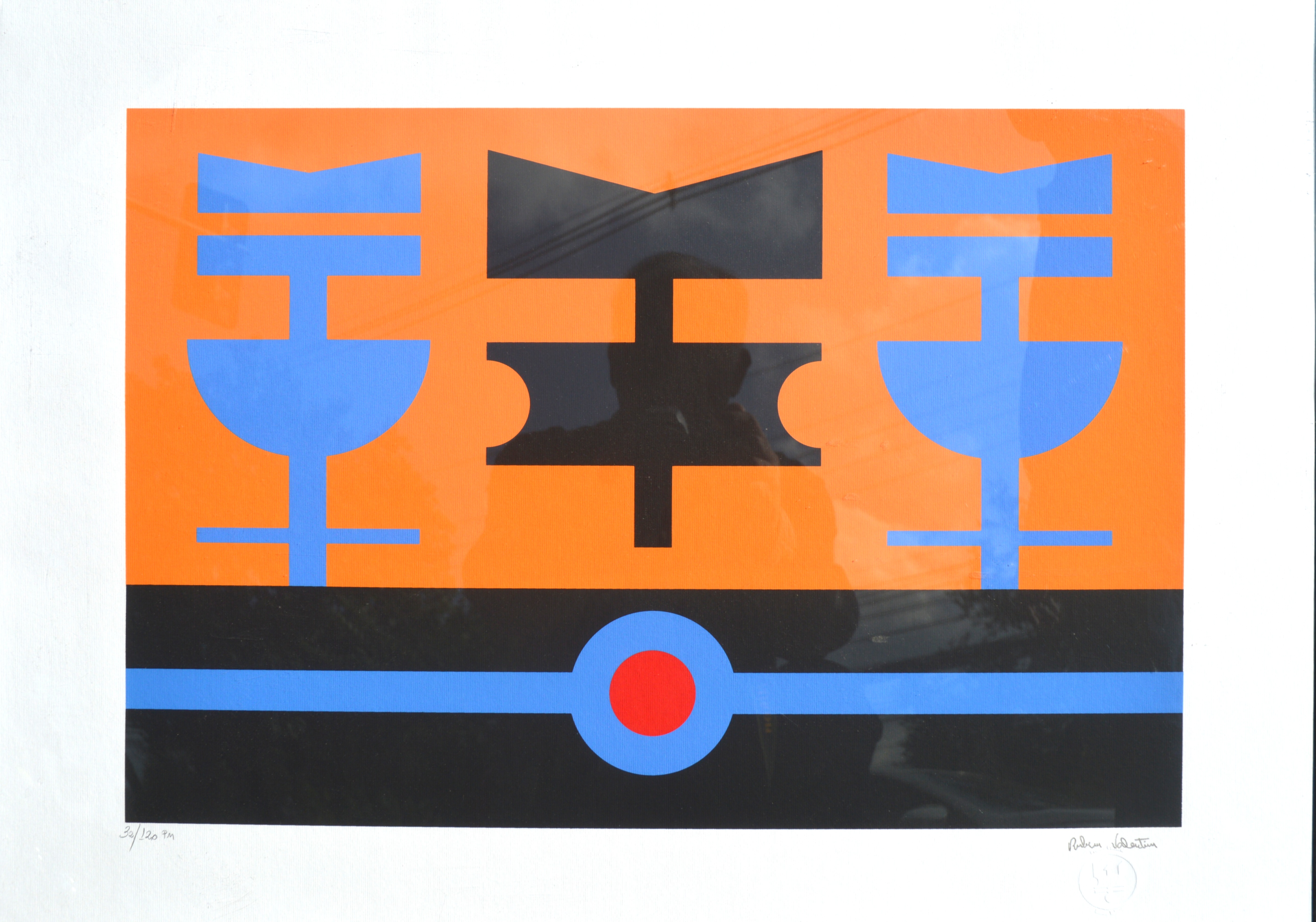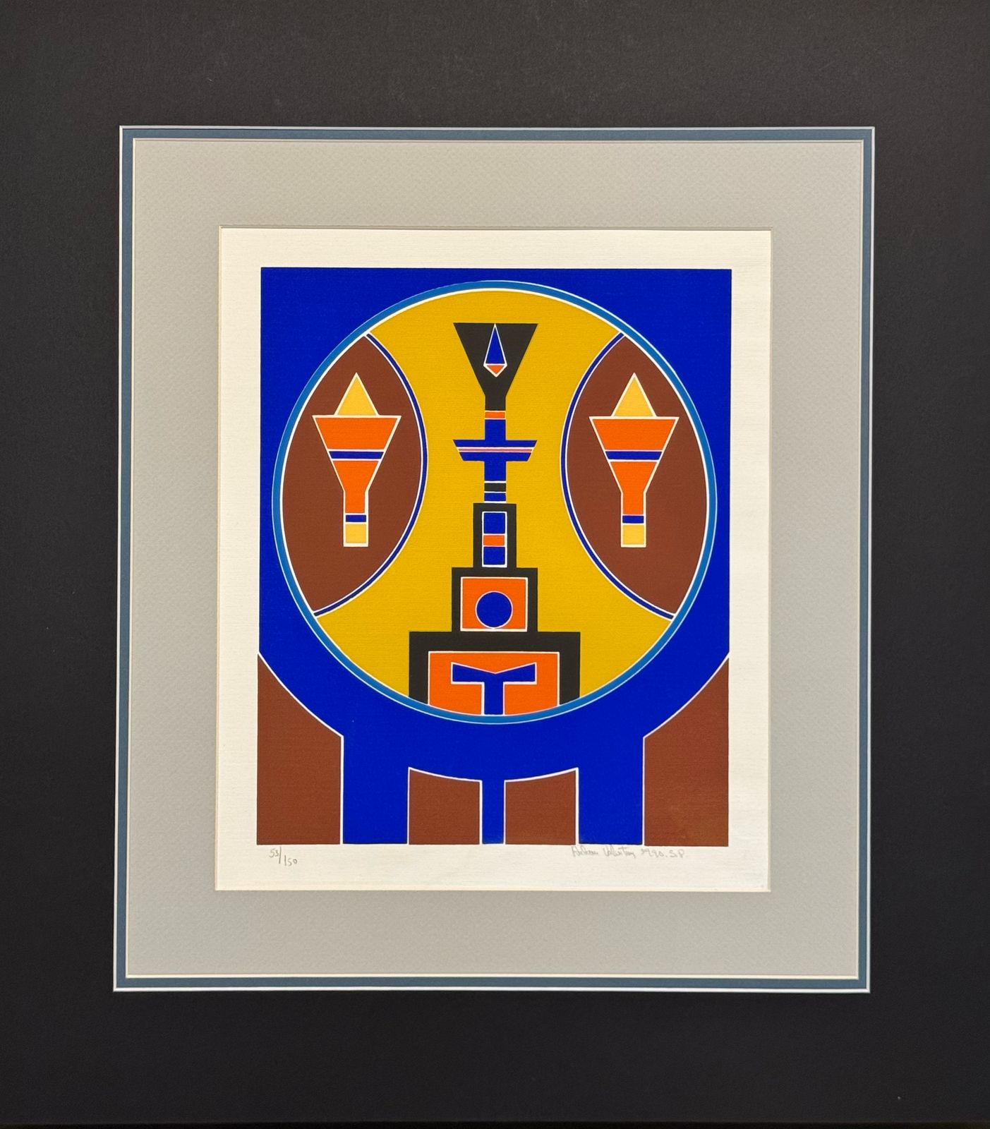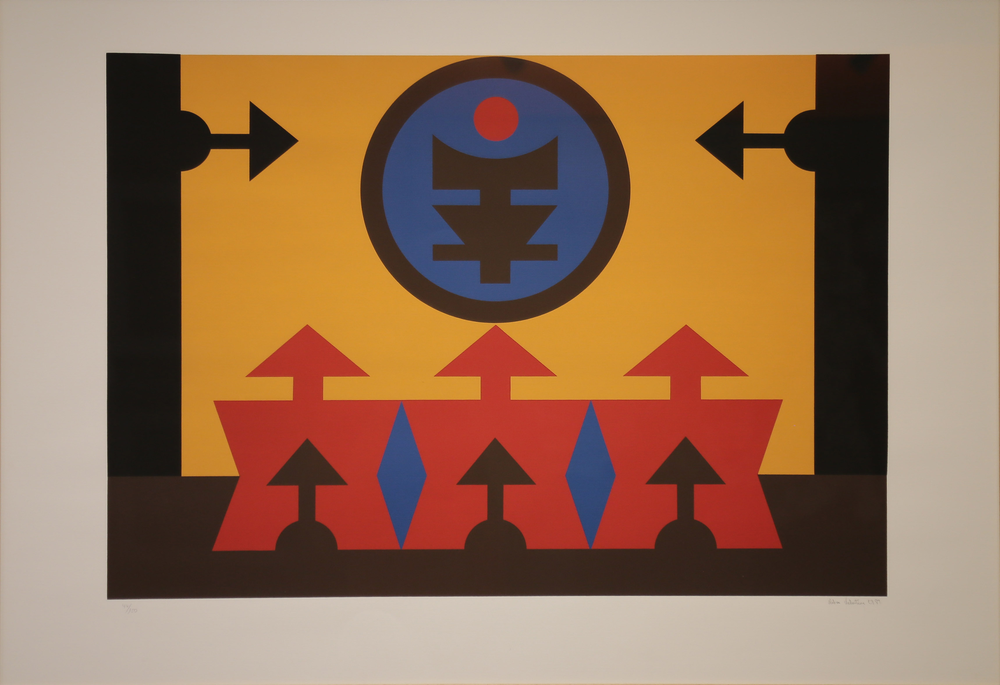 Rubem Valentim - Emblema - 60-150. Serigrafia, 52x34,5 cm, 1974, A.C.I.D. a lápis. Com moldura