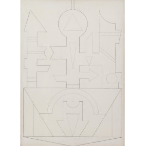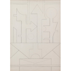 Rubem Valentim - Emblema-Desenho-Construção 90 - 1990 - Grafite sobre tela - Assinado verso - 70 x 50 cm.