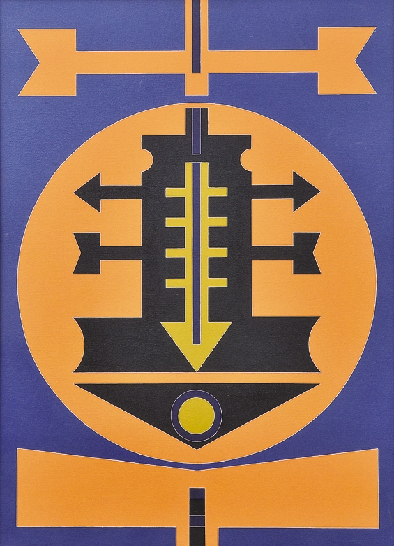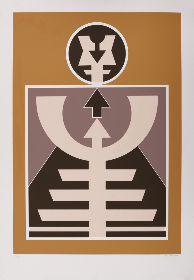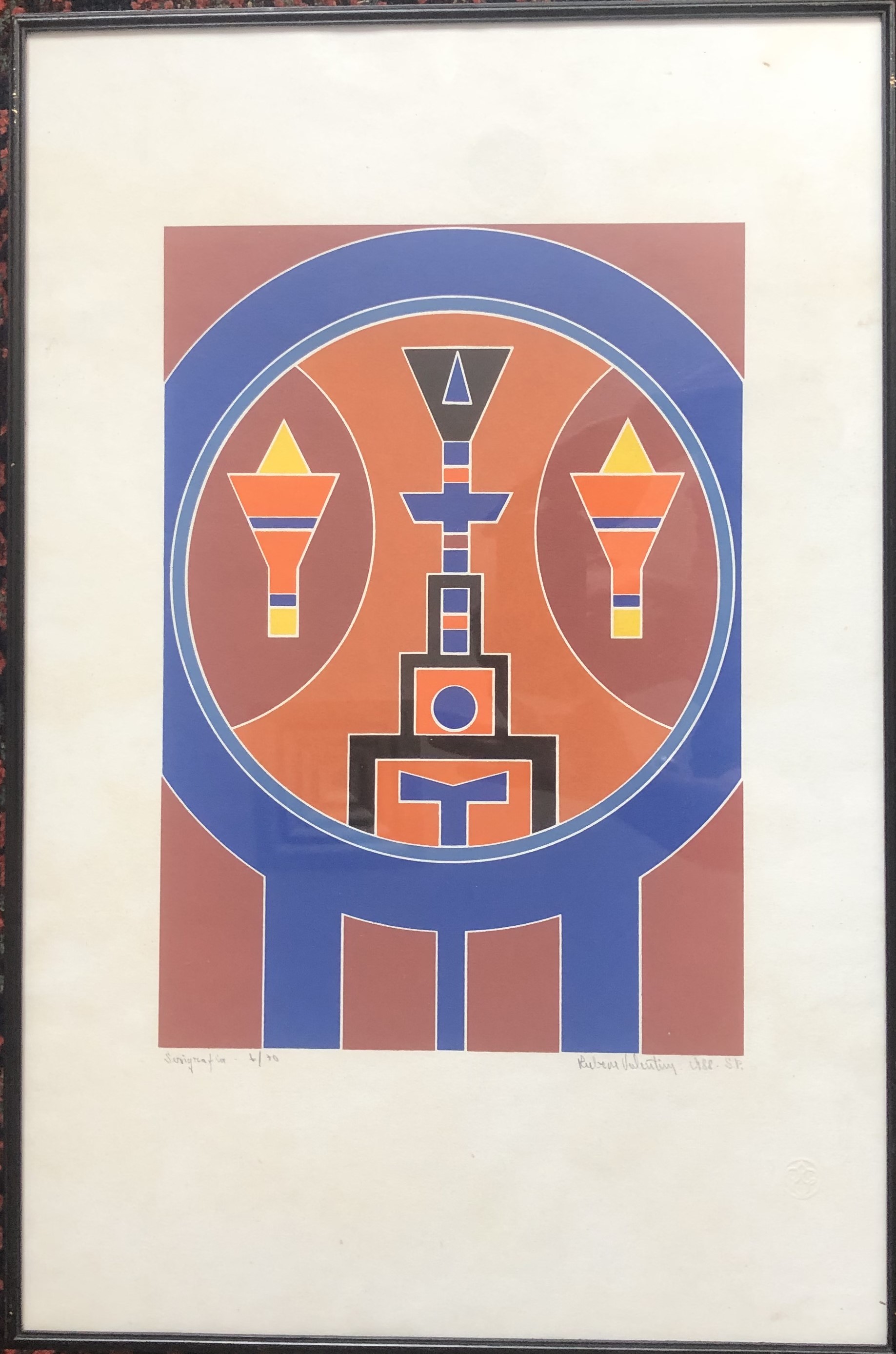 Rubem Valentim - Emblema - 60-150. Serigrafia, 52x34,5 cm, 1974, A.C.I.D. a lápis. Com moldura