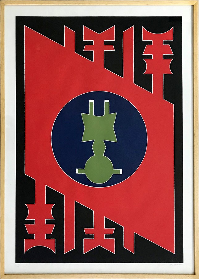 Rubem Valentim - Emblema - 60-150. Serigrafia, 52x34,5 cm, 1974, A.C.I.D. a lápis. Com moldura