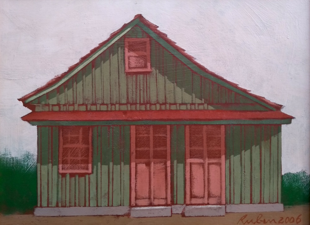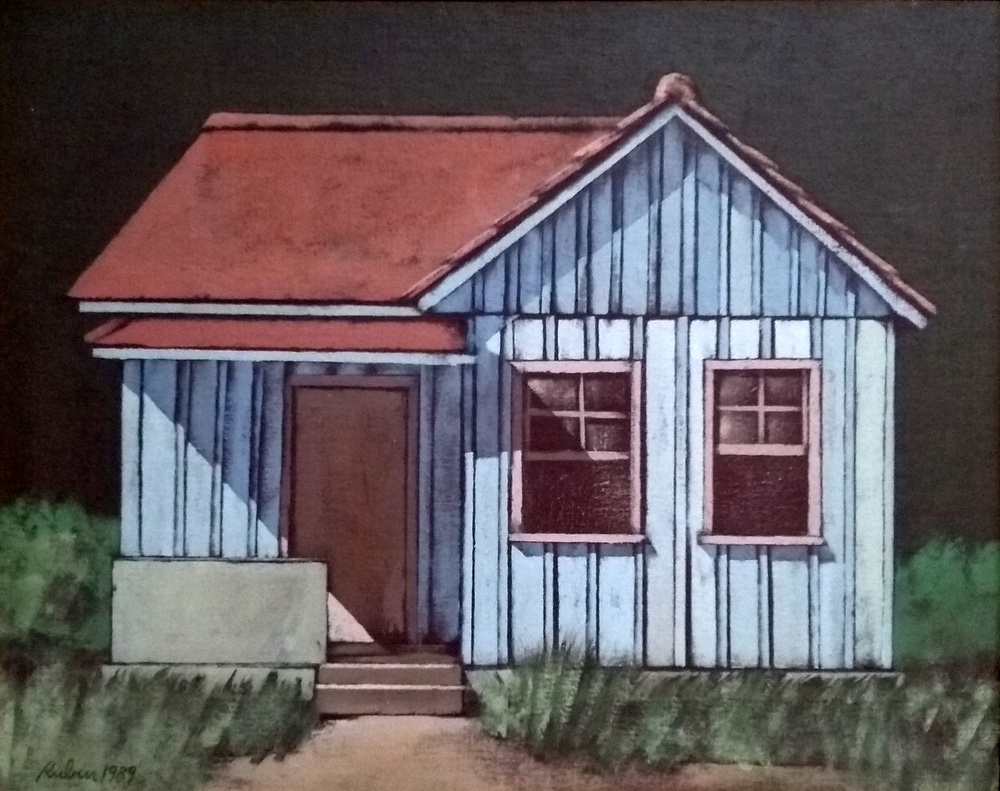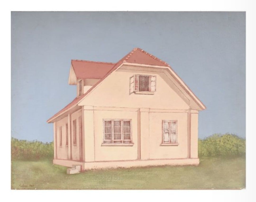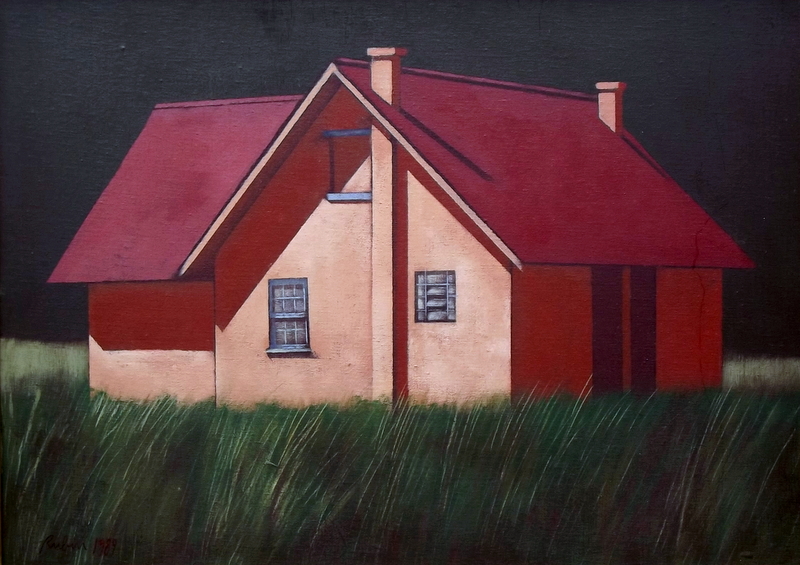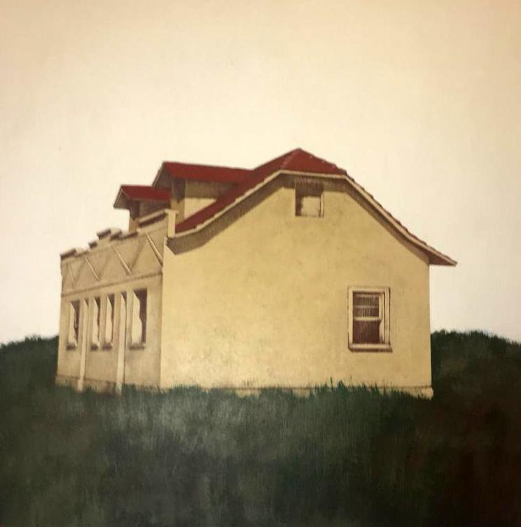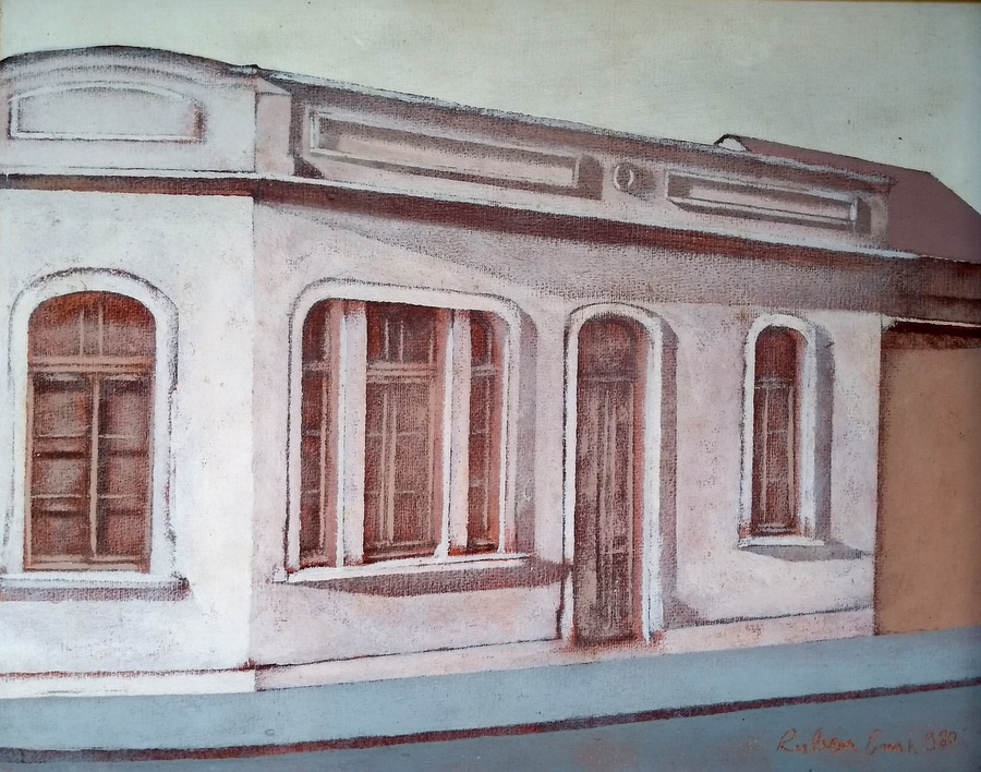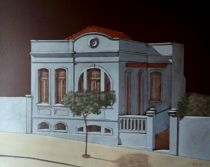 Ruben Esmanhotto - Cenário, 1978 - Vinil encerado sobre placa, assinado e datado inferior direito. (precisa de restauro) - 60 x 80 cm.