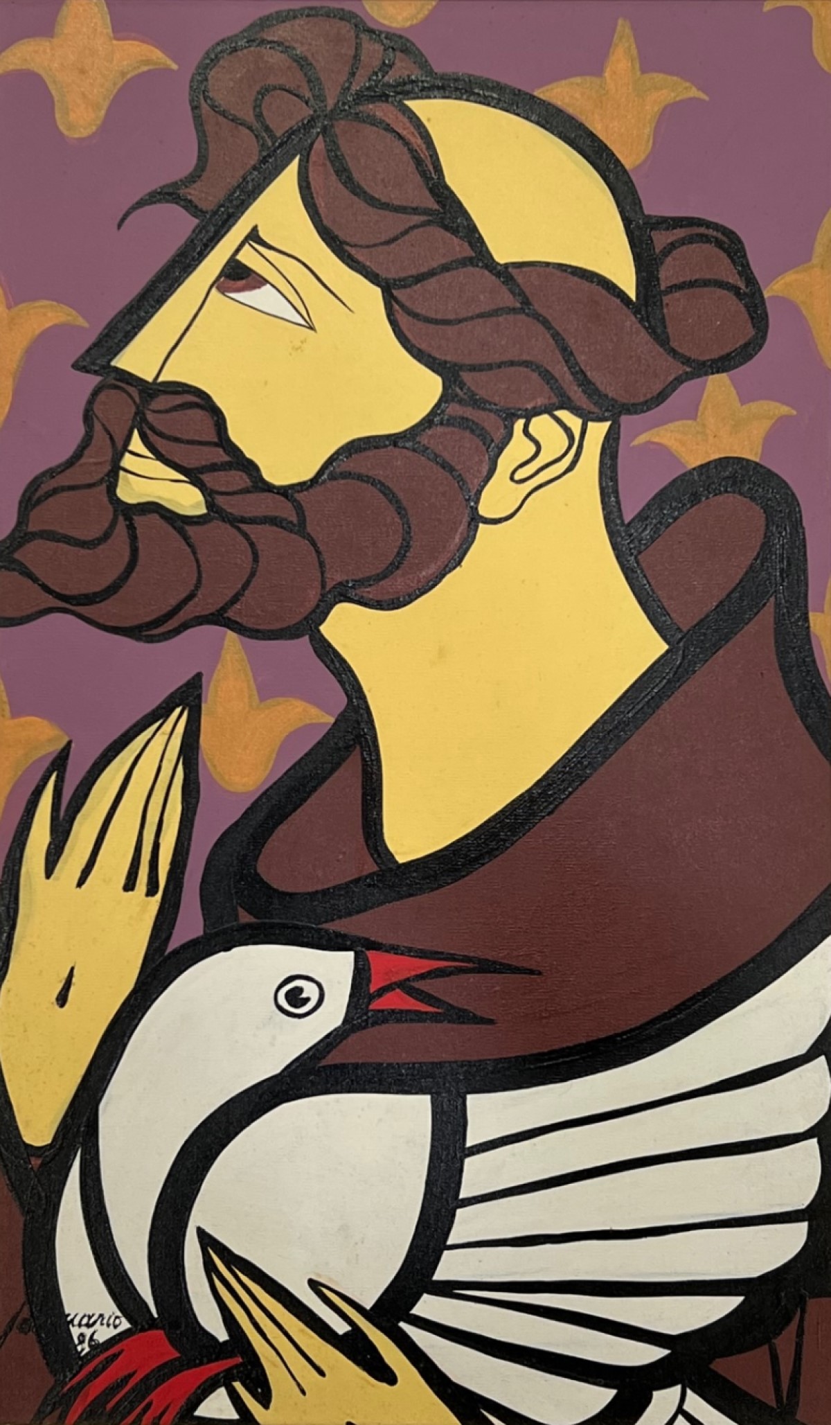 "(...) Até mesmo a qualidade escultória de seus guaches aproximam-no daquela experiência do artista das priscas eras, que sobre a rocha desuniforme, e com as cores da terra e os sumos da natureza, retratava o seu ato obrigatório de sobrevivência. As nuanças e diluições de suas tintas nos dão esta sensação de relevos de cor primeira e crua, de tensa e muda religiosidade".