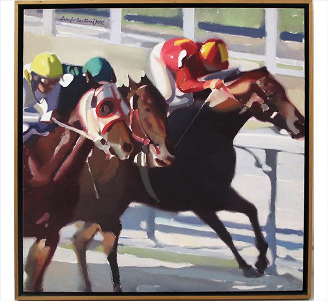 Sérgio Bertoni - Ciclistas - Óleo Sobre Tela - Medidas 75 x 75 cm - Assinado e datado 1987
