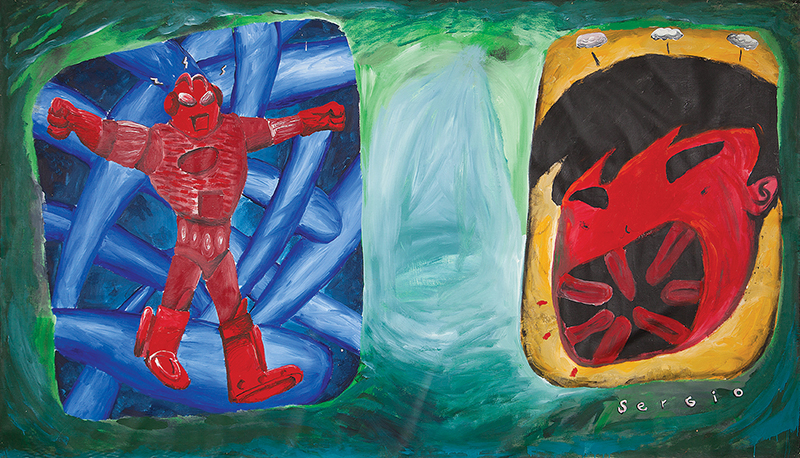 Sérgio Mauro Romagnolo (São Paulo, SP, 1957). Escultor, pintor, desenhista, artista intermídia e professor. Estuda no Colégio Iadê, em São Paulo, entre 1976 e 1977. Em 1980, ingressa no curso de artes plásticas da Faculdade de Artes Plásticas da Fundação Armando Alvares Penteado (Faap), em São Paulo. Entra em contato com a obra de Regina Silveira (1939), Nelson Leirner (1932) e Julio Plaza (1938-2003). Entre 1980 e 1984, é professor nas redes pública e privada de ensino. Leciona pintura na Faap entre 1985 e 1986. Nesse ano, realiza sua primeira exposição individual na Galeria Luisa Strina, em São Paulo. No início da década 1990, passa a dedicar-se à escultura e atua como professor em oficinas e workshops. Participa da Bienal Internacional de São Paulo em 1977, 1983, 1987 e 1991. Em 1999, finaliza o mestrado em artes na Escola de Comunicação e Artes da Universidade de São Paulo (ECA/USP), com a dissertação Esculturas: Rugas e Alegorias e, em 2002, conclui o doutorado em artes na mesma instituição, com a tese O Vazio e o Oco na Escultura. Entre 2000 e 2005, leciona na Faculdade Santa Marcelina, São Paulo e a partir de 2007, na Universidade Estadual Paulista "Júlio de Mesquita Filho" (Unesp).