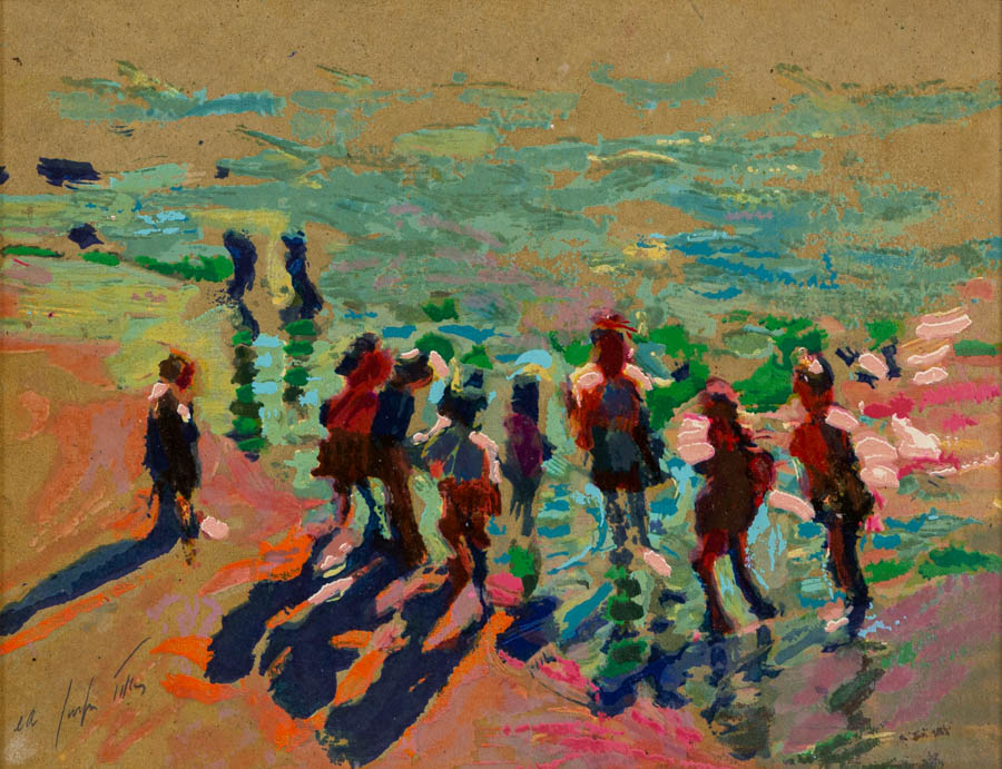 Sérgio Telles - Domingo no Jardim da Luxemburgo - 15 x 19 cm - Óleo sobre madeira - Assinatura canto inferior direito e Data 1979