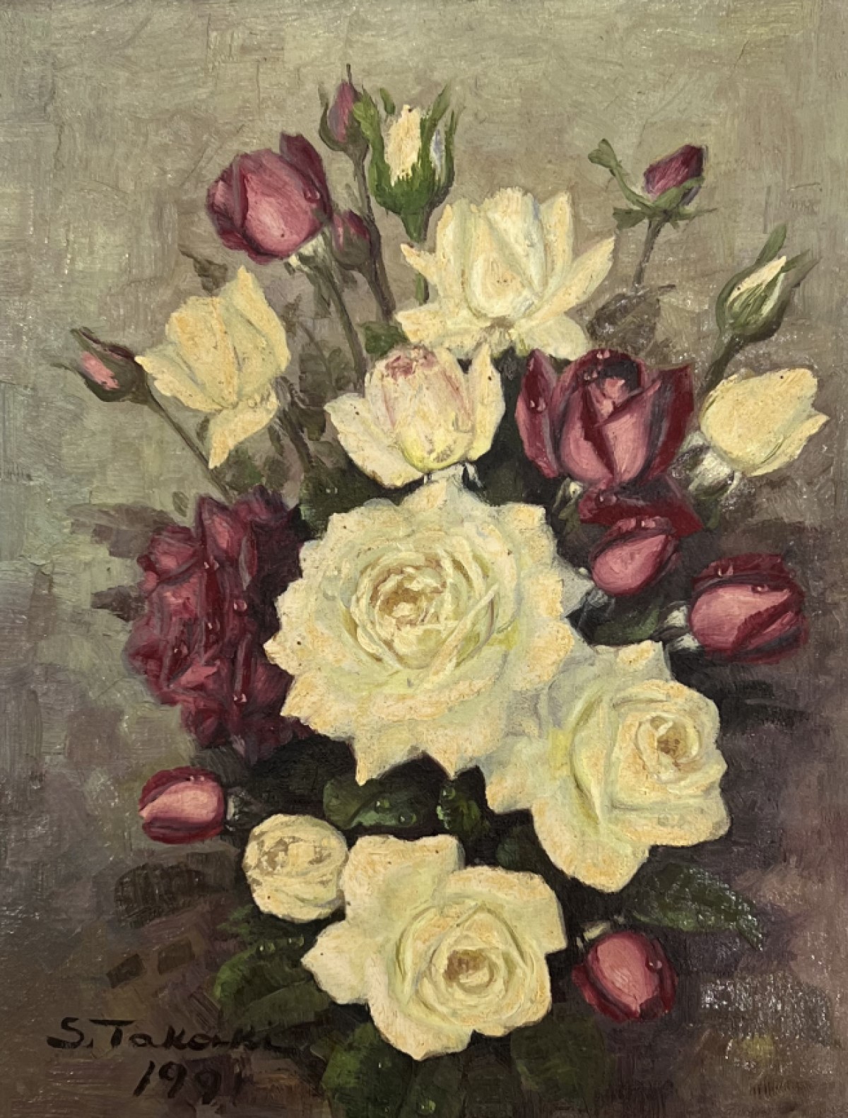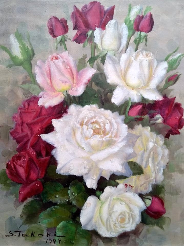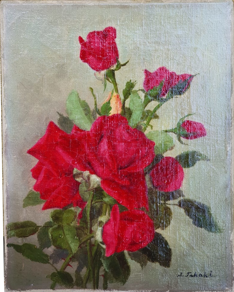 Shokichi Takaki (1914 - 2006), Nasceu em Niegata, no Japão. Em 1927 veio para o Brasil. Iniciou-se como autodidata e nessa condição até hoje permanece. De lavra acadêmica, sua pintura reproduziu paisagens, naturezas-mortas, figuras humanas, flores e marinhas, em cunho realista e naturalista. Prêmios: 1982 - Ribeirão Preto SP - Salão de Belas Artes de Ribeirão Preto - Medalha de Ouro Francisco Cossolet 1984 - Le Centre International D´Art Contemporain - Medalha de Ouro; 1984 - São Paulo SP - Salão da Associação Paulista de Belas Artes - Pequena e Grande Medalha de Bronze e Pequena e Grande Medalha de Prata