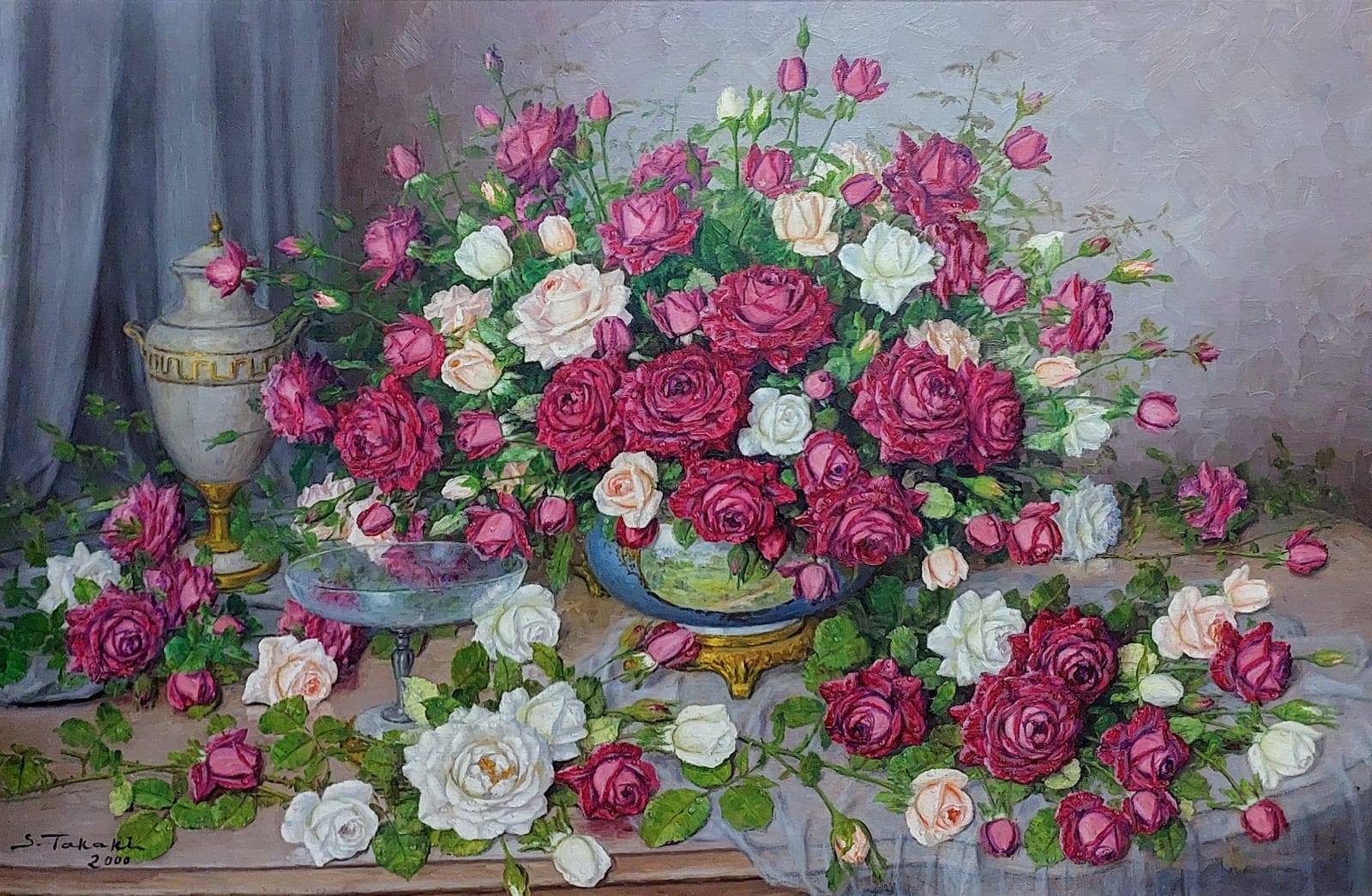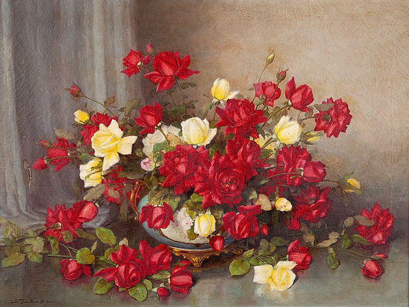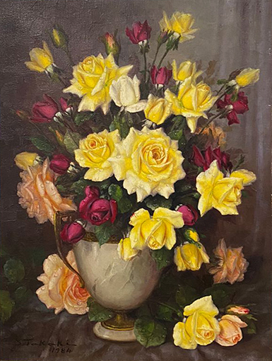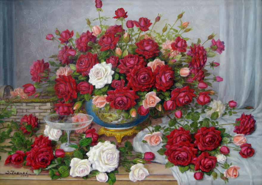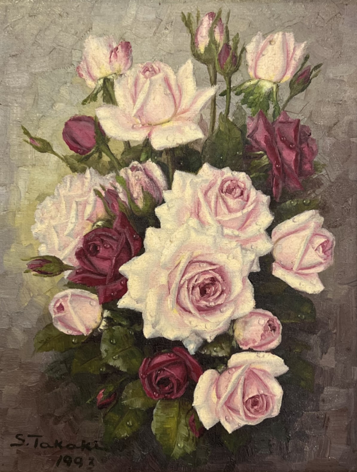 Shokichi Takaki (1914 - 2006), Nasceu em Niegata, no Japão. Em 1927 veio para o Brasil. Iniciou-se como autodidata e nessa condição até hoje permanece. De lavra acadêmica, sua pintura reproduziu paisagens, naturezas-mortas, figuras humanas, flores e marinhas, em cunho realista e naturalista. Prêmios: 1982 - Ribeirão Preto SP - Salão de Belas Artes de Ribeirão Preto - Medalha de Ouro Francisco Cossolet 1984 - Le Centre International D´Art Contemporain - Medalha de Ouro; 1984 - São Paulo SP - Salão da Associação Paulista de Belas Artes - Pequena e Grande Medalha de Bronze e Pequena e Grande Medalha de Prata