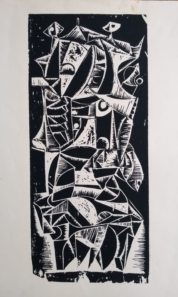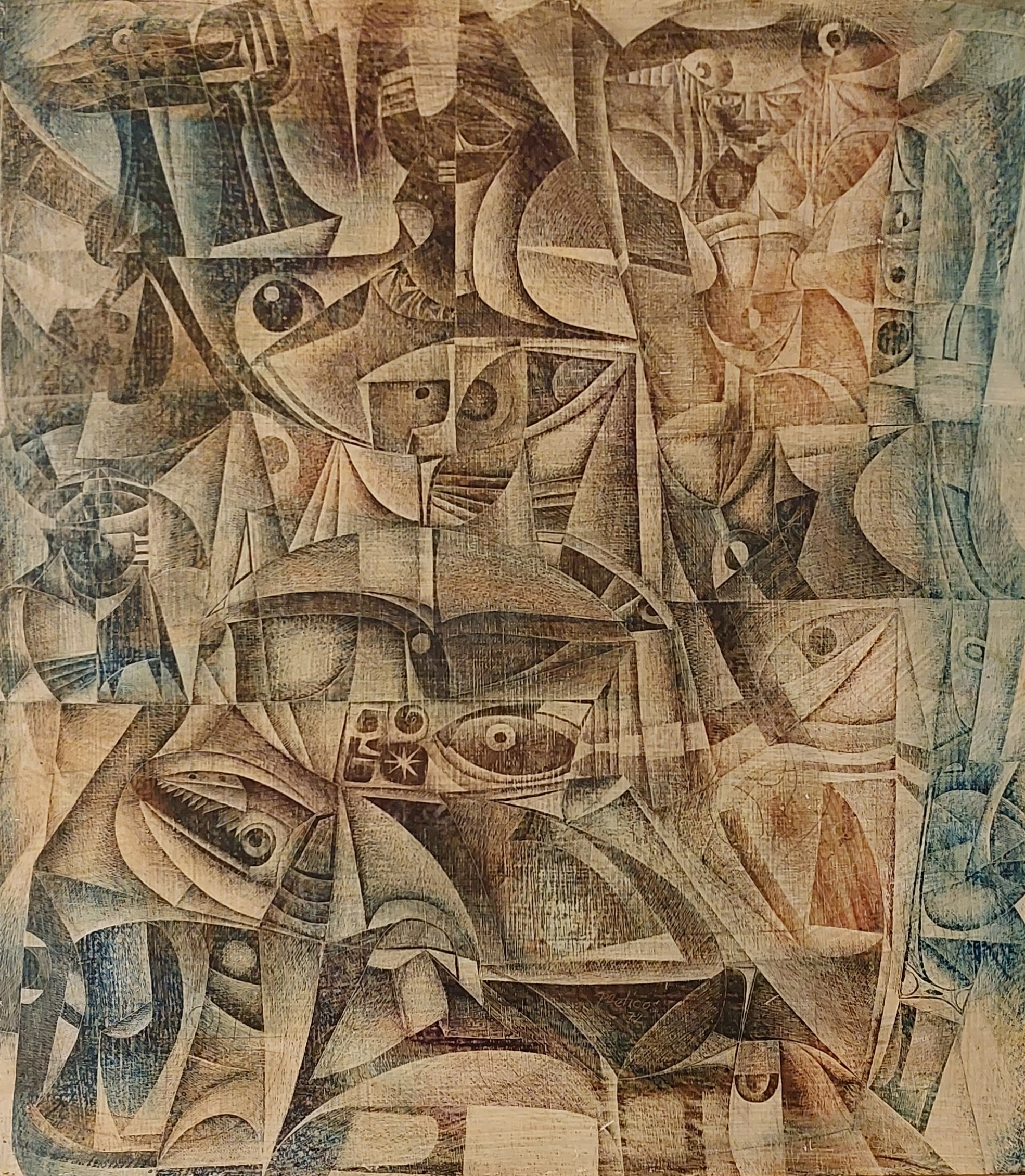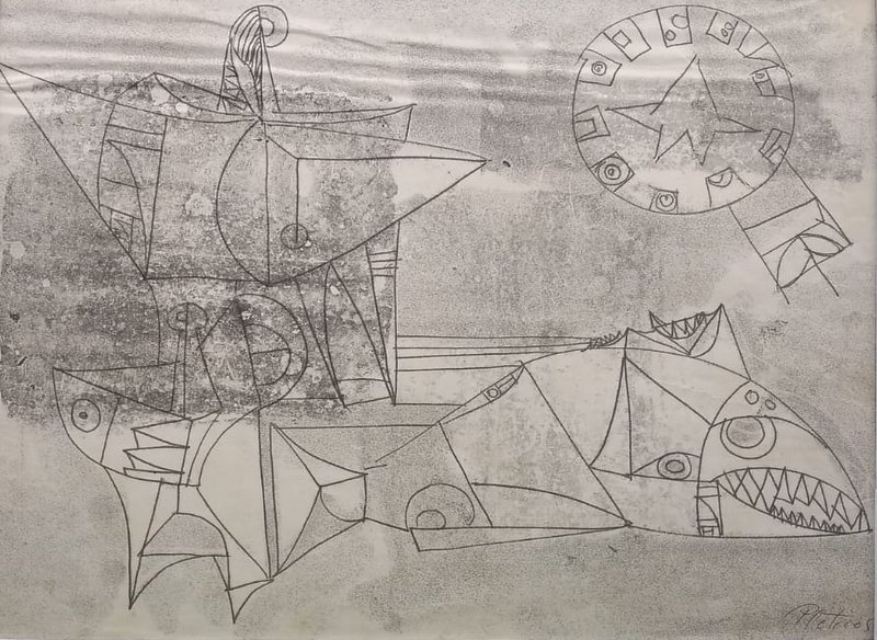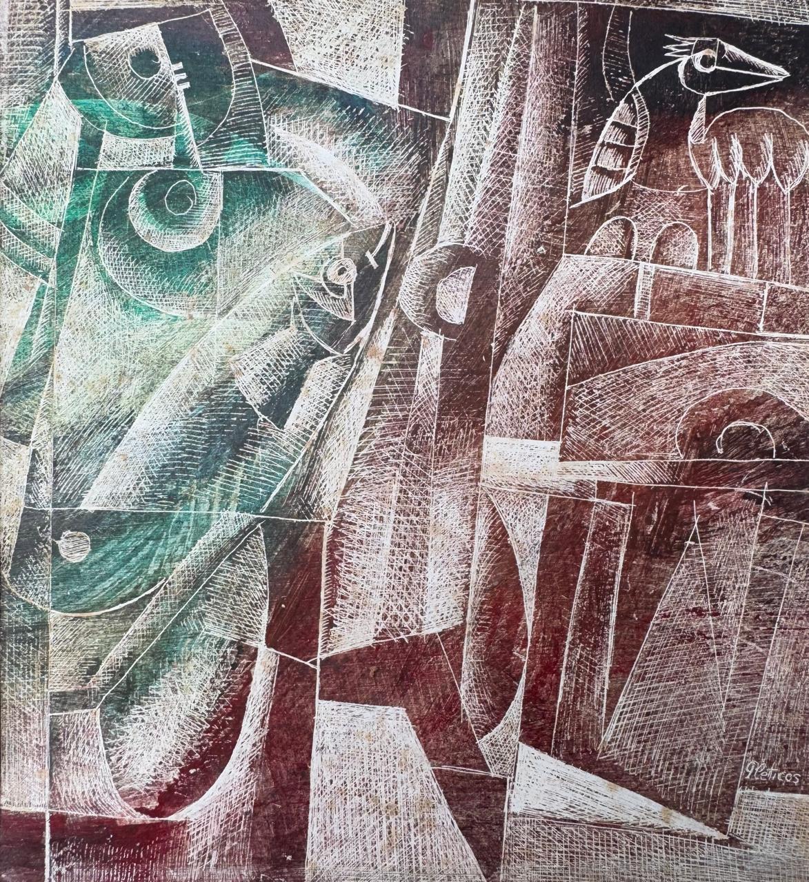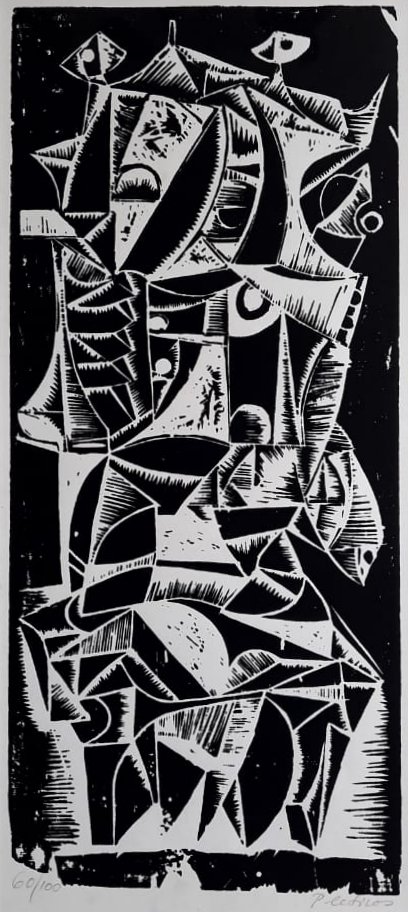 Silvio Pléticos - Esgrafito sobre Eucatex - Medidas 116 x 86 cm - Assinado