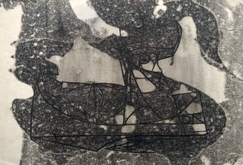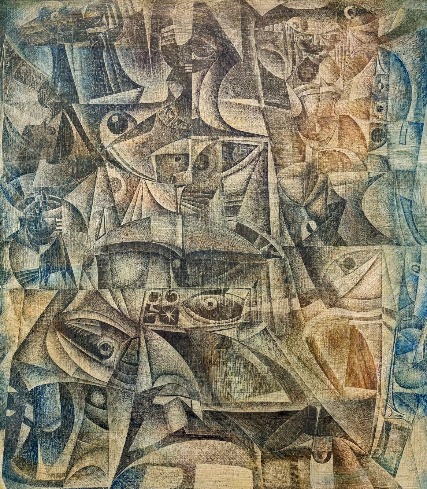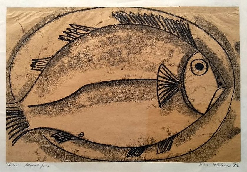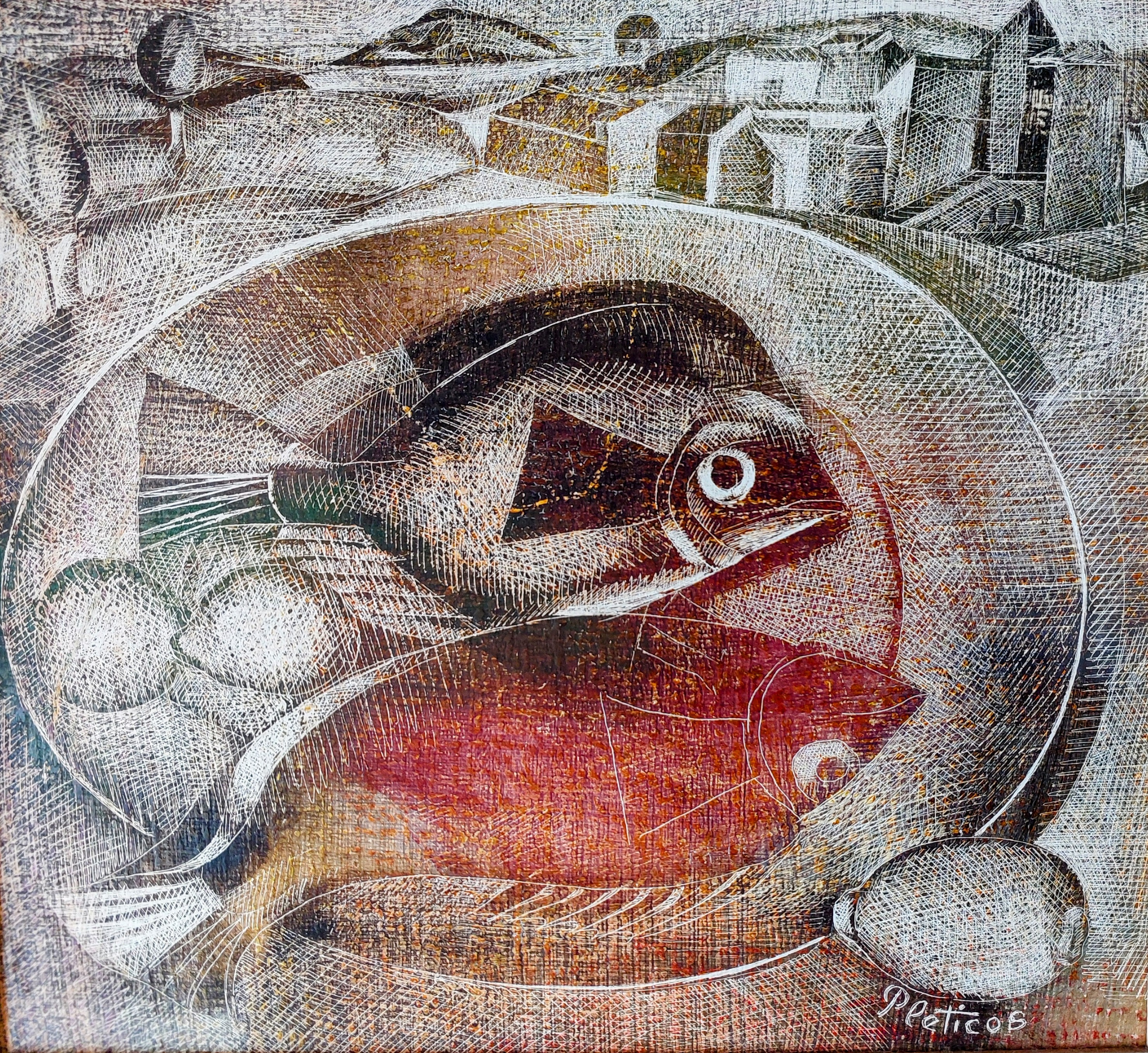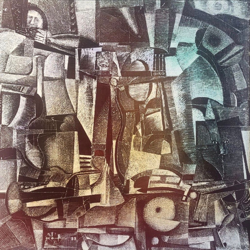 Silvio Pléticos - Esgrafito sobre Eucatex - Medidas 116 x 86 cm - Assinado