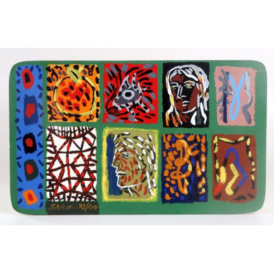 Siron Franco - Madona - Óleo sobre chapa - 35 x 33 - 1975 - Ass. Canto inferior direito e verso - Em 1975 Siron Franco foi um dos destaques da 13ª Bienal Internacional de São Paulo com o Prêmio especial “Bienal Internacional”. Esta obra pertenceu por muitos anos ao saudoso escritor e crítico de arte Walmir Ayala.
