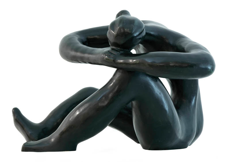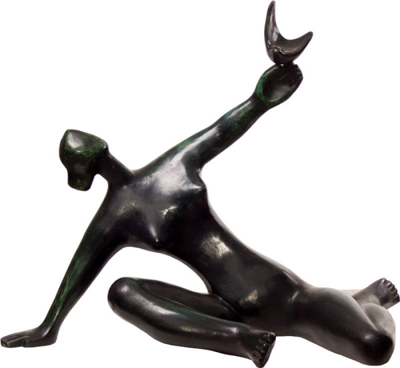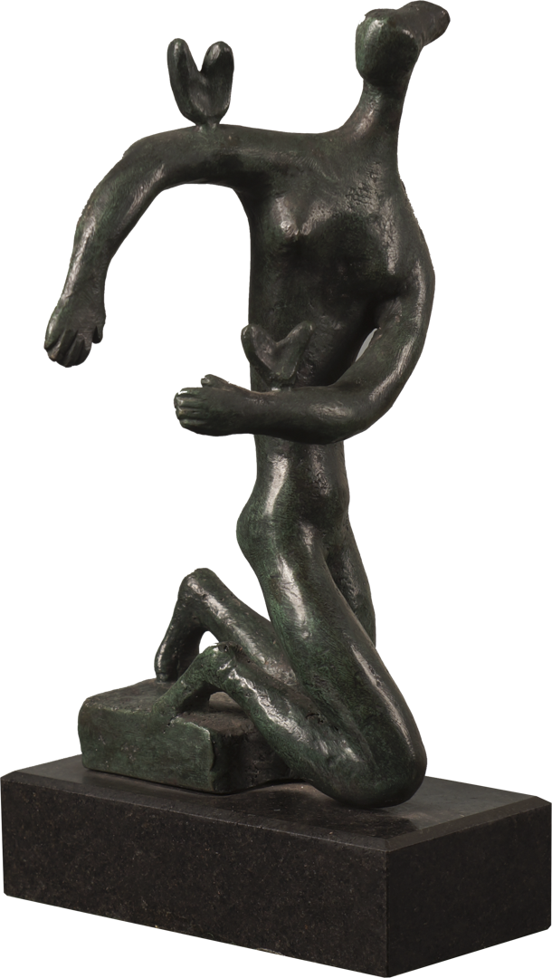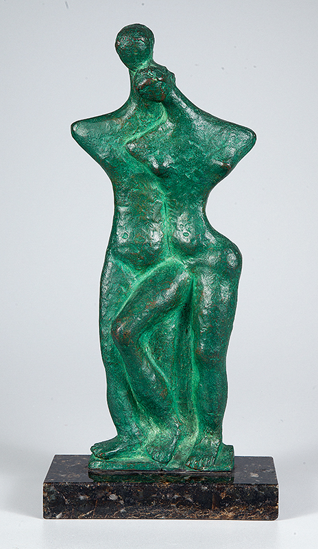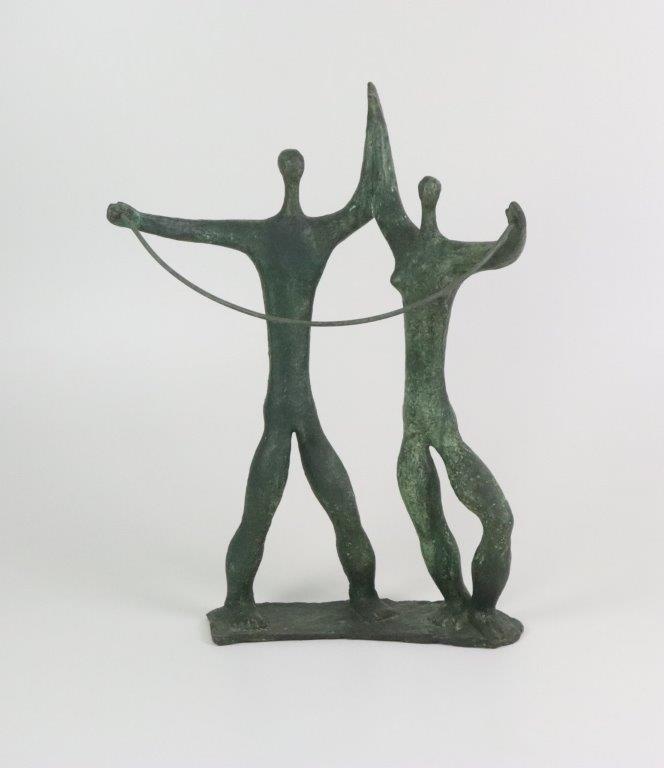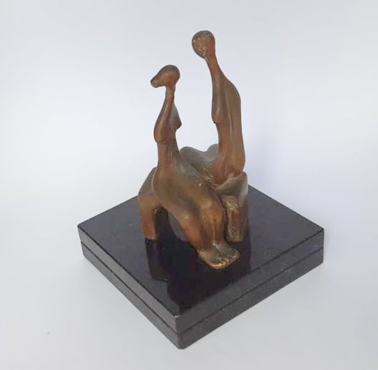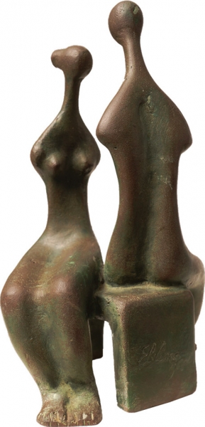 Sônia Ebling, escultura em bronze patinado representando figura de casal, 93/100. 34 cm alt.