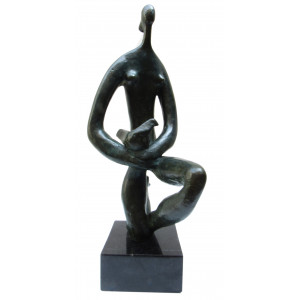 Sonia Ebling escultura de bronze 37 x 26 cm "Figura feminina com pássaro" ass. perna direita