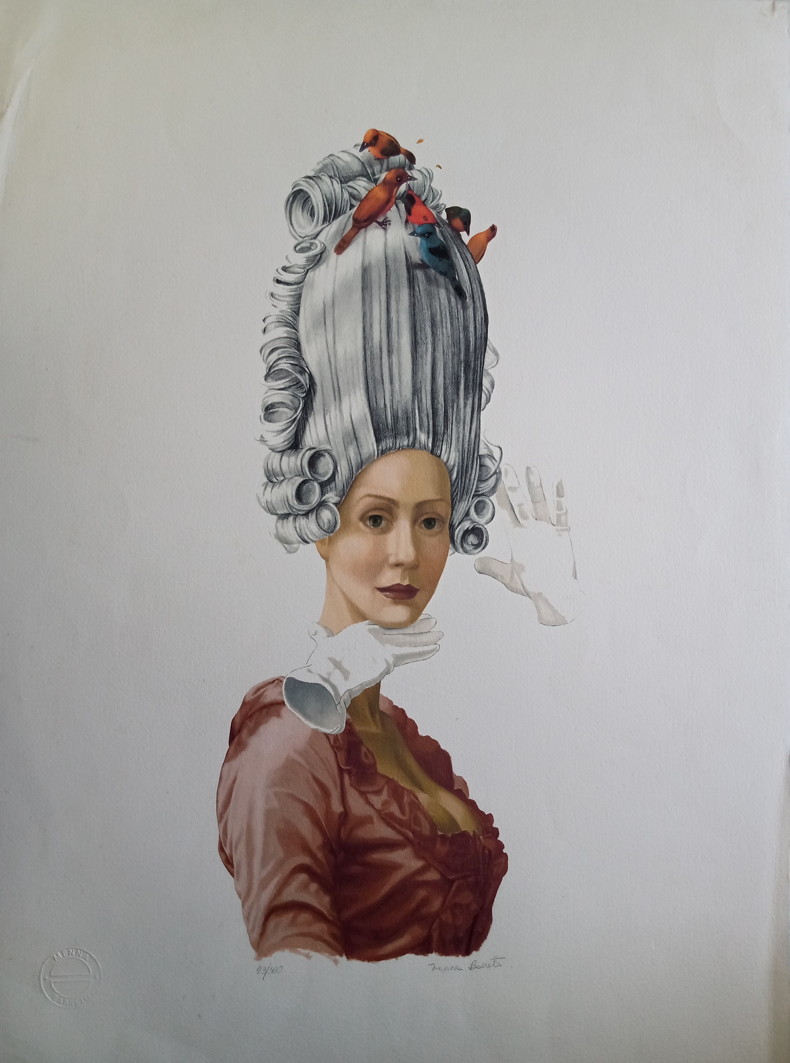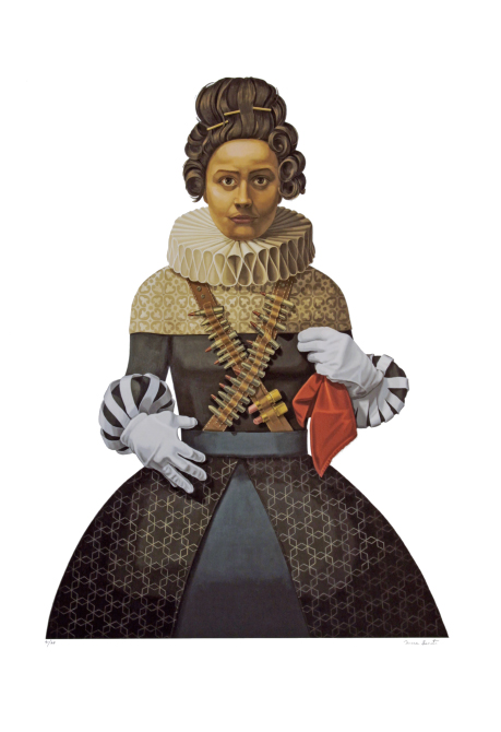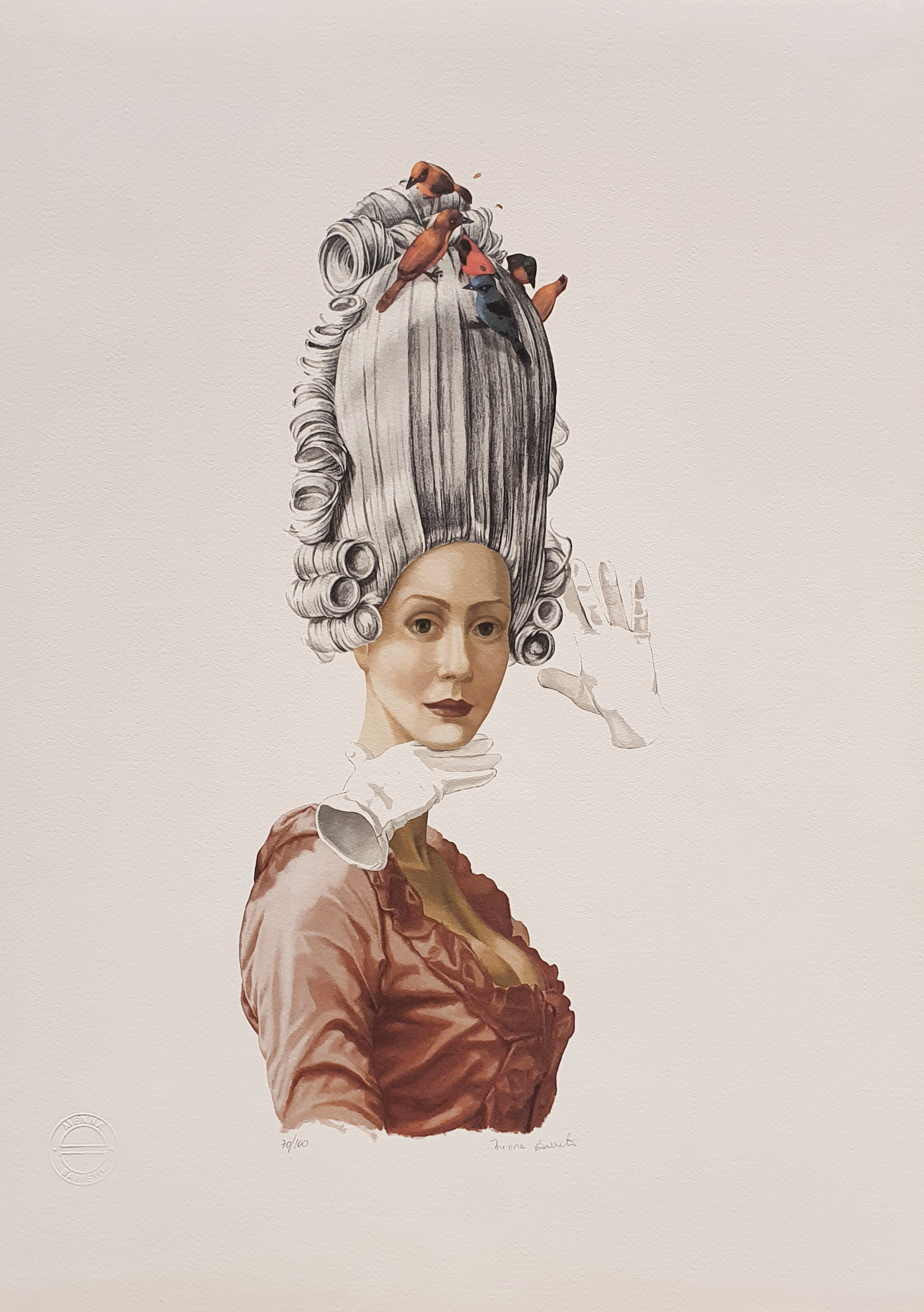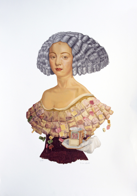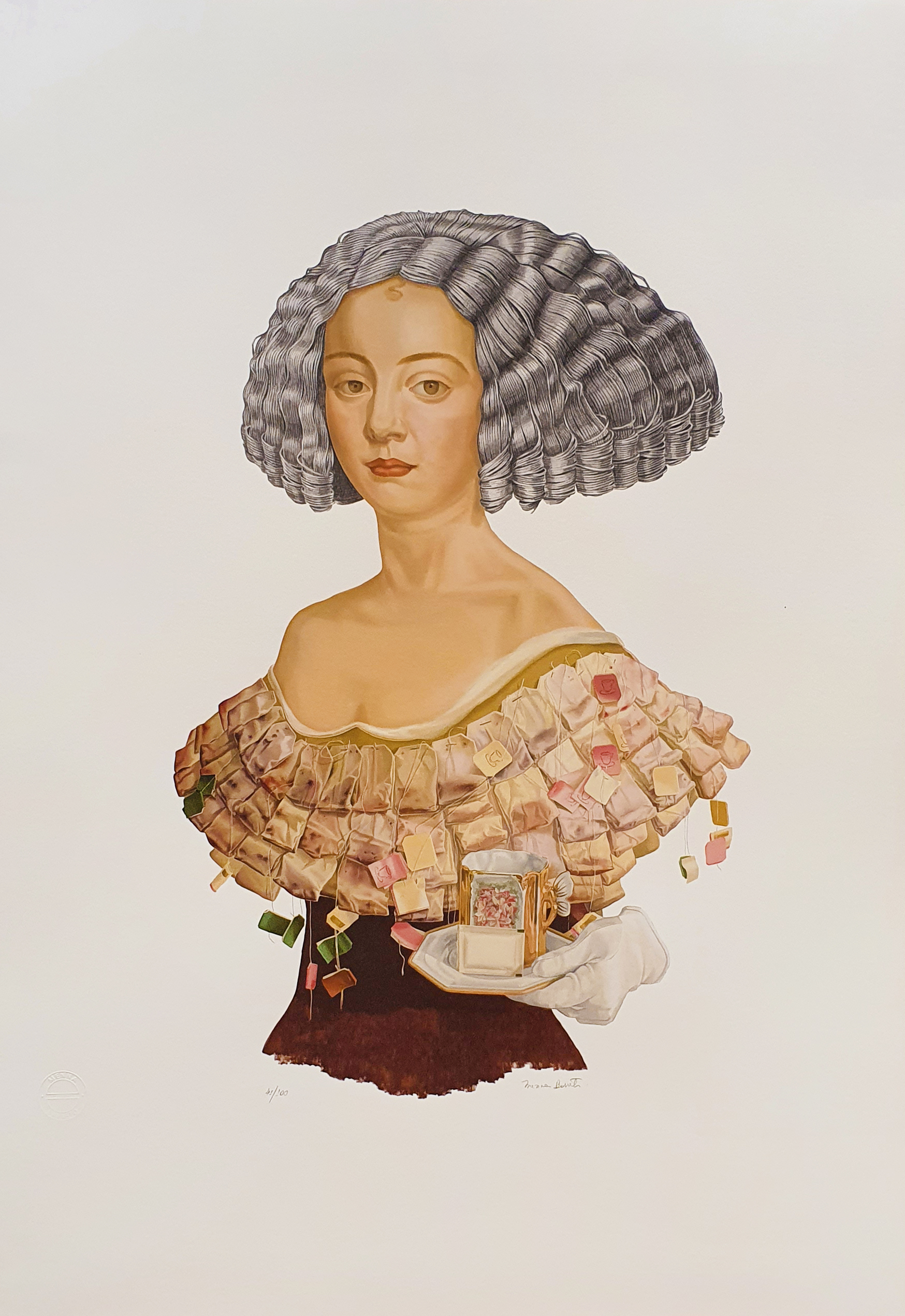 Alguns dos principais materiais utilizados pela artista são óleo sobre linho, serigrafias e giclées, entre outros.