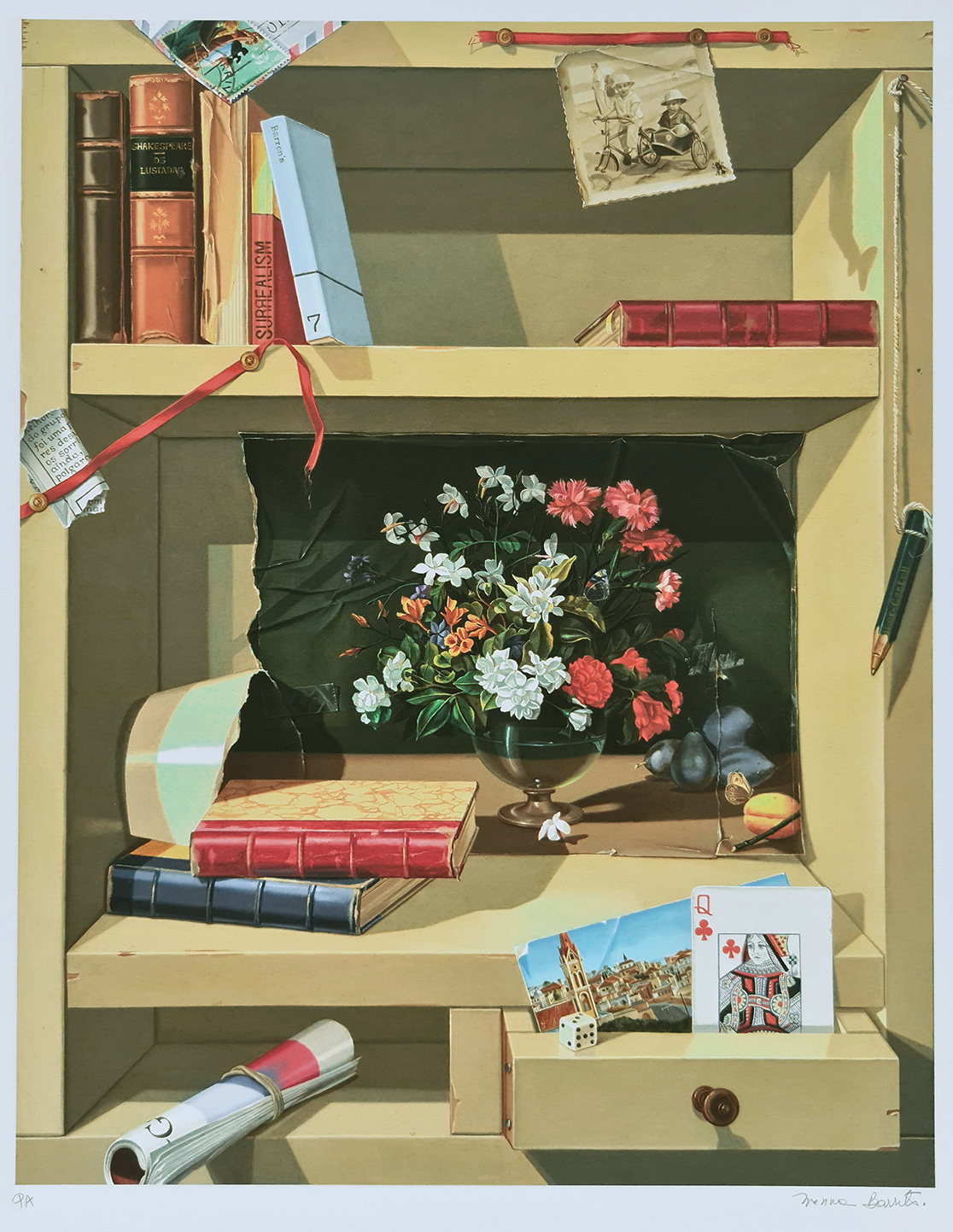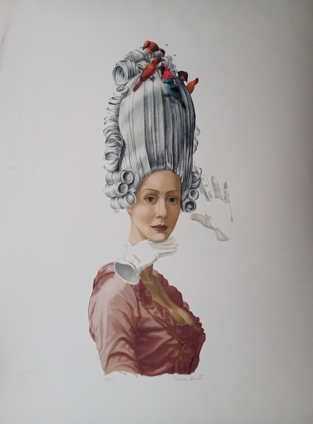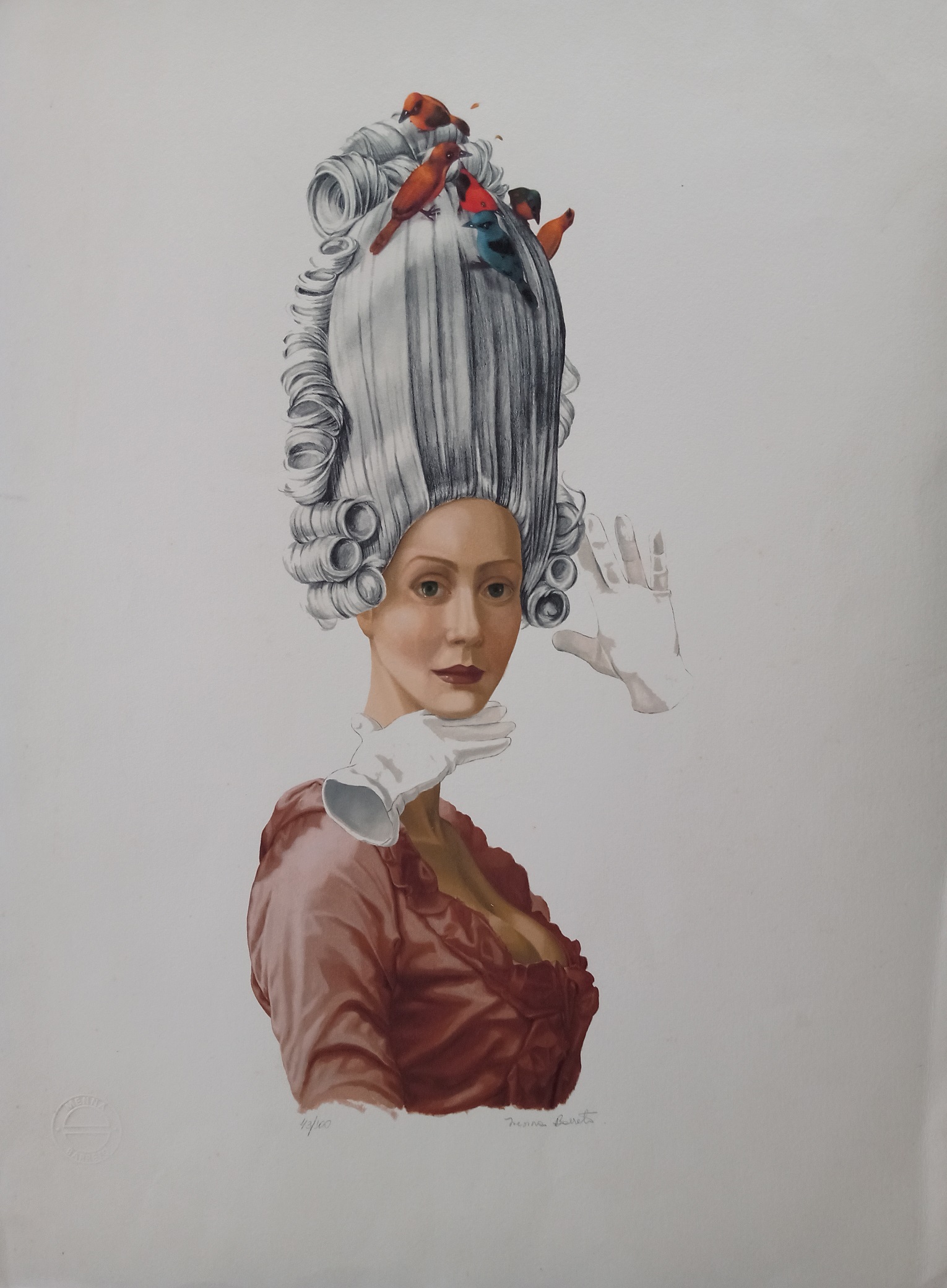 Alguns dos principais materiais utilizados pela artista são óleo sobre linho, serigrafias e giclées, entre outros.