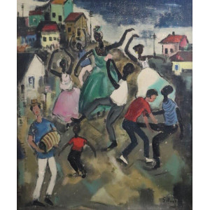 SYLVIO PINTO DA SILVA - (Festa) Séc. XX - OST - Ass. no CID - S. Pinto - (Perda de matéria) 63 x 53 cm.