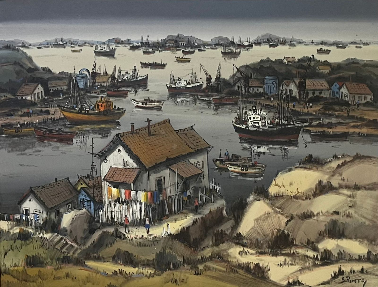 Sylvio Pinto - Ponta da Areia - 66 x 92 cm - Óleo sobre tela - Assinatura canto inferior direito e Data 1969