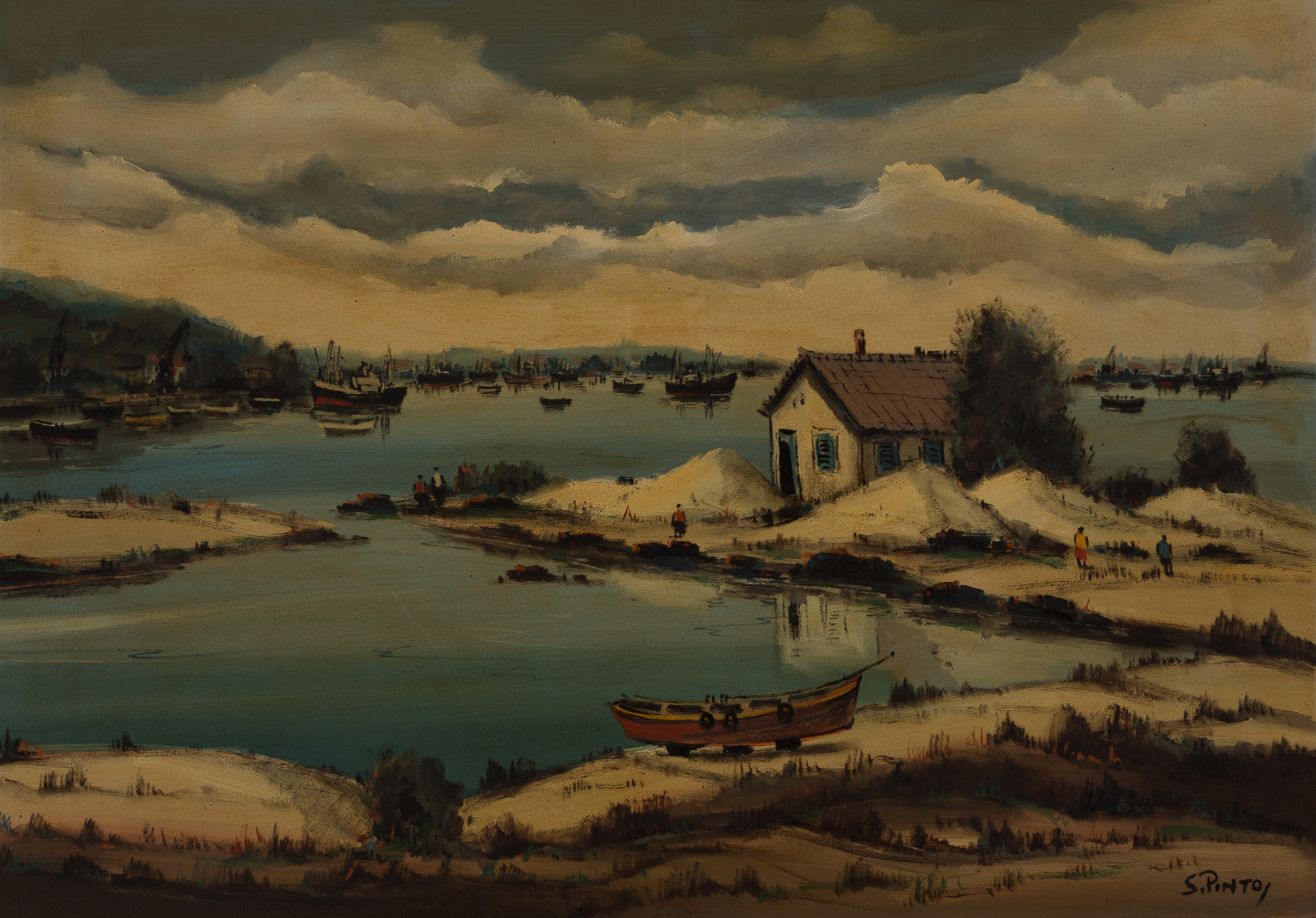 Sylvio Pinto - Ponta da Areia - 89 x 116 cm - Óleo sobre tela - Assinatura canto inferior direito e Data 1979 - Reproduzido no livro do artista "Vida e obra em depoimentos" por Quirino Campofiorito