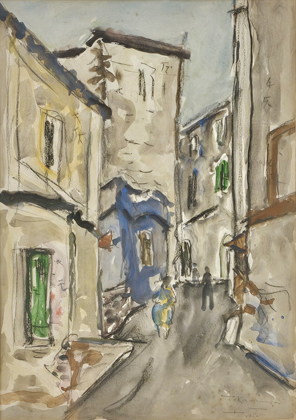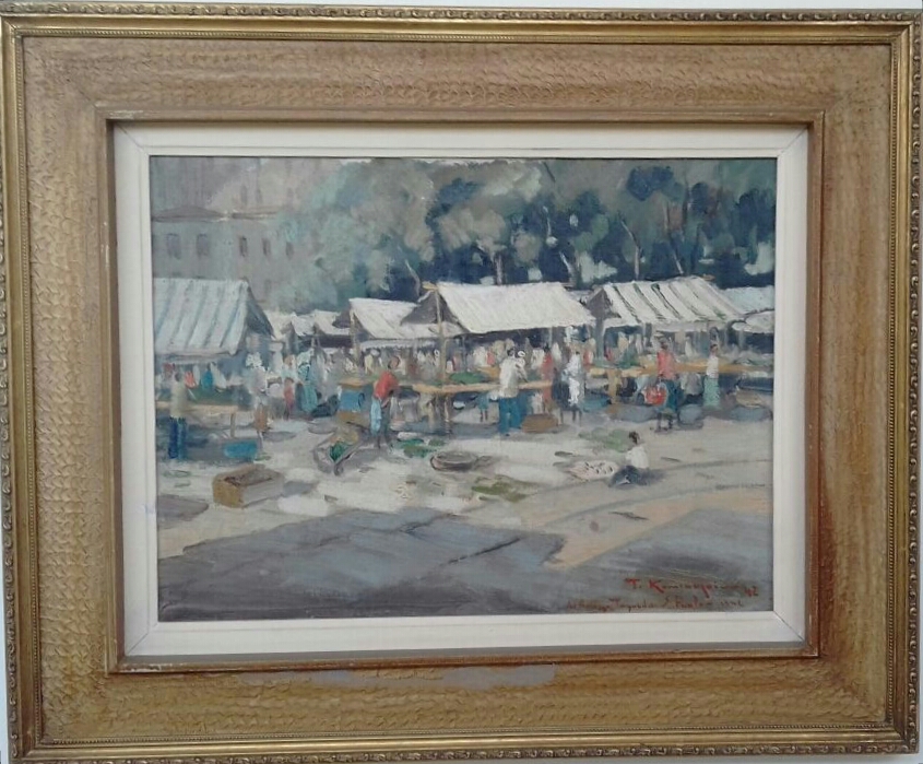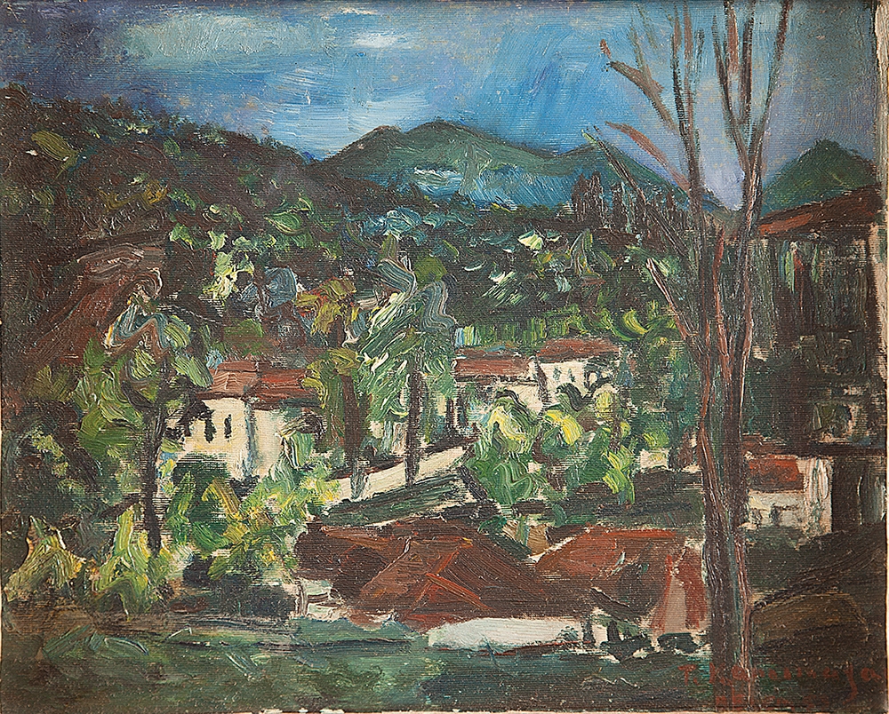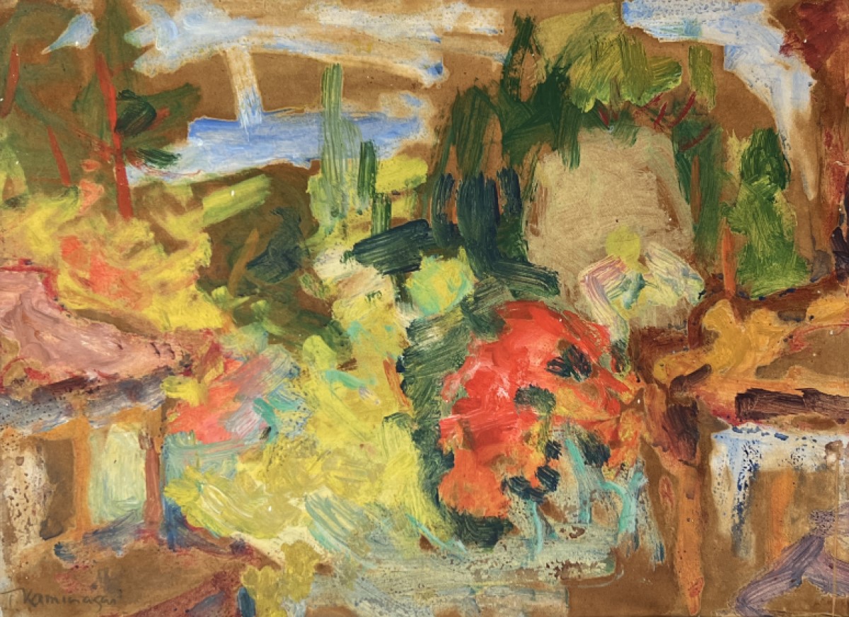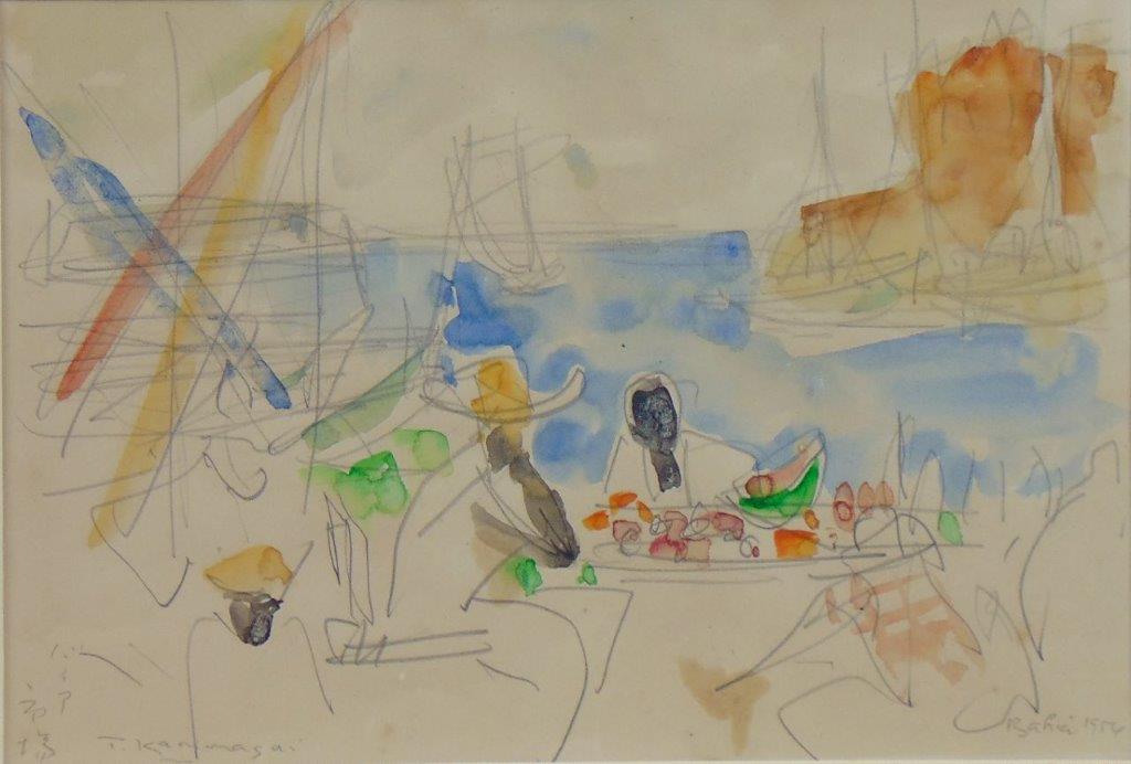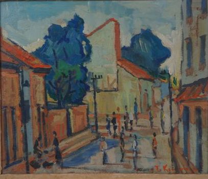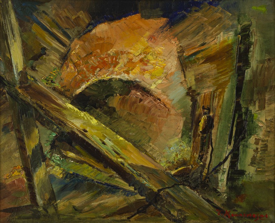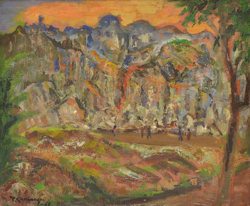 TADASHI KAMINAGAI, Paisagem com Figuras, OST, ACIE, 53 x 64cm (m.i). Datado 1966