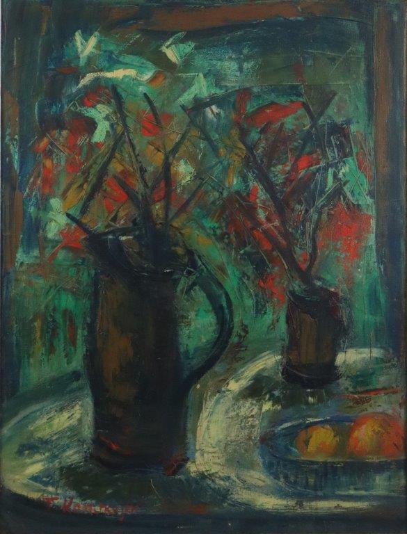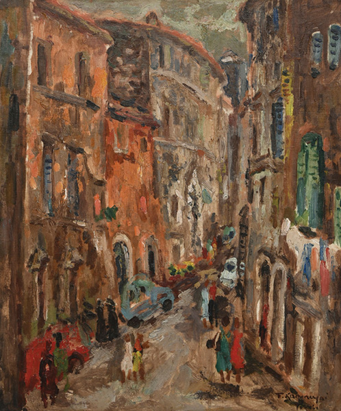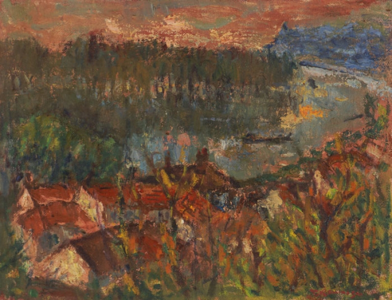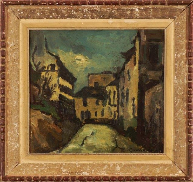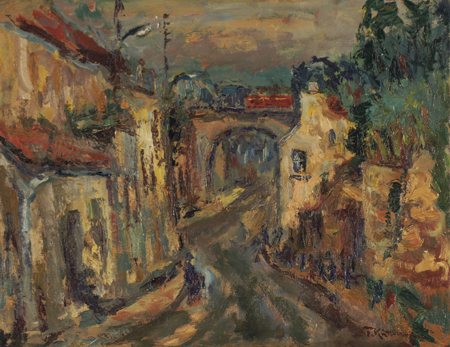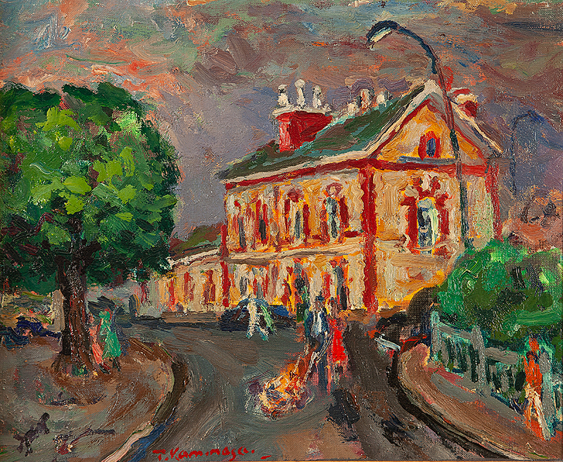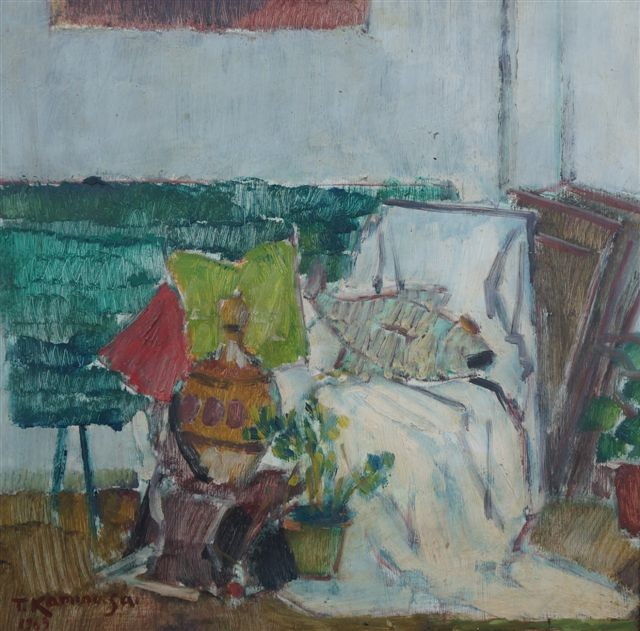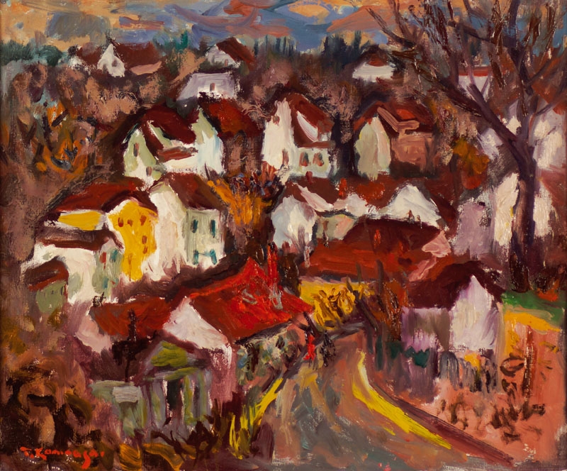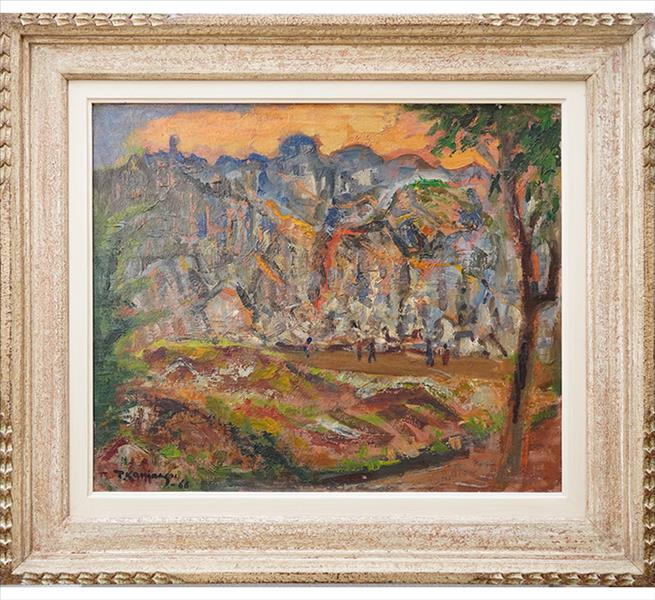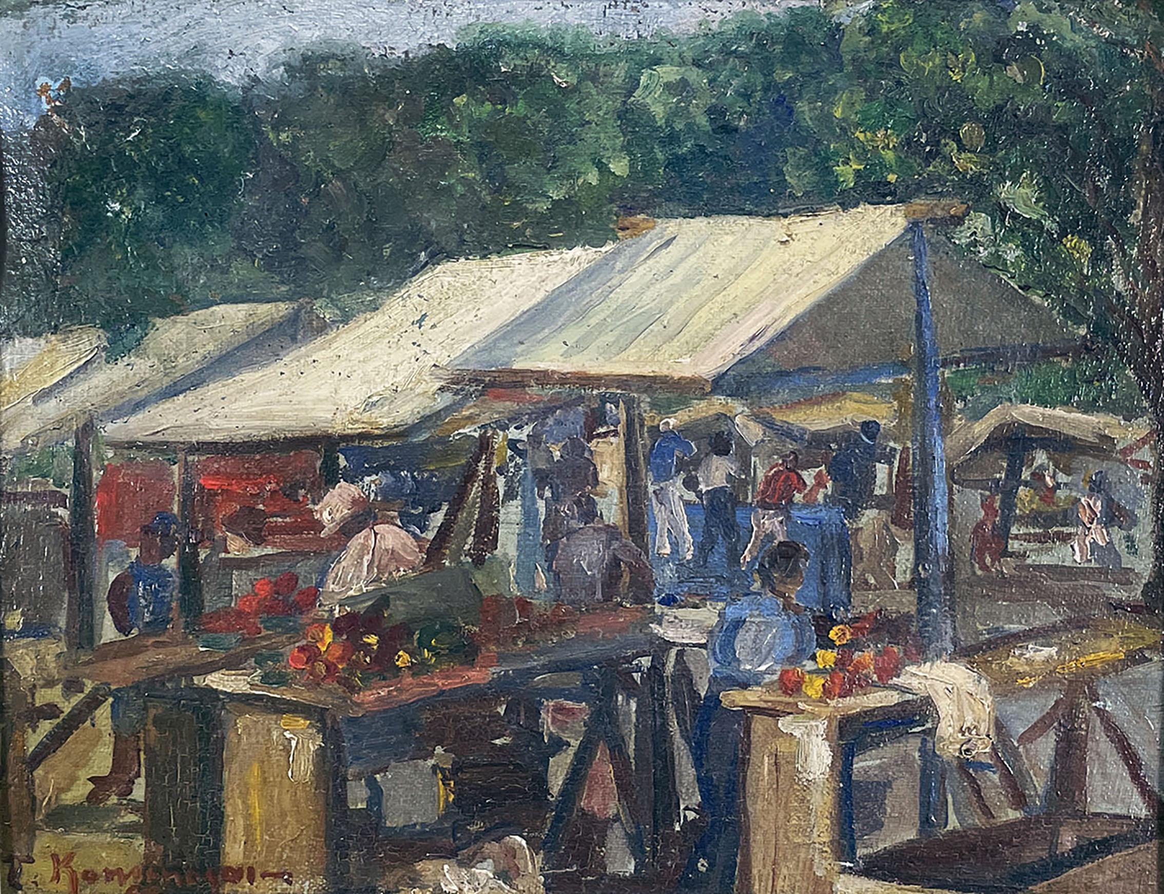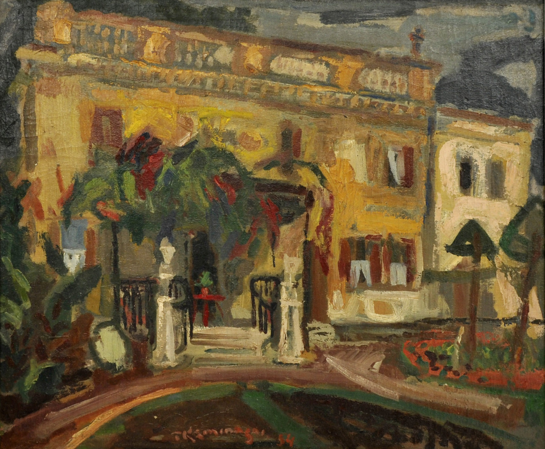 TADASHI KAMINAGAI, Paisagem com Figuras, OST, ACIE, 53 x 64cm (m.i). Datado 1966