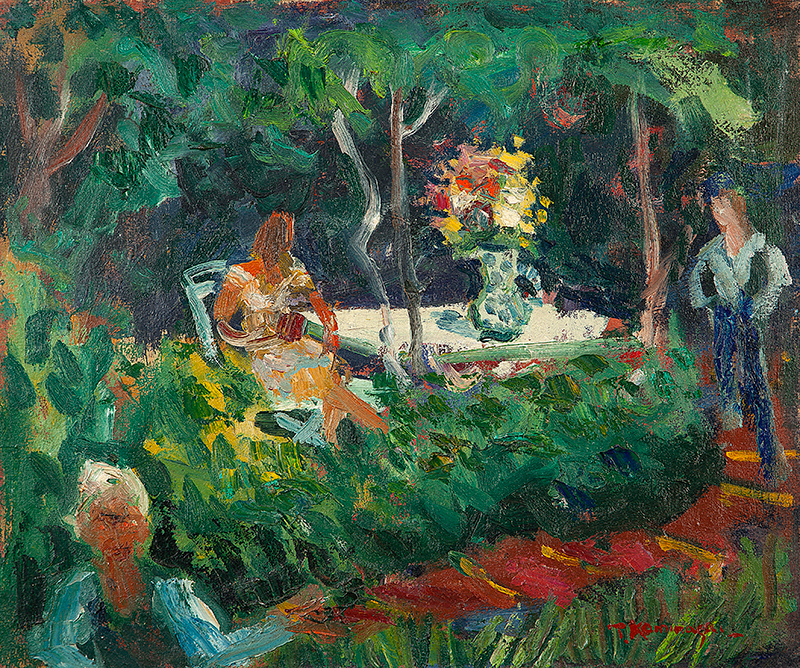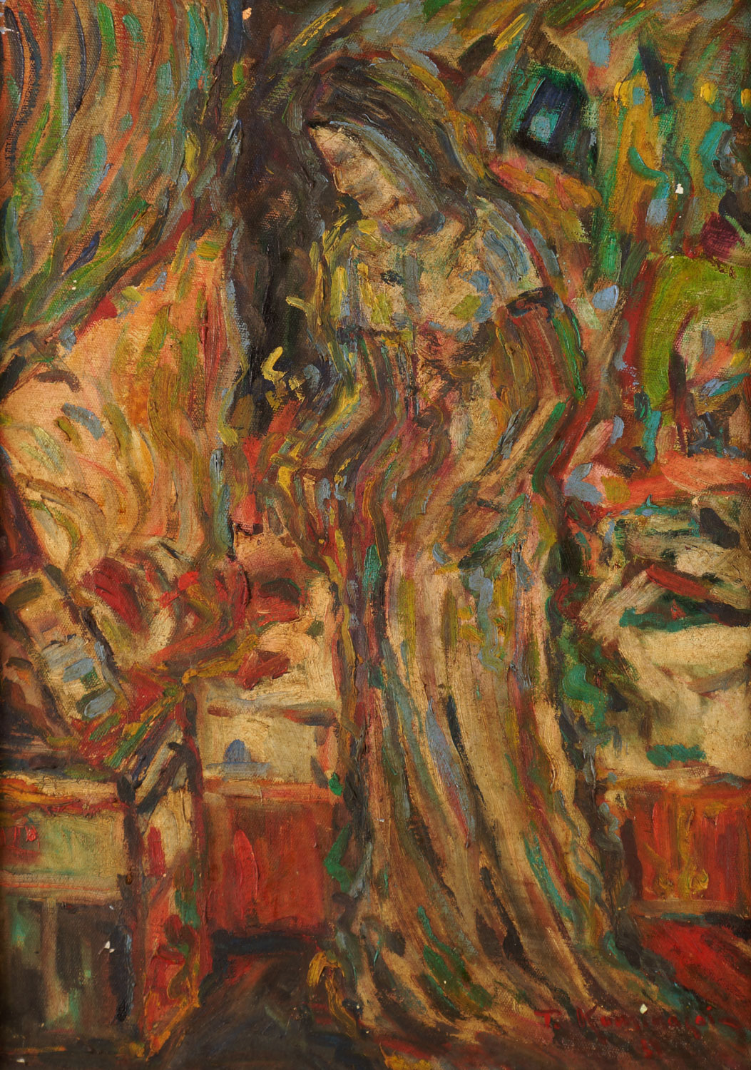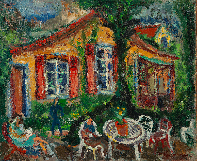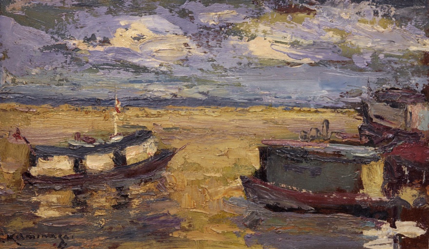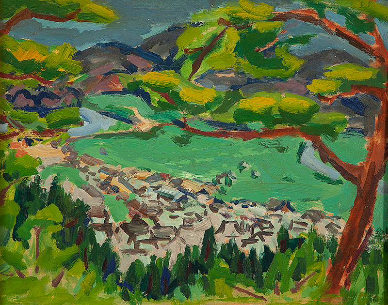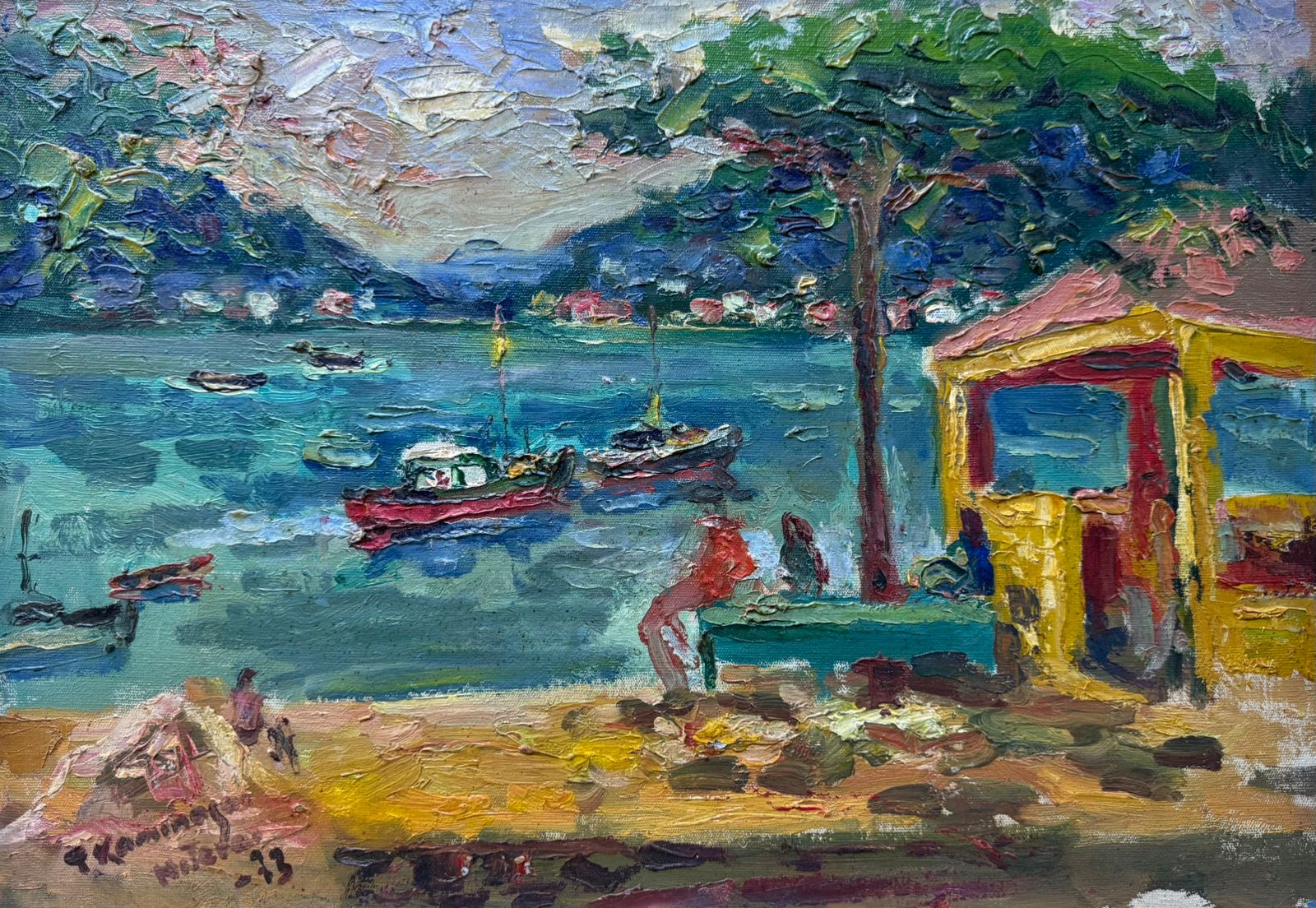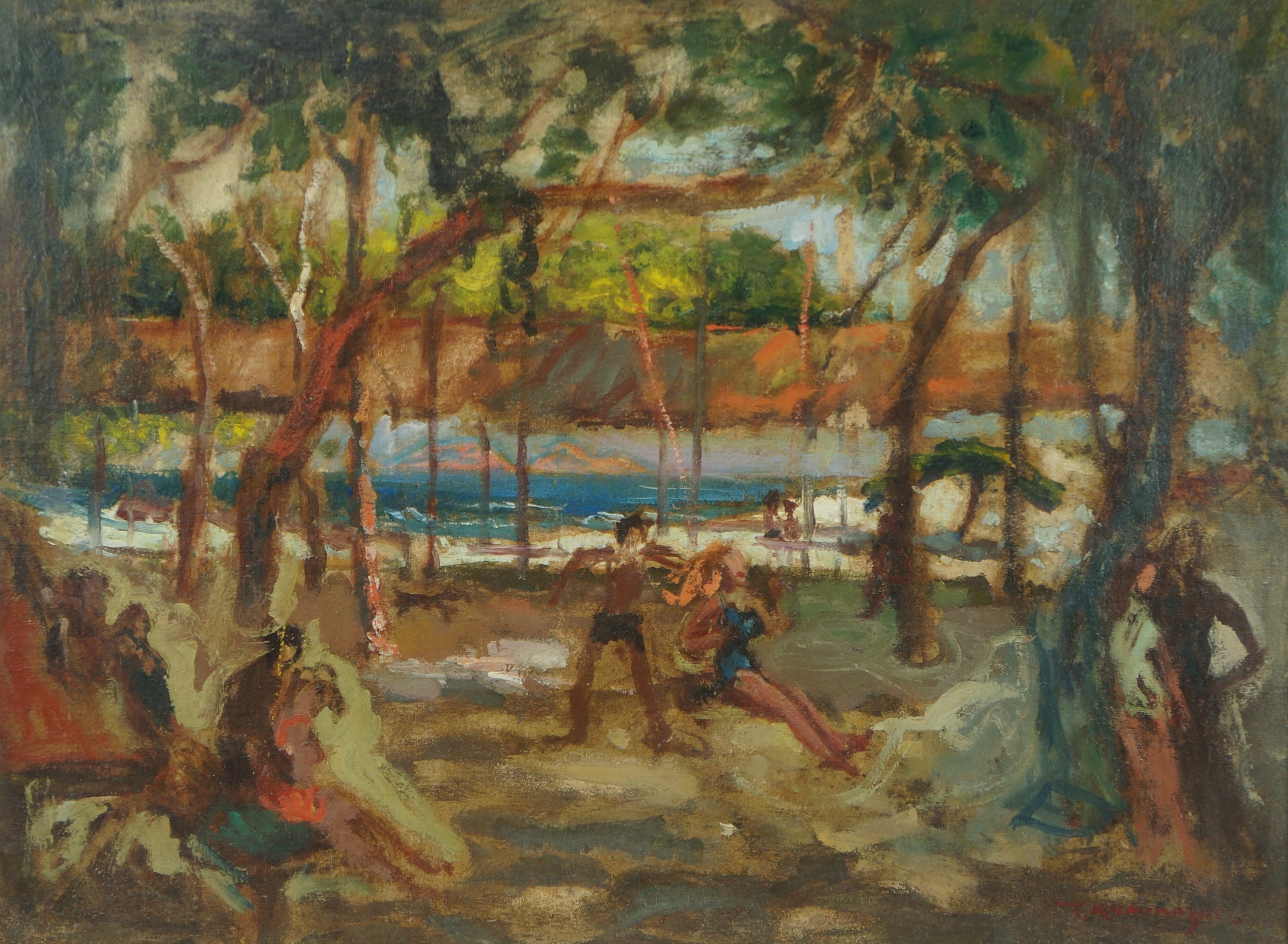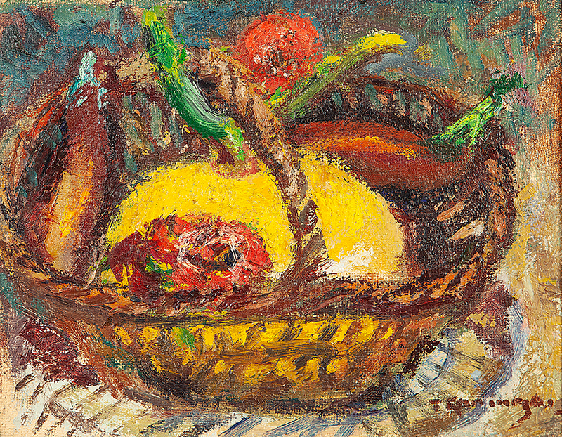 TADASHI KAMINAGAI, Paisagem com Figuras, OST, ACIE, 53 x 64cm (m.i). Datado 1966