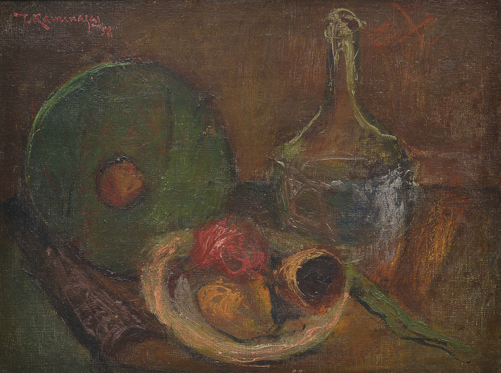 Tadashi Kaminagai (Hiroshima, Japão 1899 - Paris, França 1982). Pintor, desenhista, professor. Por iniciativa da família, ingressa aos 14 anos num mosteiro budista na cidade japonesa de Kobe. Dois anos depois, viaja para as Índias Ocidentais Holandesas, atual Indonésia, atuando como missionário e agricultor até 1927. Nesse ano, decidido a seguir carreira artística, muda-se para Paris, onde conhece o artista Tsugouharu Foujita (1886 - 1968), que o orienta na pintura. Paralelamente à atividade artística, trabalha como moldureiro. No início da década de 1930, expõe quadros nos salões parisienses e retorna ao Japão em 1938. Embarca para o Brasil um ano após a eclosão da Segunda Guerra Mundial, 1939-1945, trazendo consigo uma carta de recomendação endereçada a Candido Portinari (1903 - 1962). Fixa residência no Rio de Janeiro e em 1941 instala ateliê e oficina de molduras no bairro de Santa Teresa, onde trabalha e atua como professor de diversos artistas brasileiros e nipo-brasileiros, como Inimá de Paula (1918 - 1999), Flavio-Shiró (1928) e Tikashi Fukushima (1920 - 2001), entre outros. Sua primeira exposição individual, por volta de 1945, é organizada por Portinari e ocorre no Hotel Serrador, no Rio de Janeiro. Em 1947, passa a integrar o Grupo Seibi. Retorna ao Japão em 1954 e três anos mais tarde volta a fixar-se em Paris. Vive entre o Japão, a França e o Brasil, até seu falecimento, em 1982.