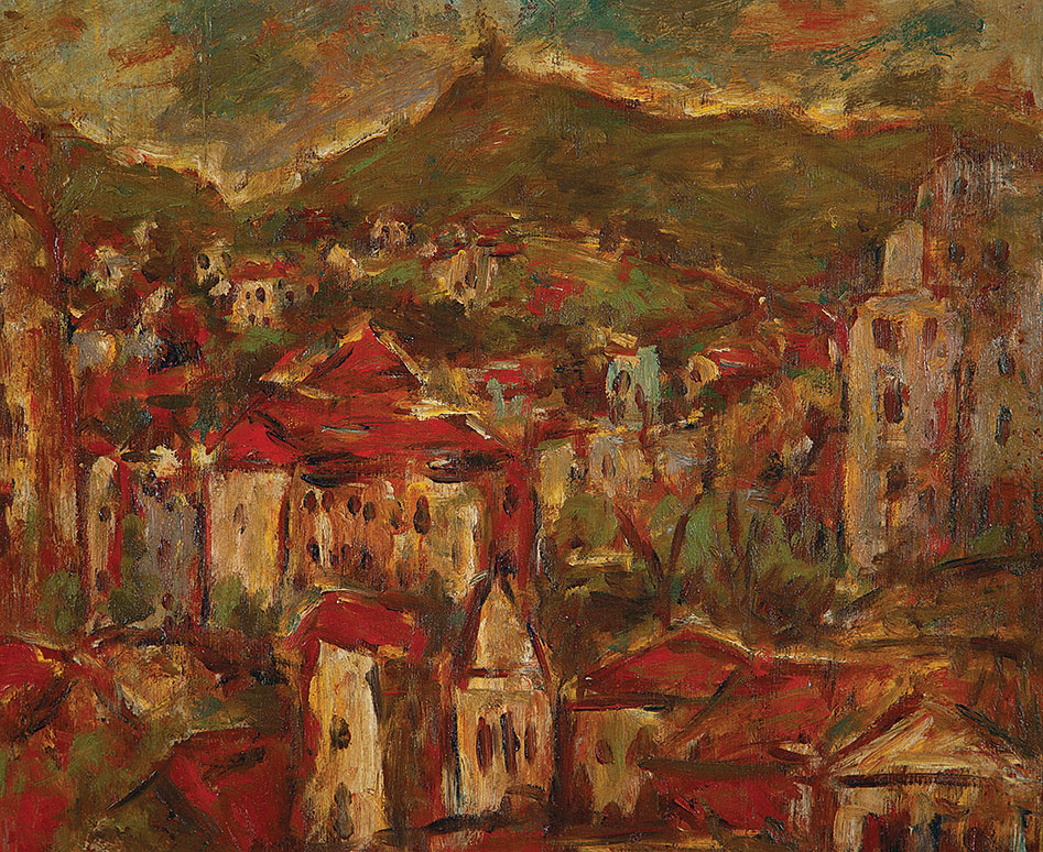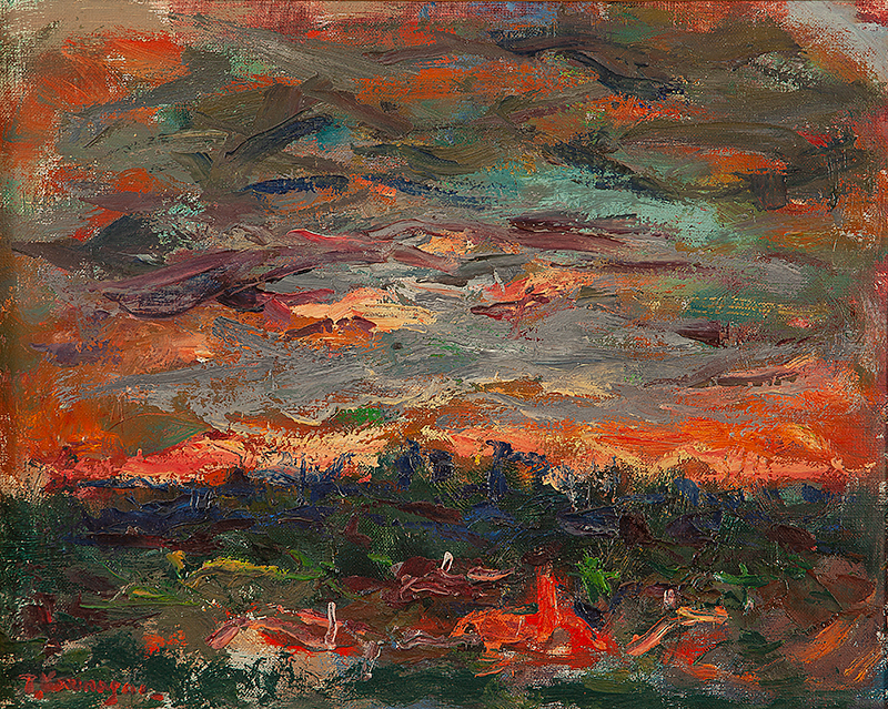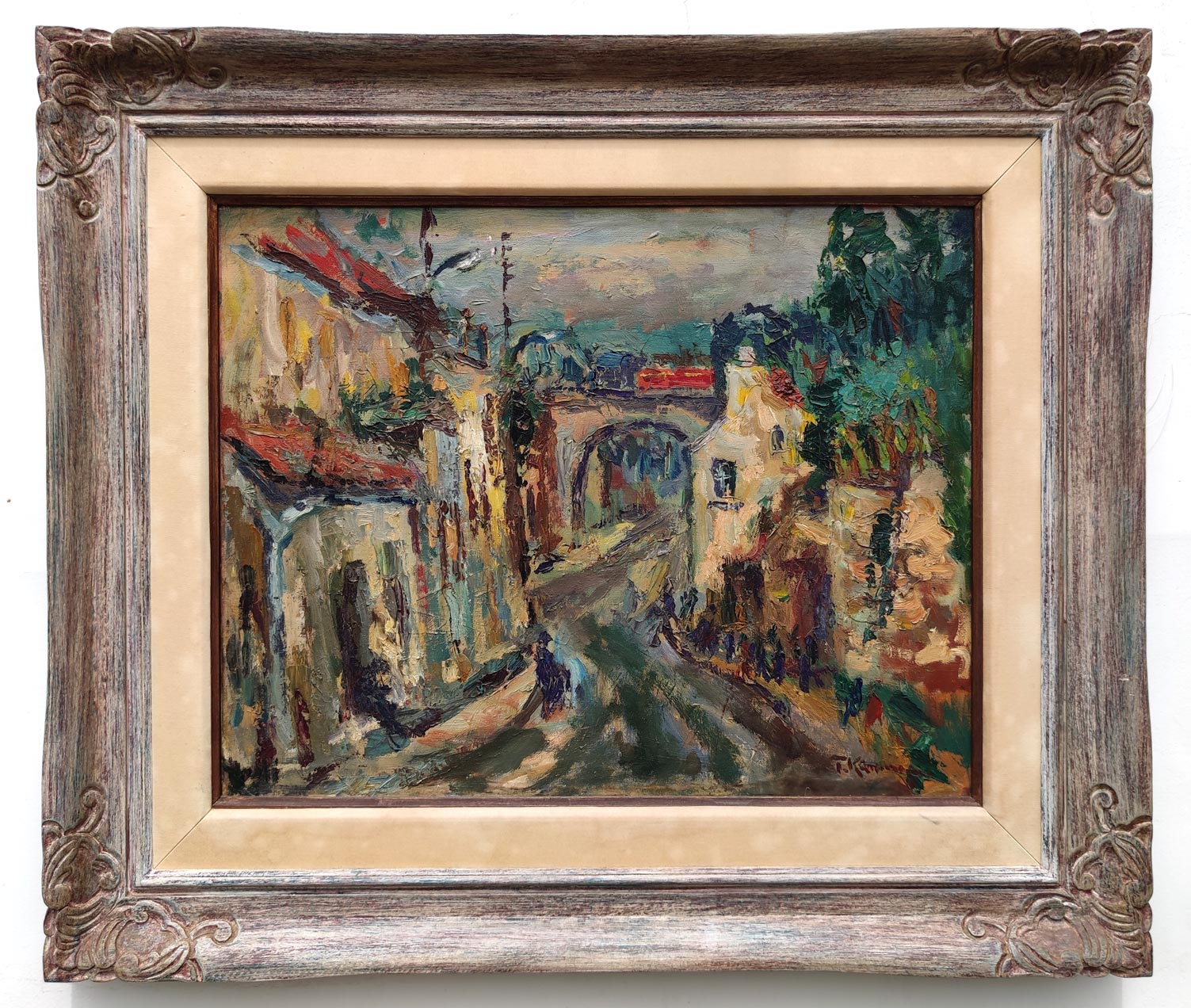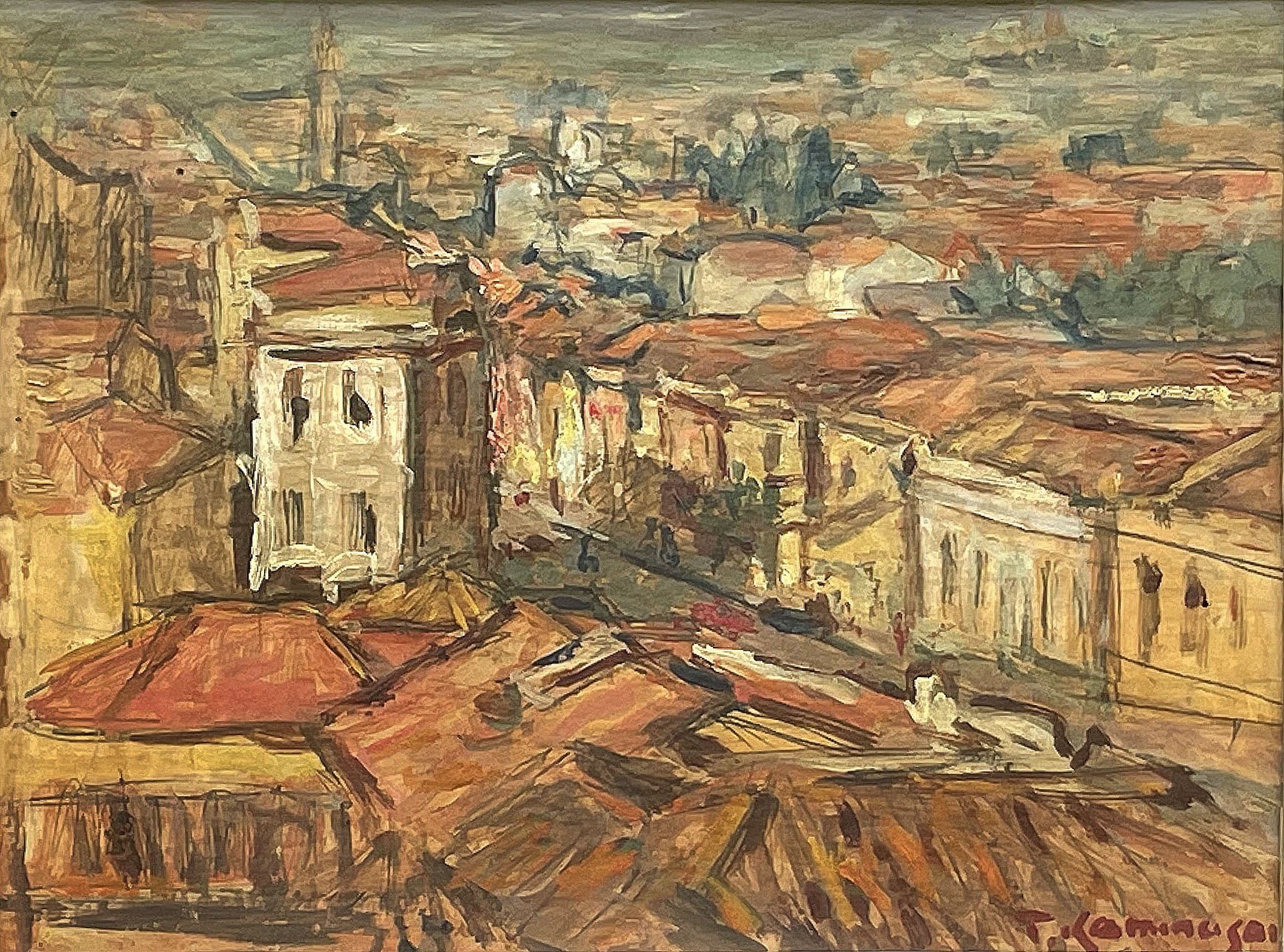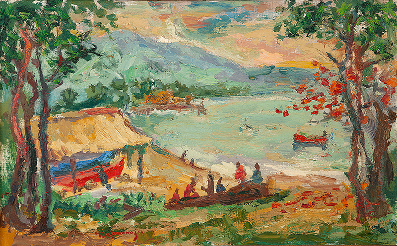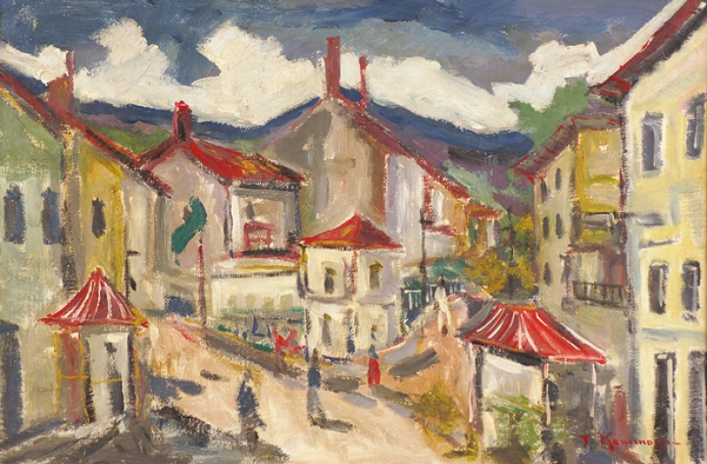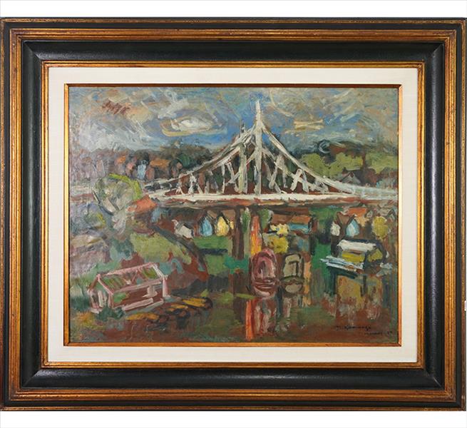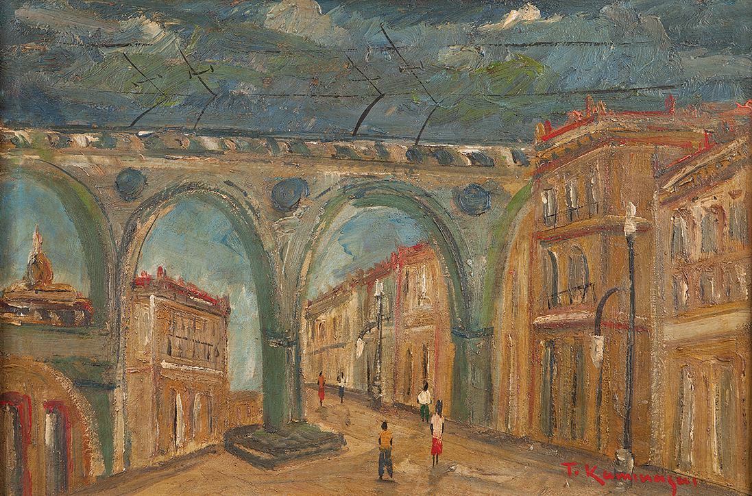 TADASHI KAMINAGAI, Paisagem com Figuras, OST, ACIE, 53 x 64cm (m.i). Datado 1966