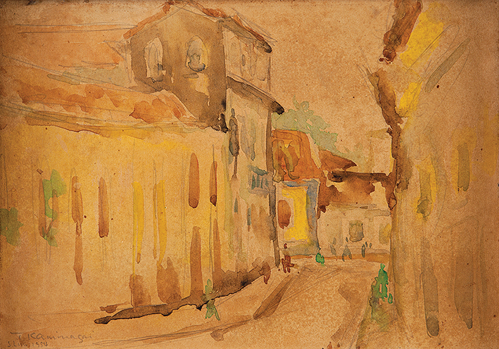 Tadashi Kaminagai (Hiroshima, Japão 1899 - Paris, França 1982). Pintor, desenhista, professor. Por iniciativa da família, ingressa aos 14 anos num mosteiro budista na cidade japonesa de Kobe. Dois anos depois, viaja para as Índias Ocidentais Holandesas, atual Indonésia, atuando como missionário e agricultor até 1927. Nesse ano, decidido a seguir carreira artística, muda-se para Paris, onde conhece o artista Tsugouharu Foujita (1886 - 1968), que o orienta na pintura. Paralelamente à atividade artística, trabalha como moldureiro. No início da década de 1930, expõe quadros nos salões parisienses e retorna ao Japão em 1938. Embarca para o Brasil um ano após a eclosão da Segunda Guerra Mundial, 1939-1945, trazendo consigo uma carta de recomendação endereçada a Candido Portinari (1903 - 1962). Fixa residência no Rio de Janeiro e em 1941 instala ateliê e oficina de molduras no bairro de Santa Teresa, onde trabalha e atua como professor de diversos artistas brasileiros e nipo-brasileiros, como Inimá de Paula (1918 - 1999), Flavio-Shiró (1928) e Tikashi Fukushima (1920 - 2001), entre outros. Sua primeira exposição individual, por volta de 1945, é organizada por Portinari e ocorre no Hotel Serrador, no Rio de Janeiro. Em 1947, passa a integrar o Grupo Seibi. Retorna ao Japão em 1954 e três anos mais tarde volta a fixar-se em Paris. Vive entre o Japão, a França e o Brasil, até seu falecimento, em 1982.
