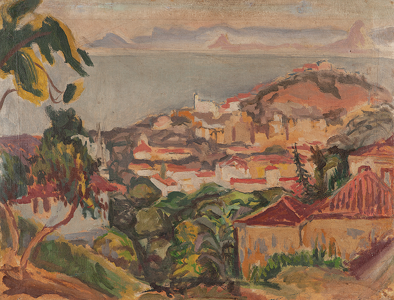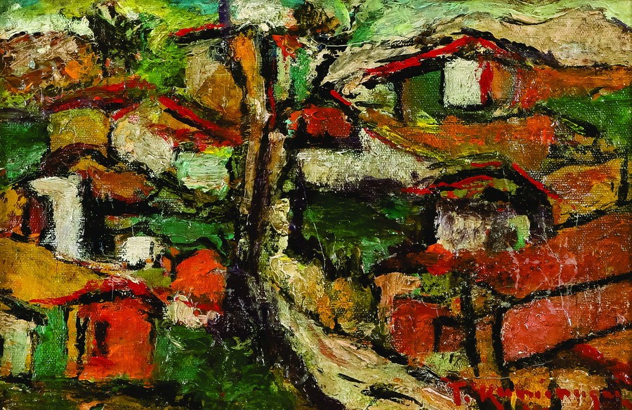 TADASHI KAMINAGAI, Paisagem com Figuras, OST, ACIE, 53 x 64cm (m.i). Datado 1966